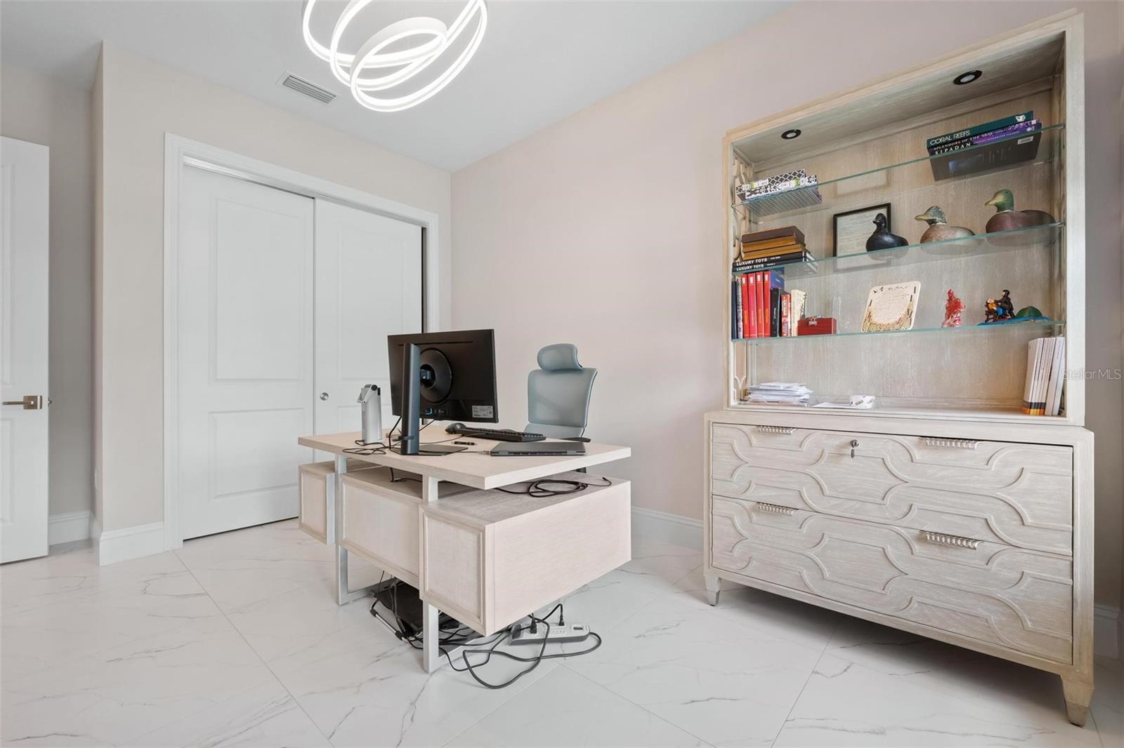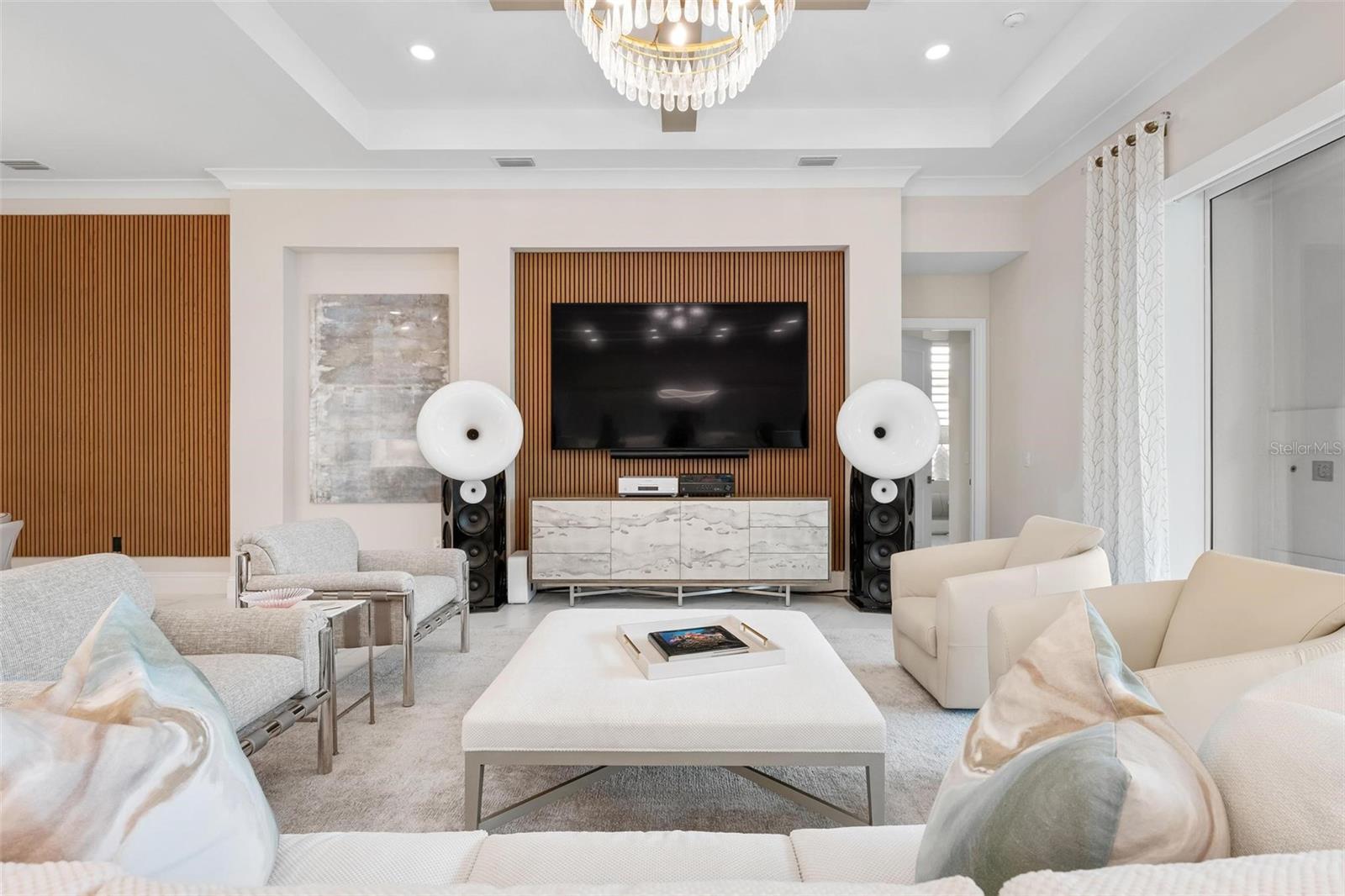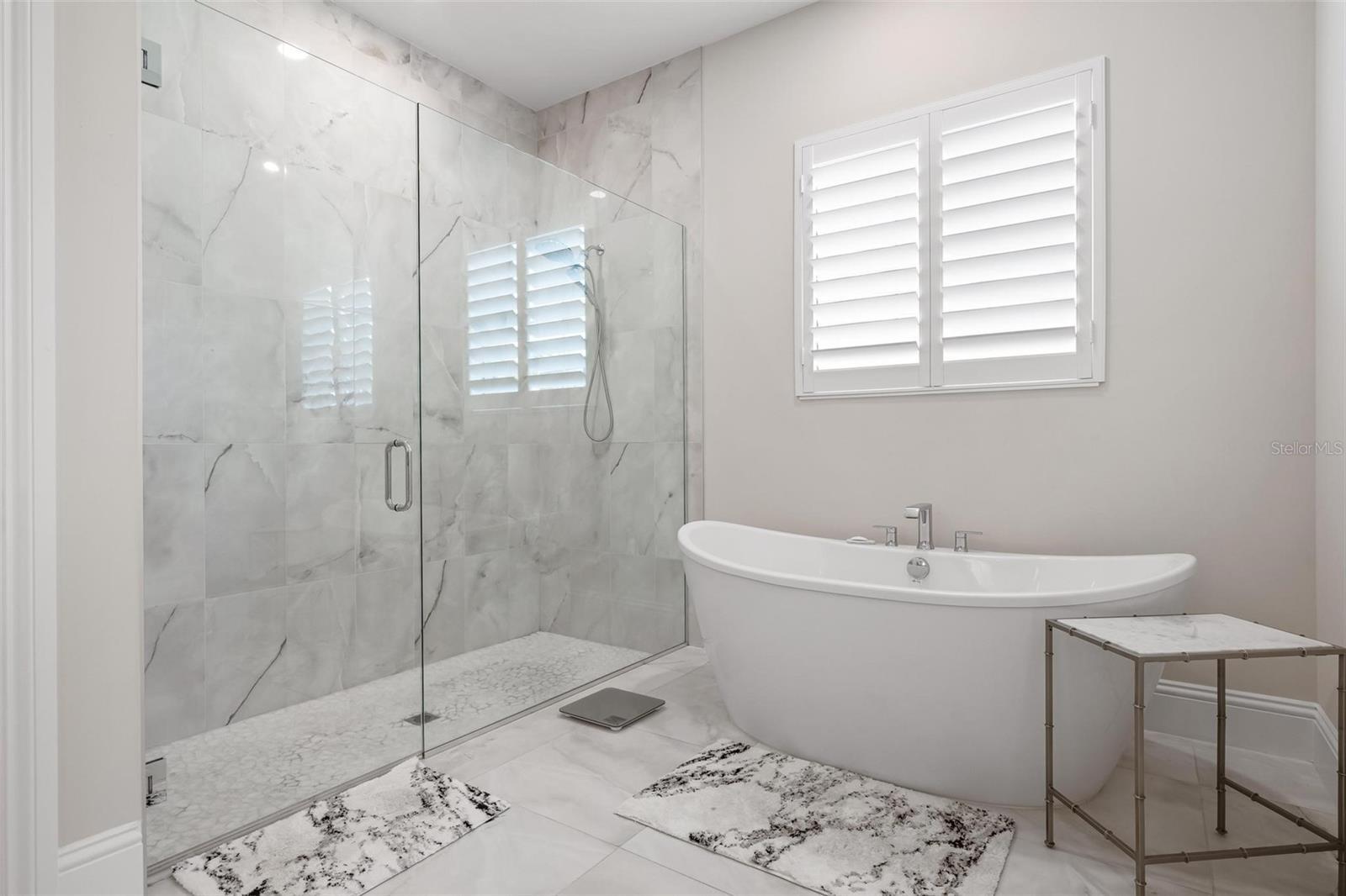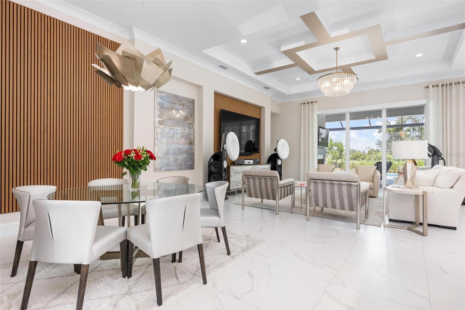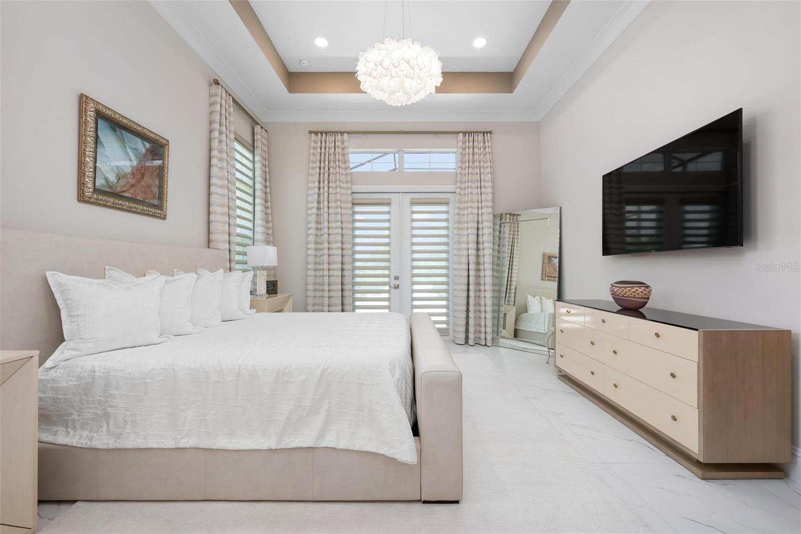 - Ceiling Fans(s), Coffered Ceiling(s), Crown Molding, Dry Bar, Eat-in Kitchen, High Ceilings, In Wall Pest System, Kitchen/Family Room Combo, Open Floorplan, Primary Bedroom Main Floor, Solid Wood Cabinets, Split Bedroom, Stone Counters, Thermostat, Tray Ceiling(s), Walk-In Closet(s), Window Treatments