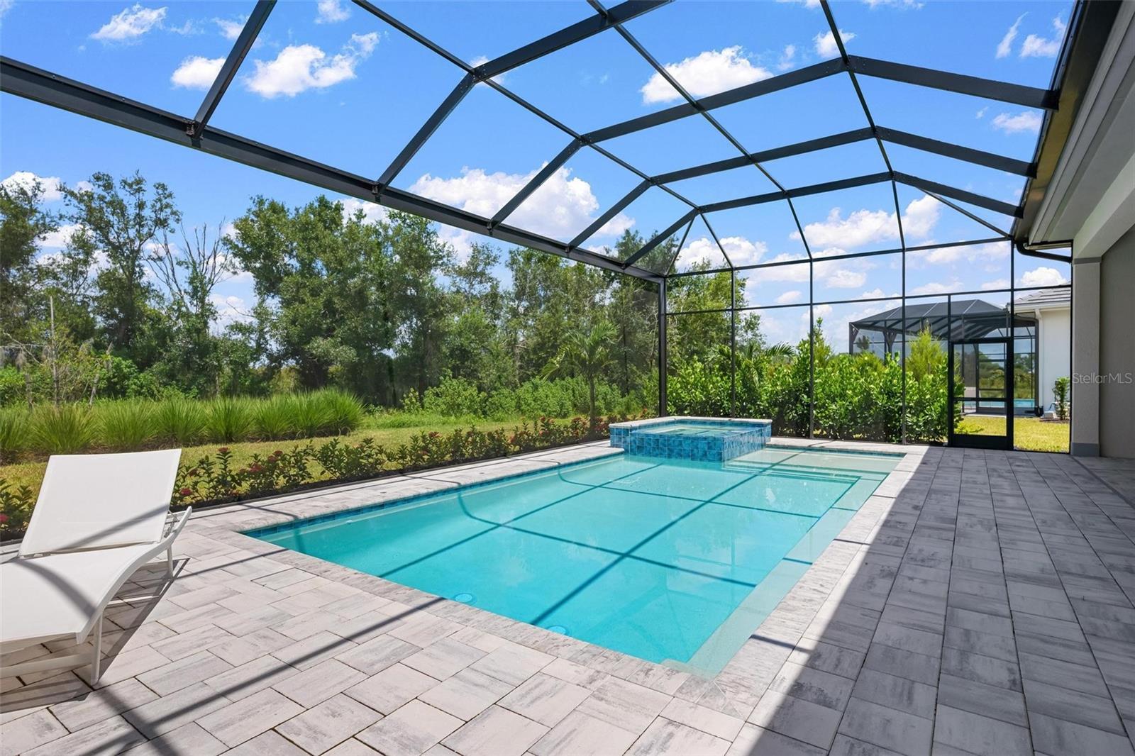 Seller wants offers! Move right into this professionally decorated Easton 3 by Stock Luxury Homes—already complete and perfectly positioned with private wooded views and a spectacular pool & spa. Why wait for new construction when this one is ready now? Blending modern style with timeless comfort, this home offers a seamless balance of privacy, elegance, and craftsmanship. Natural light fills the open floor plan, highlighting soaring ceilings and contemporary finishes that create an airy, inviting atmosphere ideal for both everyday living and entertaining. Window treatments are custom designed and Pirouette blinds by Hunter Douglas in primary bedroom and media rooms along with remote-controlled blinds in great room and kitchen. At the heart of the home, the chef’s kitchen impresses with Kitchen Aid appliances, sleek quartz countertops, custom designed painted wood cabinetry, and a generous island perfect for gathering. The primary suite is a retreat of its own, featuring two walk-in closets, peaceful views of the pool and wooded backdrop, and a spa-inspired bath with a glass-enclosed shower, free-standing tub, and refined finishes. The indoor-outdoor connection is unmistakable, with expansive sliding doors leading to the covered rear porch, sparkling pool & spa and outdoor grill center, where you can relax, entertain, or simply take in the tranquil setting. Located within the highly sought-after Wild Blue community, residents enjoy a wealth of amenities including tennis courts, pickle ball, exercise zone, fishing access, and miles of scenic sidewalks for walking and biking. This home delivers the best of luxury living, move-in ready, thoughtfully designed, and set in one of the area’s most exciting new communities. Schedule your private showing today. Do not sit on the fence too long with this property, we will be reducing the price on this beautiful home frequently until it sells. NOTE: Furnishings are available under separate bill of sale, there are a few exclusions to furniture and artwork.