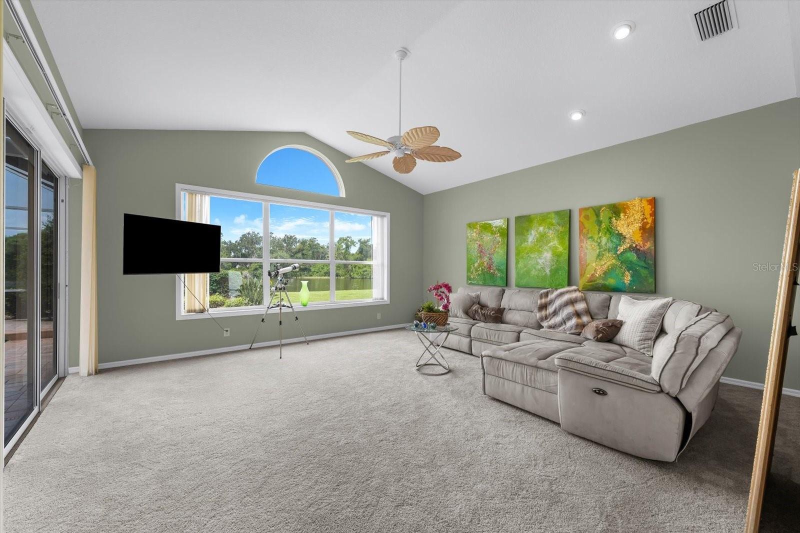 - Built-in Features, Ceiling Fans(s), Central Vaccum, High Ceilings, Kitchen/Family Room Combo, Solid Surface Counters, Solid Wood Cabinets, Split Bedroom, Vaulted Ceiling(s), Walk-In Closet(s), Window Treatments