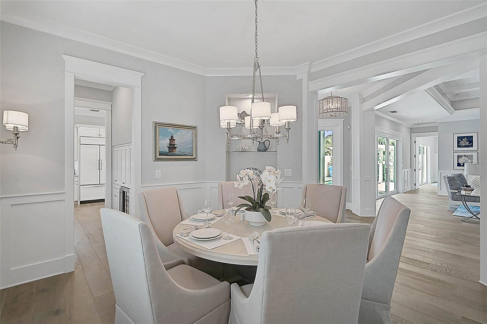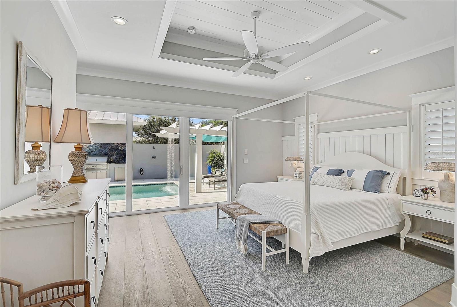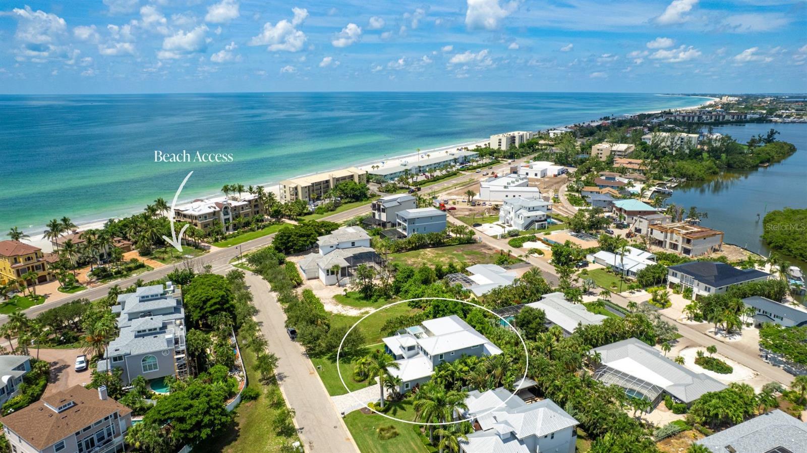 With easy, convenient beach access and just a short walk to Publix and the Town Center, the main house with separate guest house is ideally situated mid-key. Behind the coastal façade rests an interior courtyard providing complete privacy with a resort style heated pool and programmable rain shower waterfall, a sound system and an outdoor shower. This 4 bedroom, 3 full bath and 2 half bath Brista Homes masterpiece was built exceeding code requirements with impact windows and doors and a metal roof and is located just 500 feet from the beach. The first floor master has an extensive bath with dual sinks, a doorless shower and a soaking tub. Rich details throughout include plantation shutters, wainscoting, wide plank oak floors, crown moldings, tray ceilings, and 12” baseboards. Lutron lighting, motorized window treatments and awnings, a security system and a fenced yard provide effortless living. The kitchen boasts a sub zero refrigerator, a touchless faucet, Thermador appliances including a gas stove with pot filler and an adjoining butler’s pantry. A private office with a wet bar has views to the courtyard. Guests will love the two upstairs bedrooms and terrace with a glimpse of the Gulf or the separate casita. This professionally decorated and meticulously maintained home has the benefit of no HOA fees. This home is offered move-in ready with the furnishings available separately.