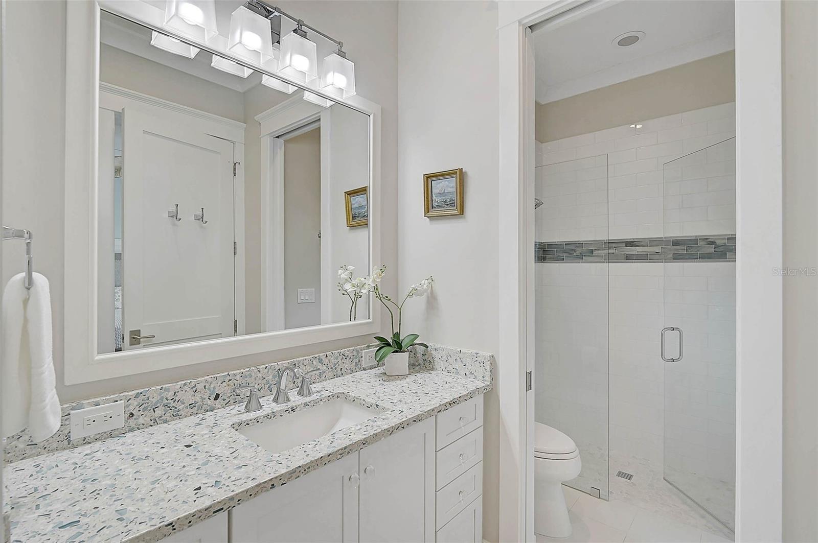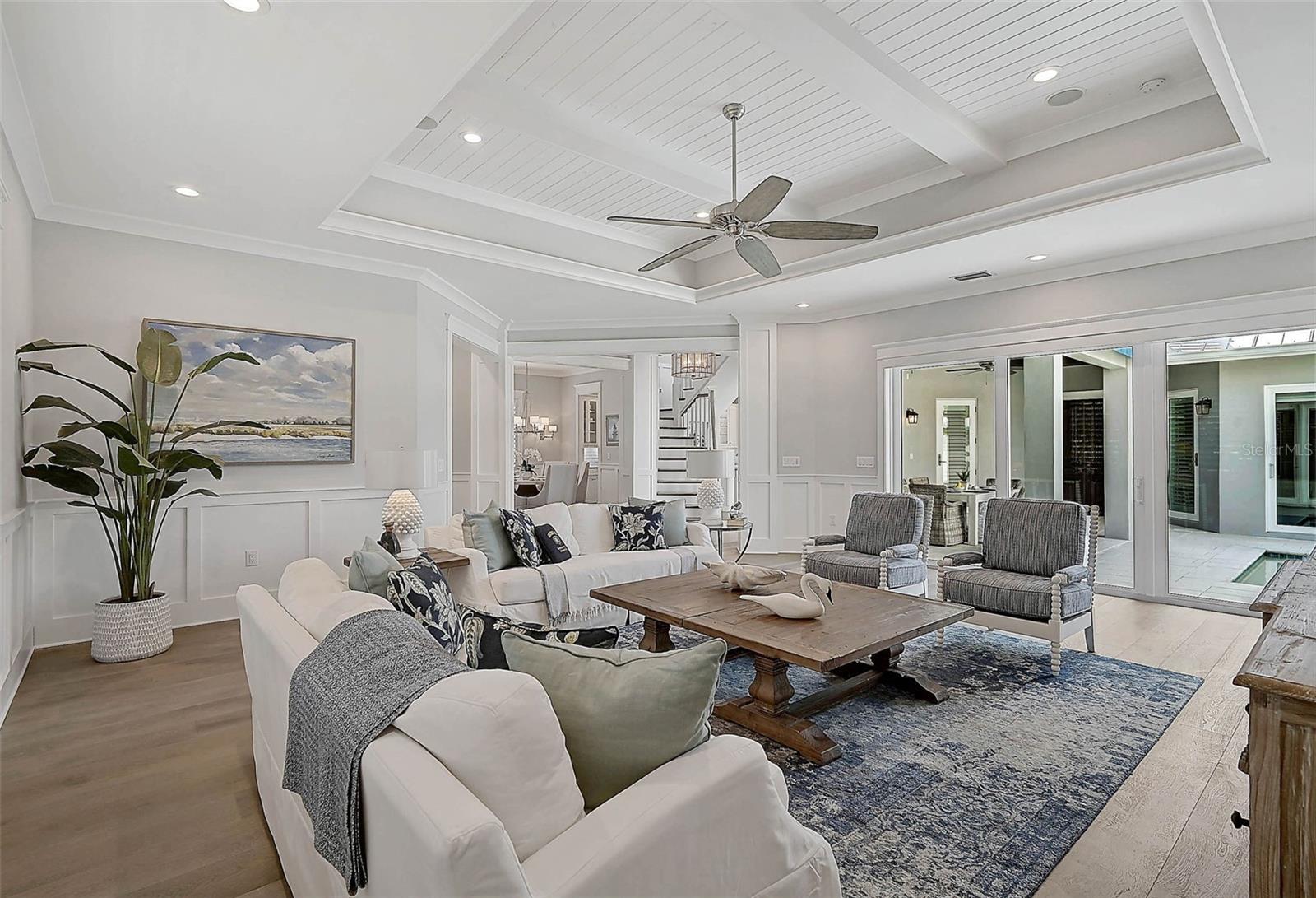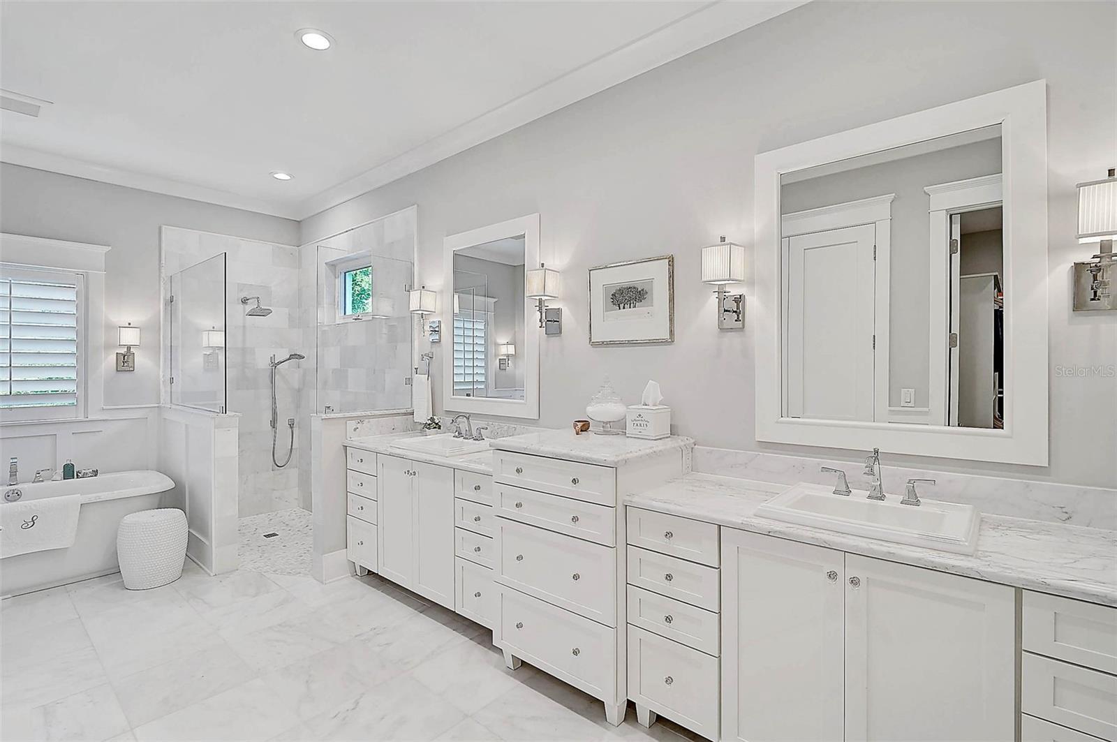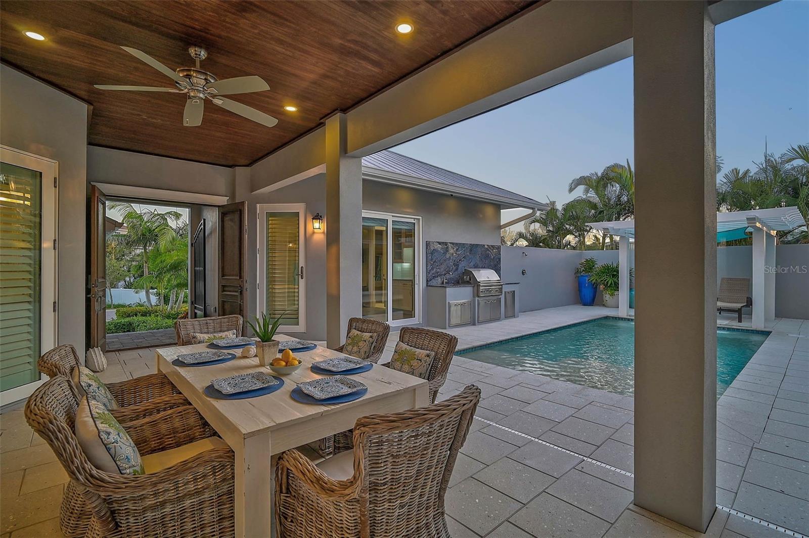 With easy, convenient beach access and just a short walk to Publix and the Town Center, the main house with separate guest house is ideally situated mid-key. Behind the coastal façade rests an interior courtyard providing complete privacy with a resort style heated pool and programmable rain shower waterfall, a sound system and an outdoor shower. This 4 bedroom, 3 full bath and 2 half bath Brista Homes masterpiece was built exceeding code requirements with impact windows and doors and a metal roof and is located just 500 feet from the beach. The first floor master has an extensive bath with dual sinks, a doorless shower and a soaking tub. Rich details throughout include plantation shutters, wainscoting, wide plank oak floors, crown moldings, tray ceilings, and 12” baseboards. Lutron lighting, motorized window treatments and awnings, a security system and a fenced yard provide effortless living. The kitchen boasts a sub zero refrigerator, a touchless faucet, Thermador appliances including a gas stove with pot filler and an adjoining butler’s pantry. A private office with a wet bar has views to the courtyard. Guests will love the two upstairs bedrooms and terrace with a glimpse of the Gulf or the separate casita. This professionally decorated and meticulously maintained home has the benefit of no HOA fees. This home is offered move-in ready with the furnishings available separately.