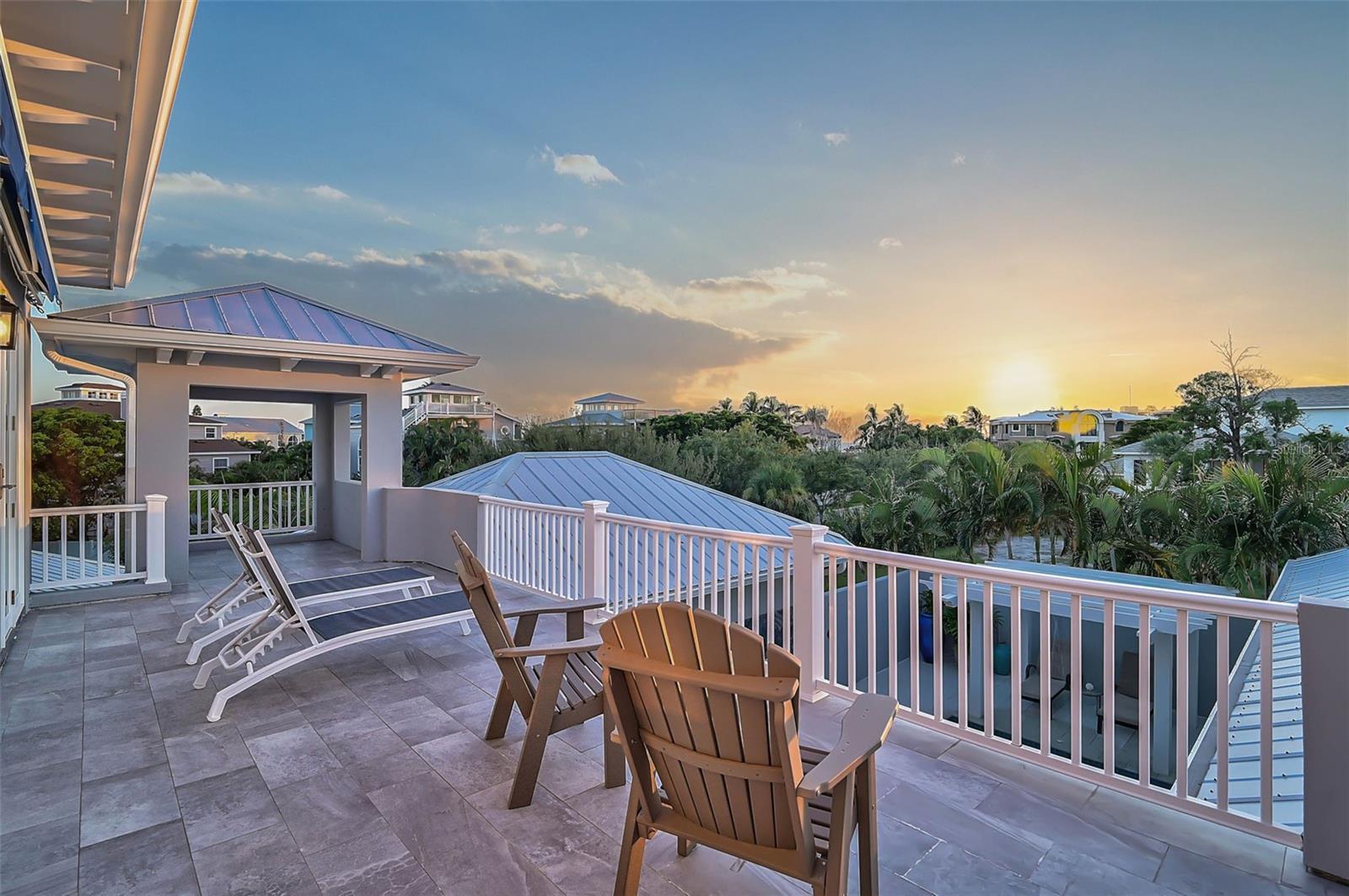Under contract-accepting backup offers. Perfectly positioned mid-key and just 500 feet from the shell-filled shoreline, this beautiful home with a fenced-in yard spans two levels and features a separate guest house. Enter the property through the interior courtyard, past the covered al fresco dining area, to the soothing sound of a waterfall flowing from the pergola into the heated pool. Sunlight from the central courtyard brightens all interior living spaces by day, while the pool-area lighting creates a relaxing ambiance at night. This four-bedroom home with three full and two half baths offers 3,300+ square feet and is a Brista Homes architectural gem, built to exceed code requirements with high-impact windows and doors on a protective, elevated site. The first-floor owners’ retreat includes an expansive en-suite with a doorless shower, dual vanities, and a soaking tub. Every need has been met and every detail considered, with rich finishes and amenities throughout, including home automation and lighting control, a security system, motorized awnings and window shades, plantation shutters, wainscoting, shiplap tray ceilings, crown molding, 12-inch baseboards, and wide-plank oak floors. The chef’s kitchen features Sub-Zero refrigeration and Thermador appliances, along with a butler’s pantry. The kitchen, dining room, living room, owners’ suite, and a private office with a wet bar all enjoy views of the tropical landscaping and the courtyard. Guests will appreciate the choice of the private casita or two upstairs bedrooms that open to a large terrace offering sunset views over the Gulf. With no HOA fees, a prime location, and a short walk to the town center, this coastal property offers the finest in comfort, privacy, and convenience. Professionally decorated and meticulously maintained with furnishings also available under a separate addendum.