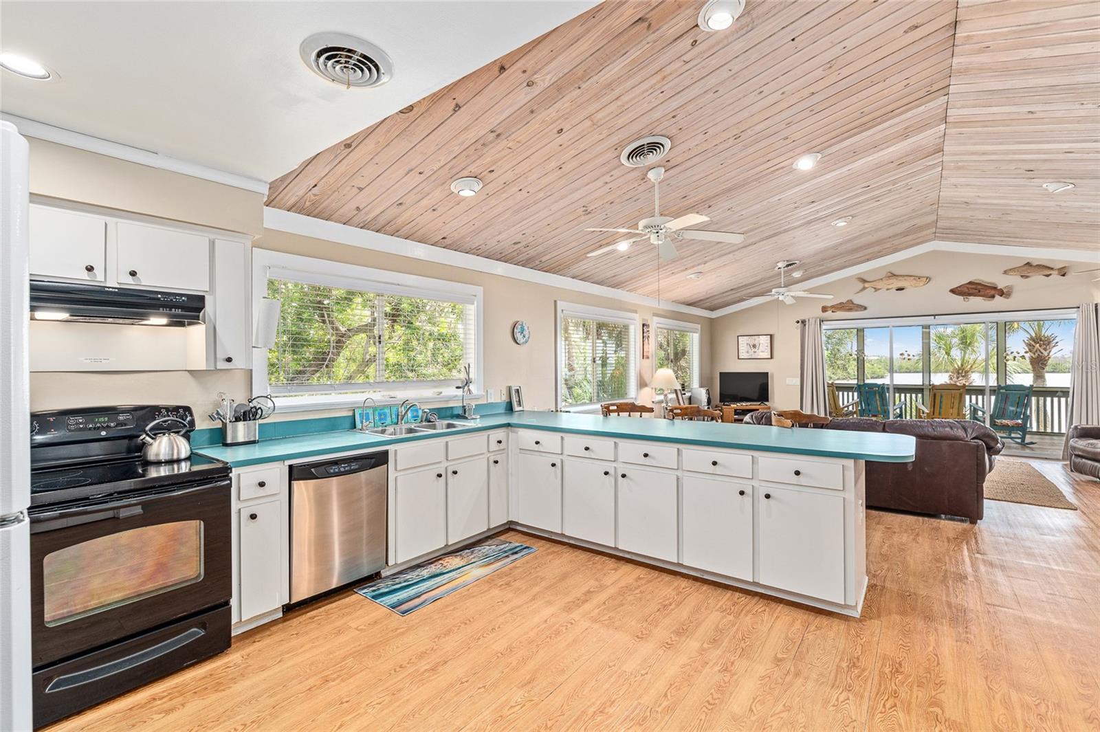 - Cathedral Ceiling(s), Ceiling Fans(s), High Ceilings, Living Room/Dining Room Combo, Open Floorplan