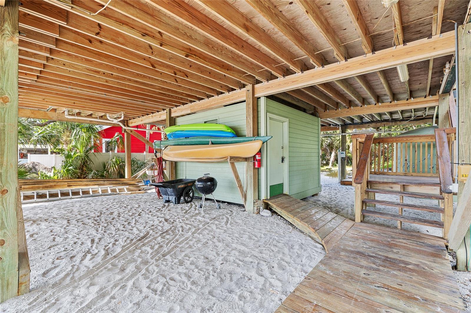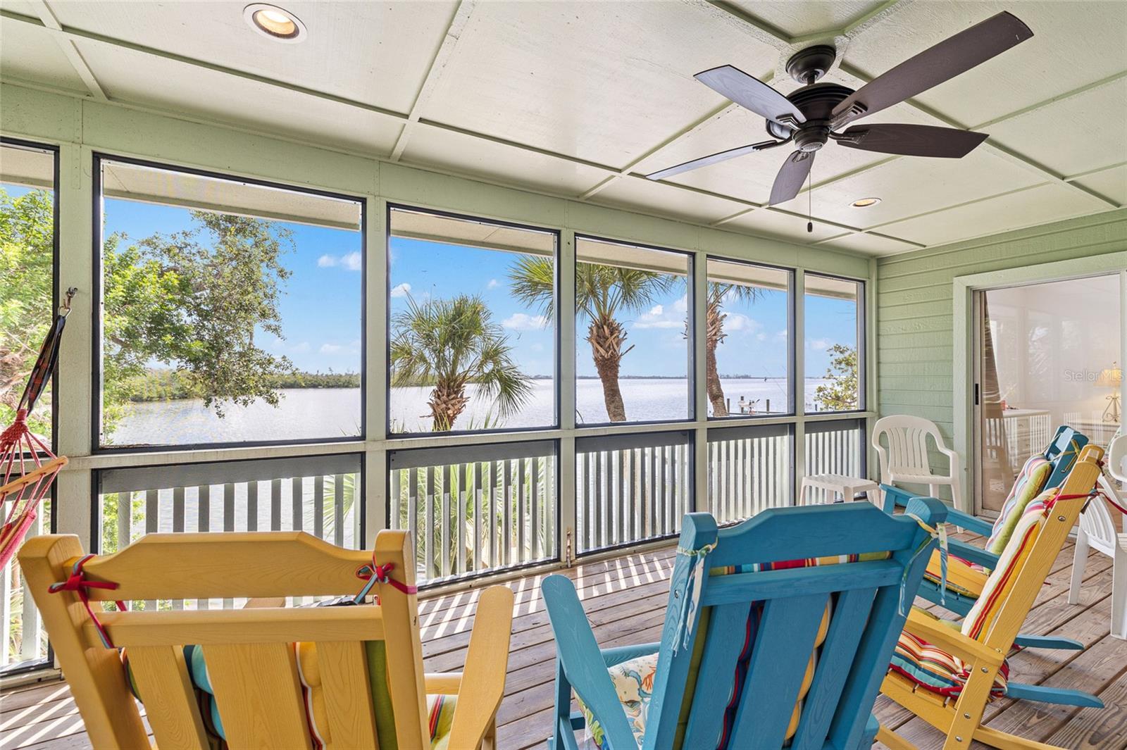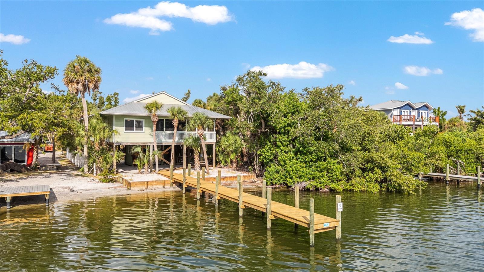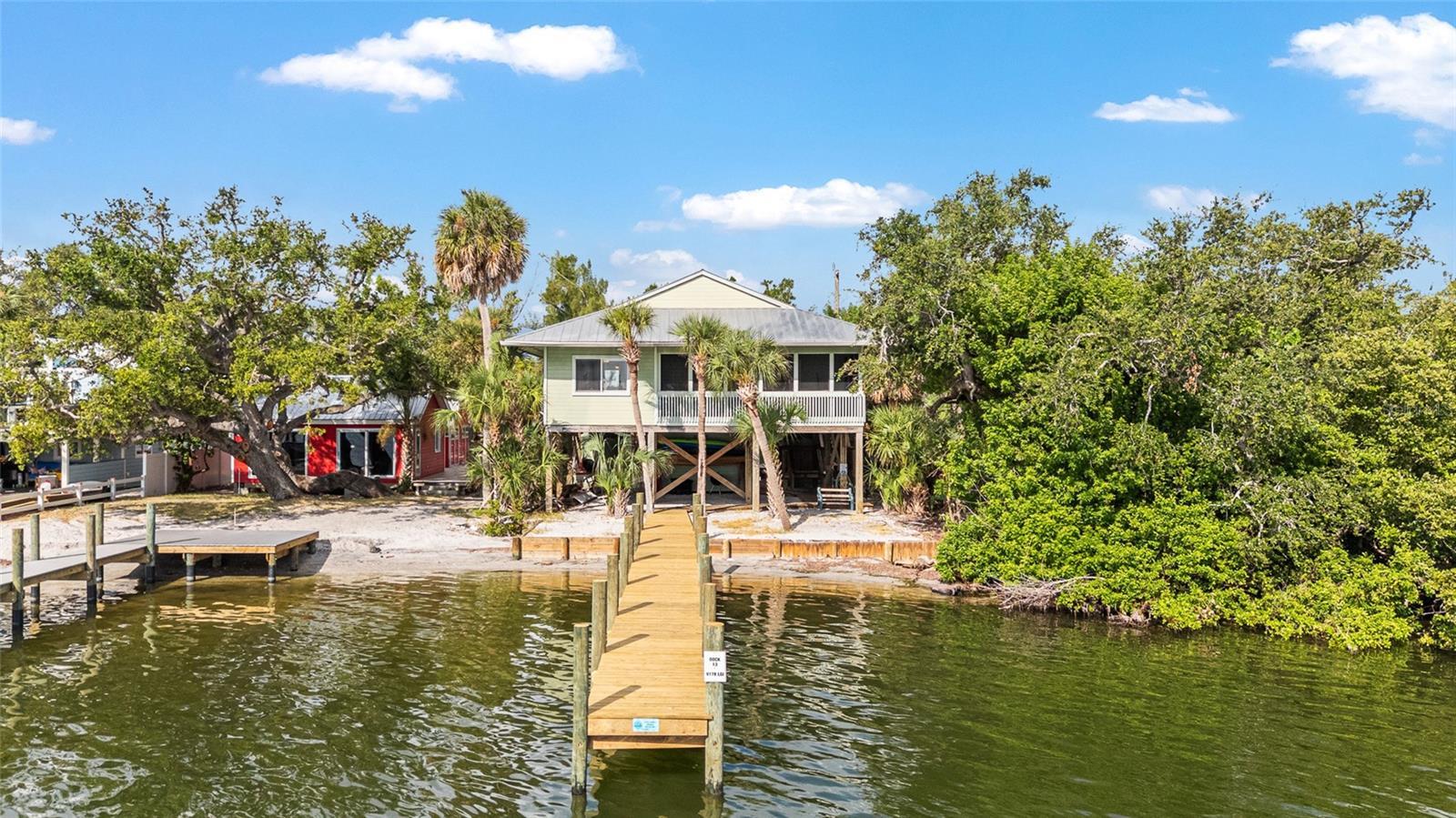 BAYFRONT HOME WITH A PRIVATE DOCK! Escape to your private paradise on Little Gasparilla Island, a bridgeless barrier island just off the Cape Haze Peninsula, accessible only by private boat or water taxi. Free from cars, shops, and crowds, this rare island retreat offers pure tranquility with over 3 miles of pristine, uncrowded beaches for swimming, shelling, shark tooth hunting, fishing, or simply relaxing with a book in the warm gulf breeze. Set on a .37-acre lot stretching 350 feet deep with 50 feet of bayfront (THREE SEPARATE PARCELS INCLUDED IN SALE), this stunning home features a private dock and panoramic views that capture sunrises over the bay and sunsets over the Gulf. Inside, expansive windows flood the open floor plan with natural light, while the chef’s kitchen boasts , an extra-long island, and ample storage. Tongue-and-groove wood ceilings in the main living areaadd warmth and character, while the home’s turnkey furnished status makes moving in effortless. With 3 spacious bedrooms, 2 bathrooms, and multiple outdoor living spaces—screened, covered, and open-air—you’ll find endless places to entertain, unwind, and soak in the beauty of dolphins, manatees, and boating activity on the bay. Practical features make island living easy, including a new metal roof, A/C (2021), outdoor shower, kayak/SUP storage, and an outdoor elevator to carry up groceries and luggage. Storage is abundant for all your beach and boating gear, and sandy golf cart trails let you explore the island and meet welcoming neighbors. Just steps from your door, enjoy beach access to the Gulf’s turquoise waters. Whether you’re searching for a serene family getaway, a vacation rental investment, or your forever island home, this property seamlessly blends comfort, convenience, and the natural beauty of island life.