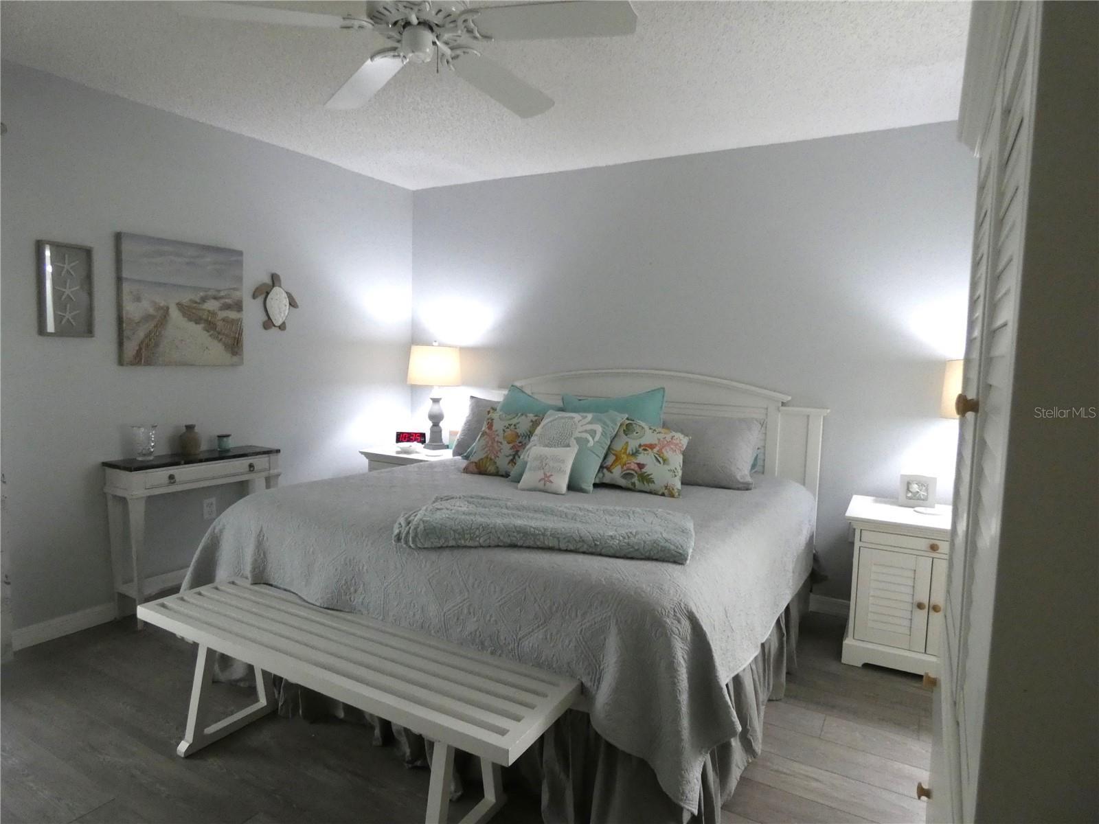 AVAILABLE FEB., MARCH., APRIL 2026 - And off-season months. Fantastic views of the lake and golf course from the screened and glassed lanai of this CORNER UNIT picture-perfect condo decorated in a coastal theme, lots of comfortable seating, windows in well-equiped kitchen and living room not found in interior units. King bed in the master bedroom, walk-in shower in the master bath, and a queen bed in the guest bedroom, which is adjacent to the guest bathroom, with a tub and shower. Washer and dryer in the unit, internet access, and smart TVs. The glassed and screened lanai offers year-round use and is beautifully furnished, offering stellar views of the lake and golf course. A golf transfer is available for a fee (check with the clubhouse for fee schedule.) There is one covered parking spot and the Clubside community pool and tennis/pickleball courts are a short distance from the building. Stoneybrook is a gated community and one of Sarasota's most popular golf and tennis clubs, boasting a newly modernized Kipp Schultes-designed golf course and said to be one of the best golf courses on the west coast. The clubhouse is recently redecorated and offers a full bar and grill room and fine dining, several Har Tru lighted tennis courts, a large heated pool and a fitness room. The community borders the Legacy walking and biking trail, is close to Publix grocery store, banks, a Costco, and YMCA. It is less than 15 minutes to the sugary sandy beaches of Siesta Key, the village shops and restaurants and you can be downtown to experience all that Sarasota has to offer in 25 minutes.