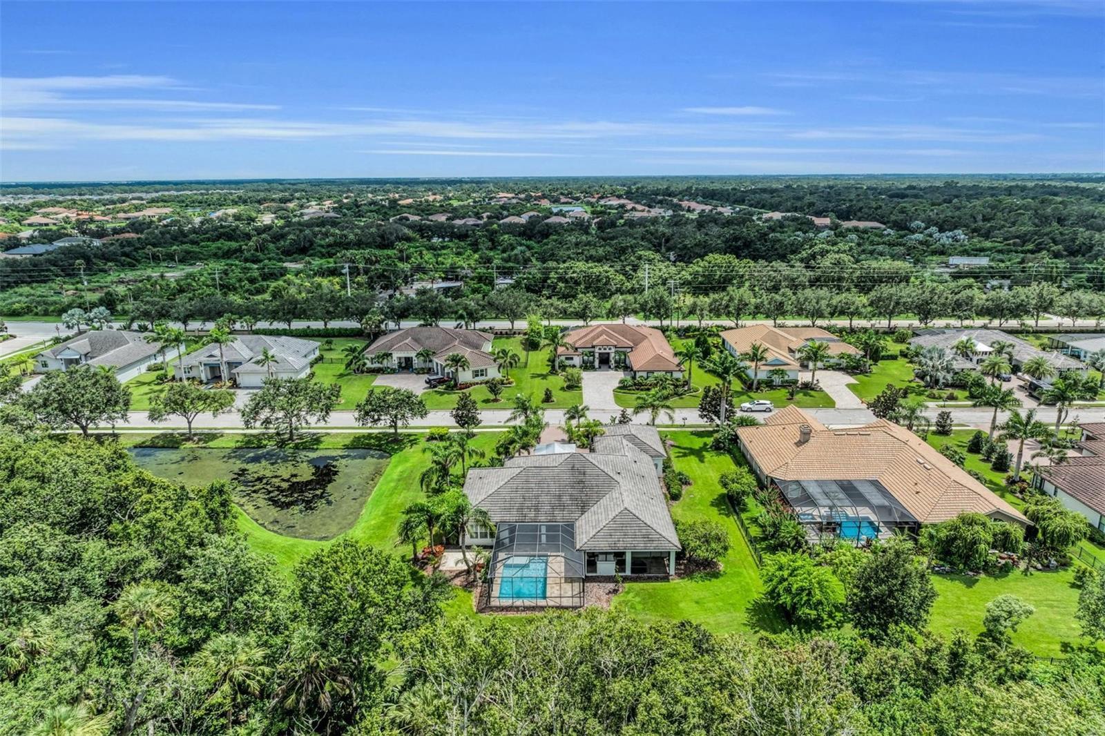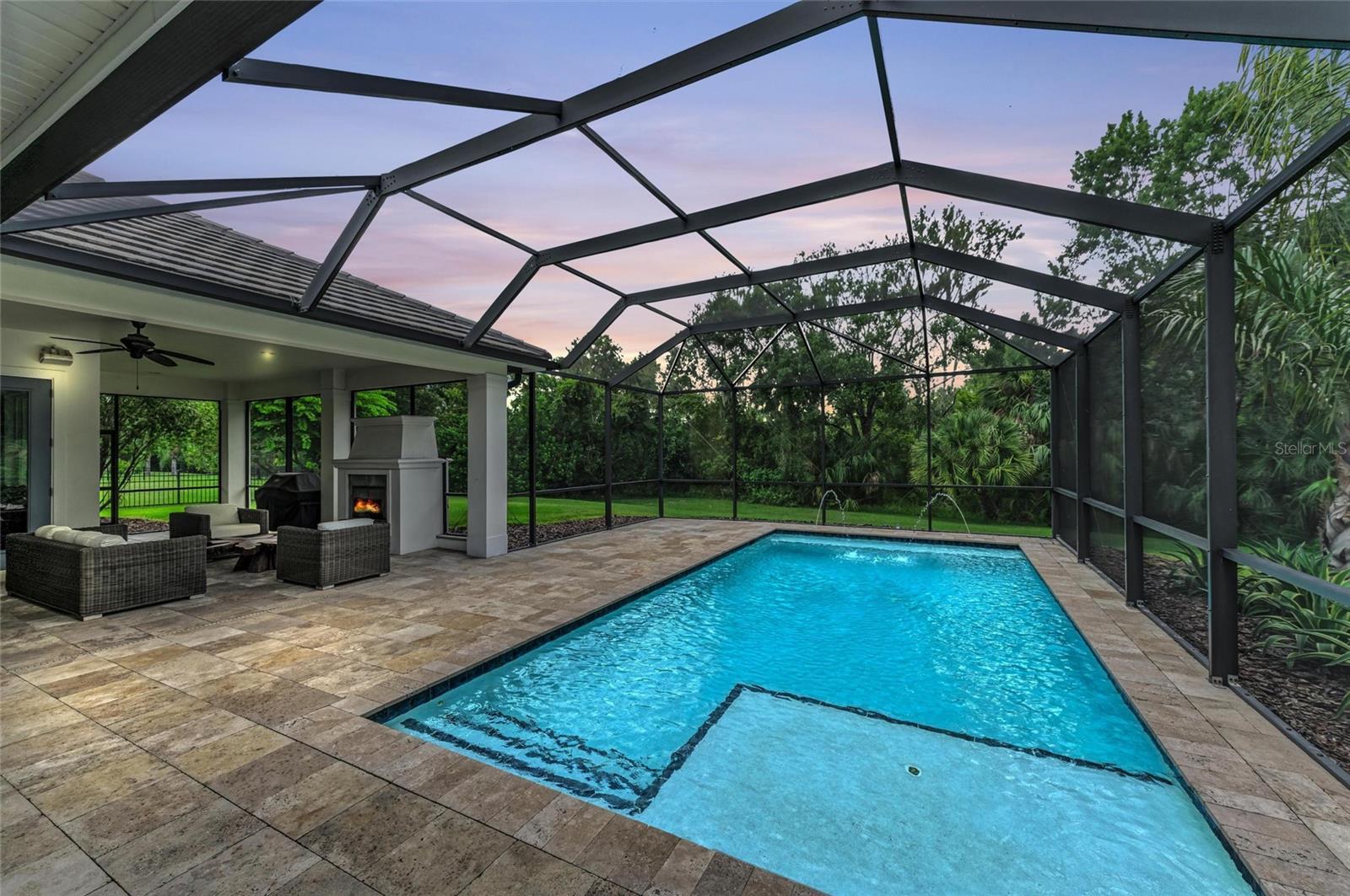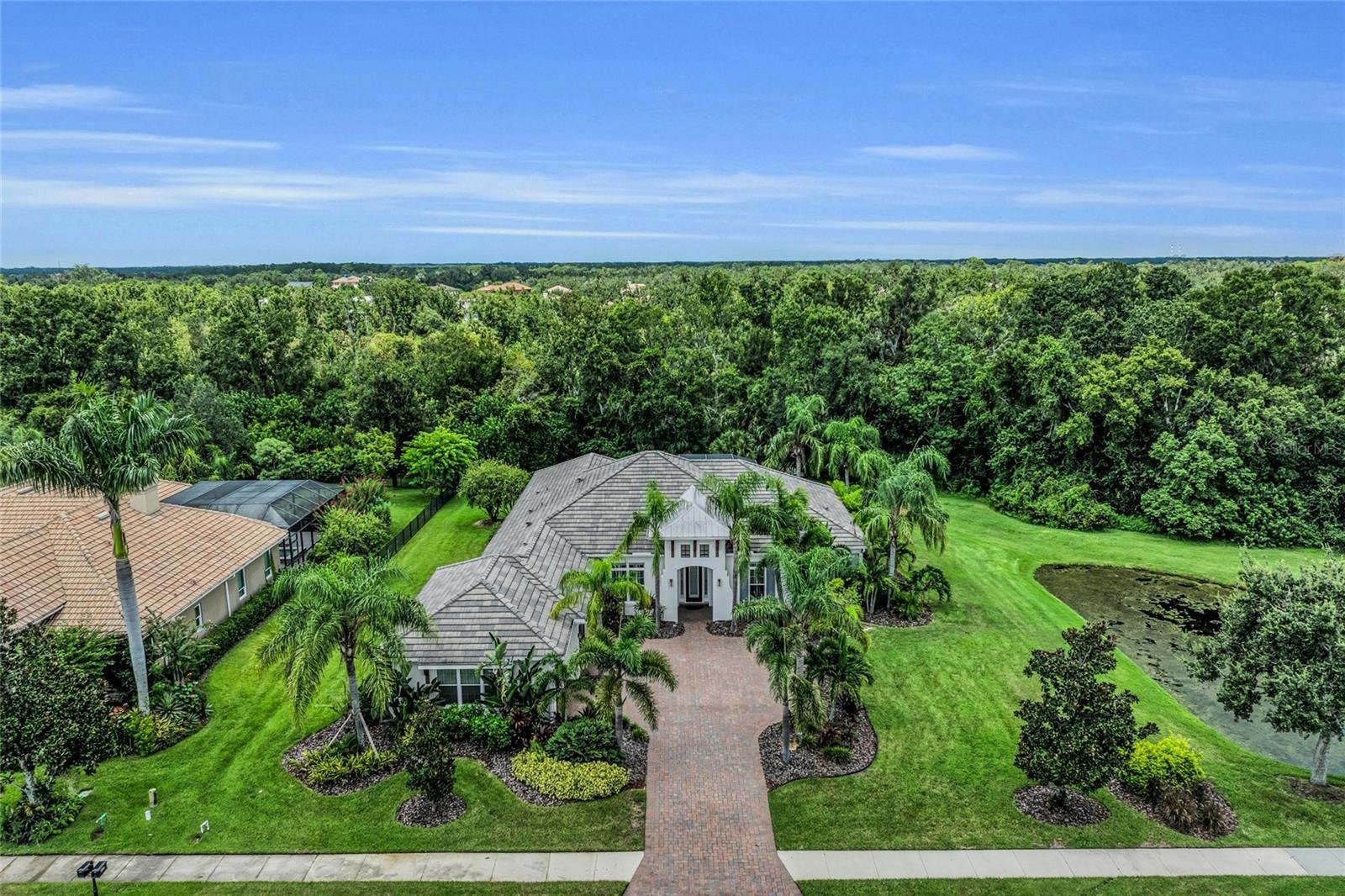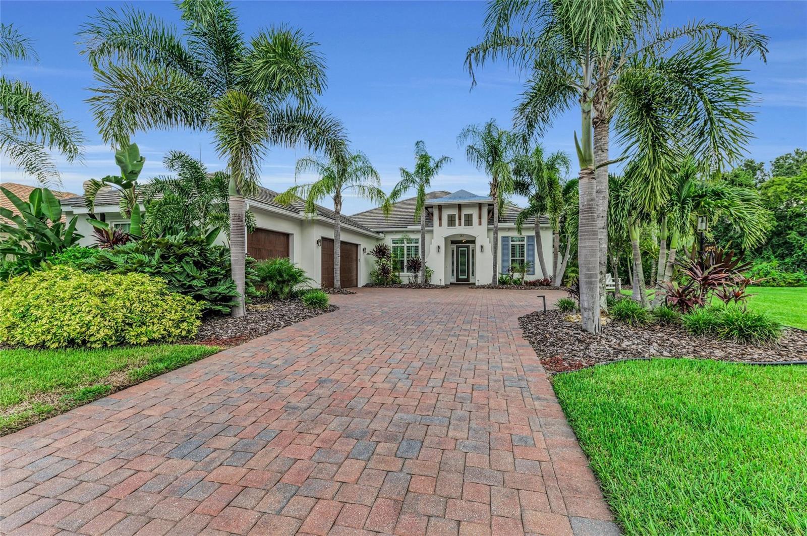 Tucked away on nearly a half-acre, this custom Bruce William's built residence offers both privacy and an abundance of nature with serene conservation and pond views. Originally presented as the builder’s model home, it showcases their curated design selections and refined finishes, found in abundance throughout. With its pavered driveway, side-load 3-car garage, and private homesite overlooking the pond, the residence makes a grand and welcoming first impression. Inside, you’ll find 3,133 sq ft of living space with 3 bedrooms, 2.5 baths, a den/office, bonus room, and a spacious great room layout. The primary suite is a true retreat, featuring 2 walk-in closets and a spa-like bath with a soaking tub. The gourmet kitchen is a standout with Thermador & Bosch appliances, gas range, custom cabinetry, and a mix of granite and quartz countertops. Hardwood floors, custom trim details and plantation shutters add to the home’s elevated character while impact windows and doors throughout provide peace of mind. Your outdoor retreat awaits with a sparkling pool, Travertine lanai, and a covered living area complete with fireplace, perfect for entertaining or simply unwinding in the serene ambiance. Set within Winding River, a boutique community of just 62 homesites on the banks of the Manatee River, residents enjoy access to a private boat launch to the Manatee River, nature trails, and a picnic area. Enjoy maintenance-assisted living with lawn care and irrigation provided through the HOA, plus the added benefit of no CDD fee.
