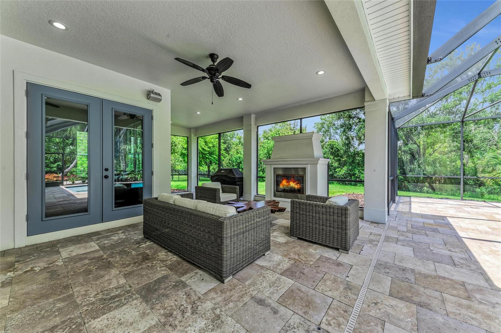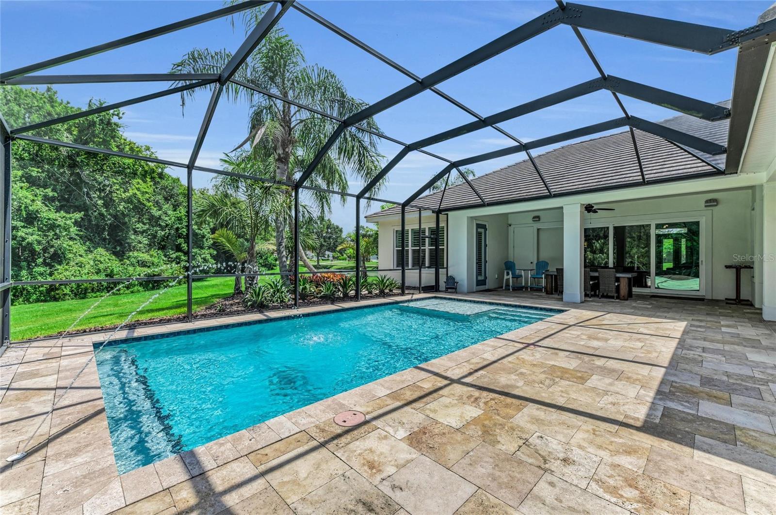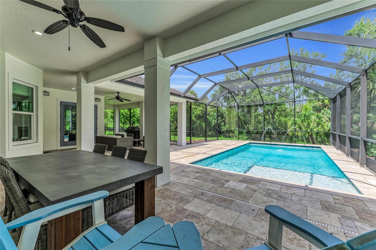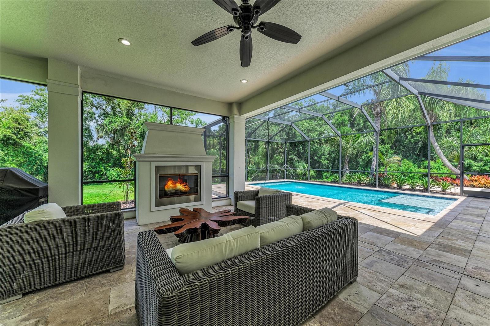 Tucked away on nearly a half-acre, this custom Bruce William's built residence offers both privacy and an abundance of nature with serene conservation and pond views. Originally presented as the builder’s model home, it showcases their curated design selections and refined finishes, found in abundance throughout. With its pavered driveway, side-load 3-car garage, and private homesite overlooking the pond, the residence makes a grand and welcoming first impression. Inside, you’ll find 3,133 sq ft of living space with 3 bedrooms, 2.5 baths, a den/office, bonus room, and a spacious great room layout. The primary suite is a true retreat, featuring 2 walk-in closets and a spa-like bath with a soaking tub. The gourmet kitchen is a standout with Thermador & Bosch appliances, gas range, custom cabinetry, and a mix of granite and quartz countertops. Hardwood floors, custom trim details and plantation shutters add to the home’s elevated character while impact windows and doors throughout provide peace of mind. Your outdoor retreat awaits with a sparkling pool, Travertine lanai, and a covered living area complete with fireplace, perfect for entertaining or simply unwinding in the serene ambiance. Set within Winding River, a boutique community of just 62 homesites on the banks of the Manatee River, residents enjoy access to a private boat launch to the Manatee River, nature trails, and a picnic area. Enjoy maintenance-assisted living with lawn care and irrigation provided through the HOA, plus the added benefit of no CDD fee.