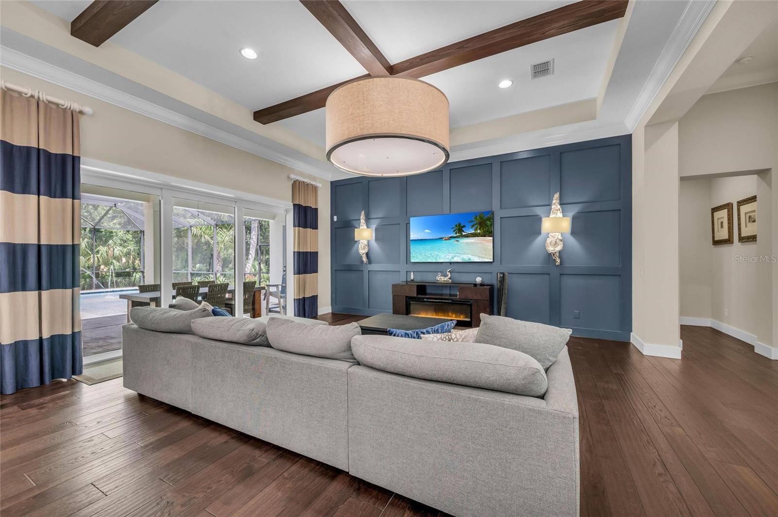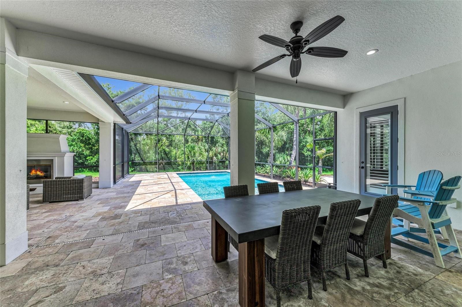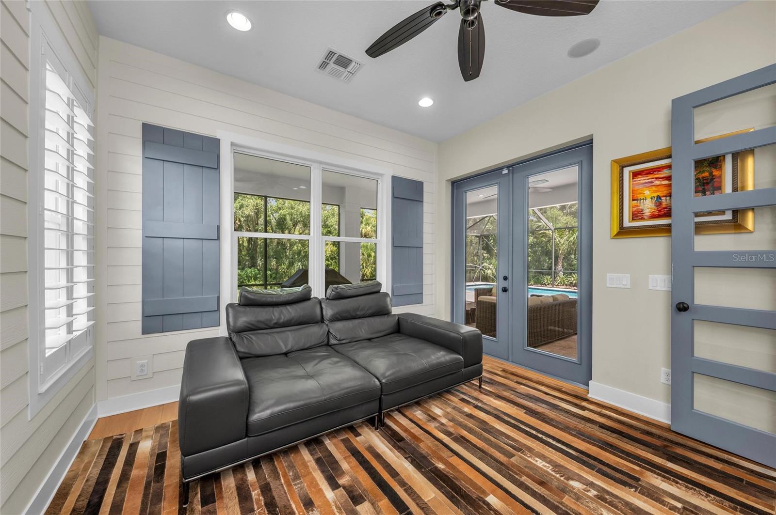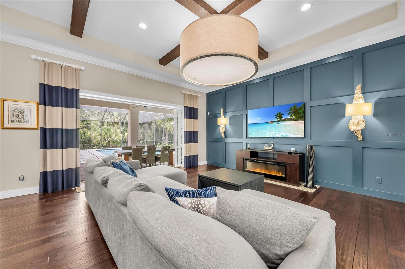 Tucked away on nearly a half-acre, this custom Bruce William's built residence offers both privacy and an abundance of nature with serene conservation and pond views. Originally presented as the builder’s model home, it showcases their curated design selections and refined finishes, found in abundance throughout. With its pavered driveway, side-load 3-car garage, and private homesite overlooking the pond, the residence makes a grand and welcoming first impression. Inside, you’ll find 3,133 sq ft of living space with 3 bedrooms, 2.5 baths, a den/office, bonus room, and a spacious great room layout. The primary suite is a true retreat, featuring 2 walk-in closets and a spa-like bath with a soaking tub. The gourmet kitchen is a standout with Thermador & Bosch appliances, gas range, custom cabinetry, and a mix of granite and quartz countertops. Hardwood floors, custom trim details and plantation shutters add to the home’s elevated character while impact windows and doors throughout provide peace of mind. Your outdoor retreat awaits with a sparkling pool, Travertine lanai, and a covered living area complete with fireplace, perfect for entertaining or simply unwinding in the serene ambiance. Set within Winding River, a boutique community of just 62 homesites on the banks of the Manatee River, residents enjoy access to a private boat launch to the Manatee River, nature trails, and a picnic area. Enjoy maintenance-assisted living with lawn care and irrigation provided through the HOA, plus the added benefit of no CDD fee.