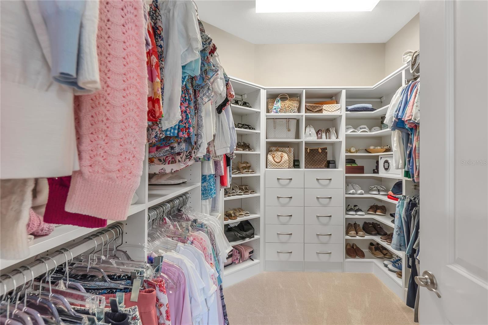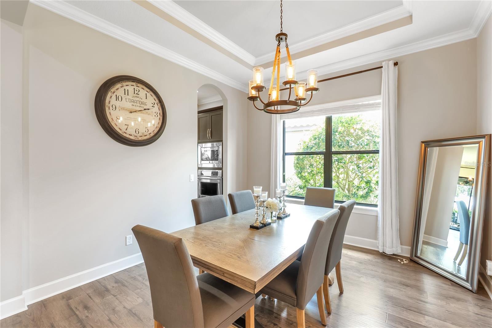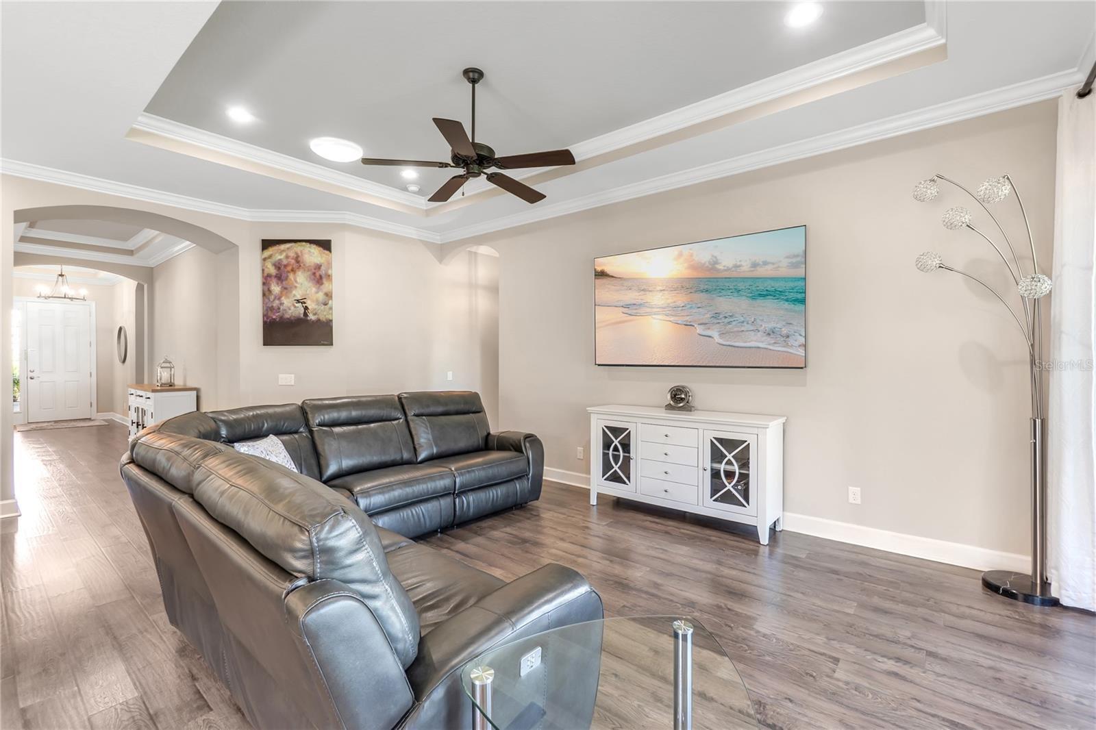 - Ceiling Fans(s), Coffered Ceiling(s), Crown Molding, In Wall Pest System, Primary Bedroom Main Floor, Solid Wood Cabinets, Split Bedroom, Stone Counters, Walk-In Closet(s), Window Treatments