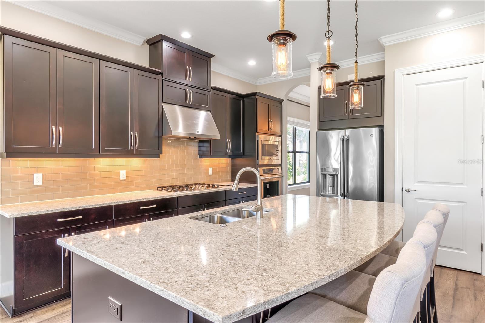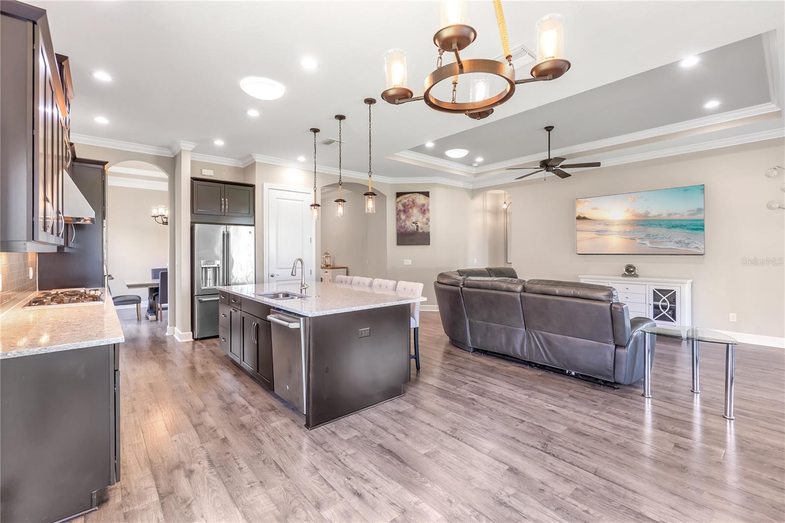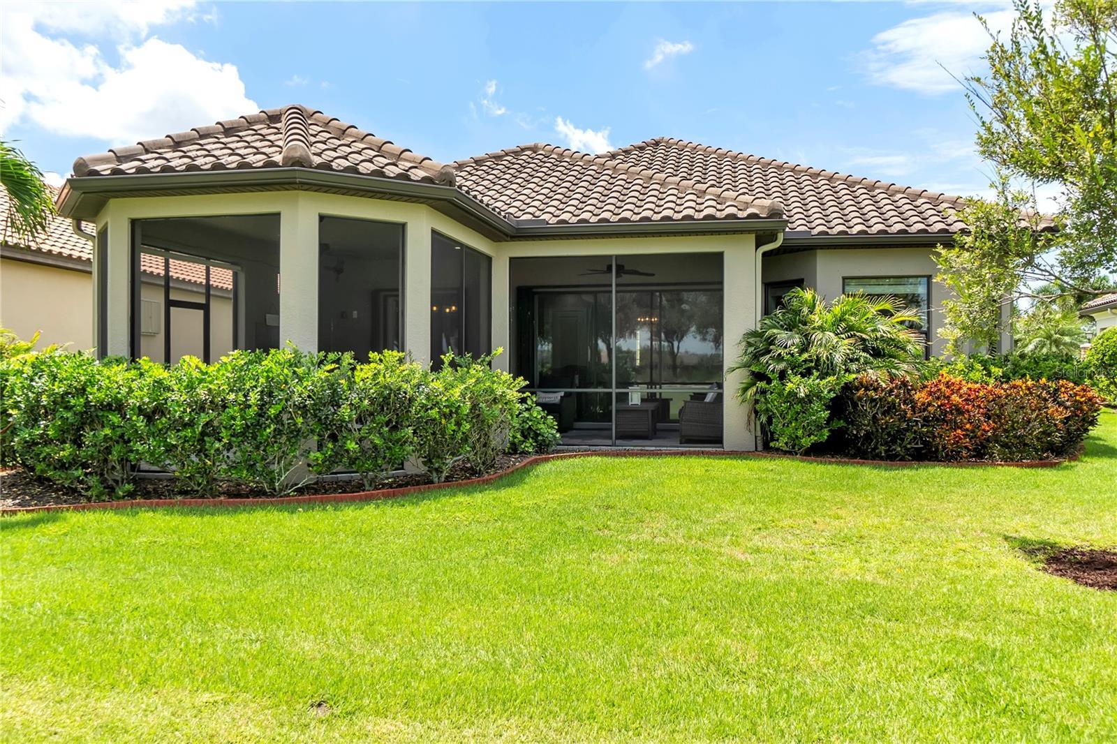Resort-style vacation living, Esplanade Golf and Country Club Lakewood Ranch - America’s #1 best-selling multigenerational, maintenance free master-planned community. Gorgeous Farnese model is light, bright, spacious, truly move-in ready, 2 spacious bedrooms + den, 2.5 baths, and rare 3-car tandem garage. Direct golf course home. Golf-deeded ownership conveys VIP membership with priority tee times. Premier 52’ homesite with spectacular water and dual fairway vistas of 2nd and 17th, Designer finishes for indoor–outdoor living. Gourmet kitchen showcases GE Café stainless appliances including a natural-gas cooktop with vent hood, elegant quartz countertops, a huge island, glass-tile backsplash, 12’-foot tray ceilings throughout. Triple and double sliders open to an expansive, fully enclosed screened lanai with beautiful summer kitchen, your private retreat for morning coffee or sunset cocktails. The spacious den features French doors and plantation shutters. This den can easily be used as an ideal third bedroom. Generous owner’s suite offers bay windows, tray ceiling, large spa-style bath with stone countertops, double sinks, walk-in shower, spacious custom California Closet with safe, private water closet. The guest bedroom enjoys a full en-suite bath with a soaking tub. Formal dining room, powder half bath and laundry room round out the living area. Other enhancements include solar tubes that brighten the space and hurricane shutters for enhanced storm protection. In 2024, home had zero damage and no power loss after a direct CAT 5 hit. Room for a pool! Enjoy two stunning clubhouses, activities director with events and live music, resort pools, hot tubs, fire pits, waterside veranda, fitness centers and classes, pickleball, tennis, driving range, putting green, bocce, playground, dog park, full-service spa, hair salon. Barrel House restaurant and bar with wraparound patio on the 18th fairway, plus the Bahama Bar & Grill at the main pool. Guard-gated, ideally located minutes to UTC, Waterside, SRQ, St. Armands, and the beaches of Lido, Siesta, Anna Maria, and Longboat Key. Priced to sell! Quick closing available. Motivated seller-bring all offers. Schedule your private showing today.