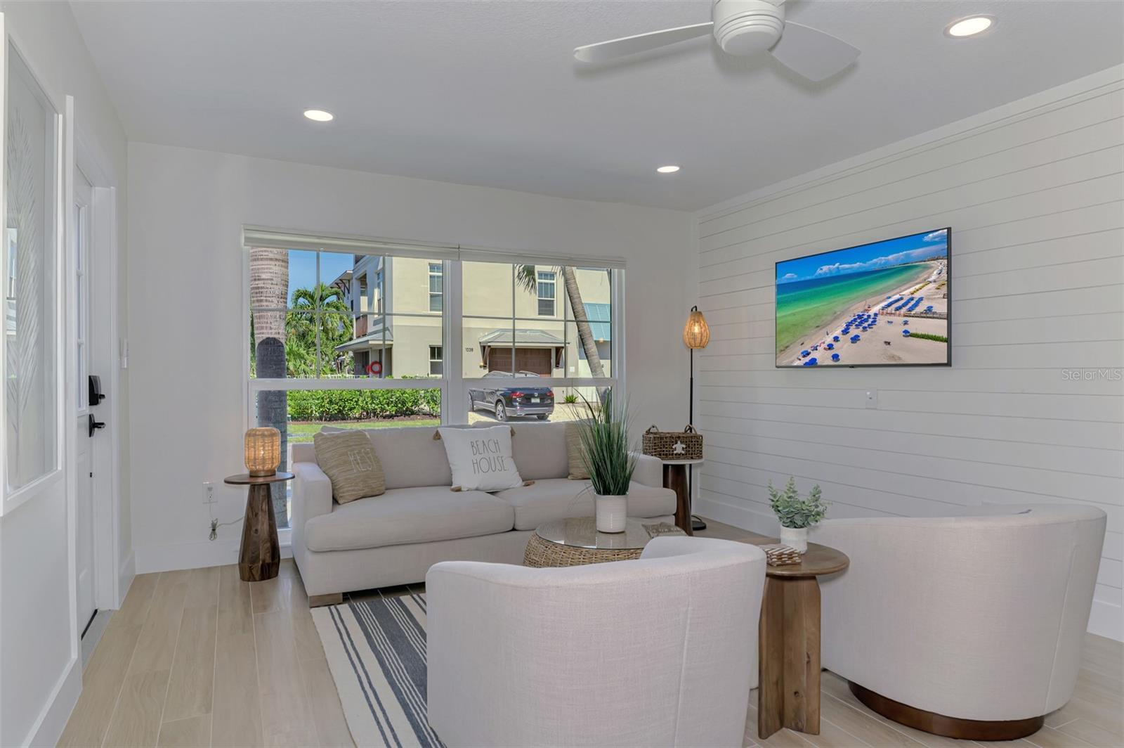 This is a short term rental. Listing price reflects off season rate, high season rates will be higher. Whether you’re seeking a relaxing beach escape or an adventure-filled vacation, Sanctuary at the Point offers the perfect home base. Its prime location, luxurious amenities, and proximity to both the beach and South Siesta Key Village make it an exceptional choice for creating unforgettable memories. This spacious, fully remodeled home comfortably sleeps up to 8 guests across four beautifully appointed bedrooms. Each room is thoughtfully designed with plush bedding, contemporary furnishings, and ample natural light, ensuring a restful and rejuvenating stay. The first bedroom features a luxurious queen bed with an attached private bathroom. The second boasts a queen bed with an ensuite bathroom. The third bedroom offers a spacious king bed, secluded in a private wing of the house with its own living area, bathroom, and dining area. The fourth bedroom is situated upstairs near the third living space, and has two twin beds and an accompanying full bathroom. Every detail of this home's interior has been meticulously updated, providing a seamless blend of luxury and comfort with an open-concept living area, sleek hardwood floors, a gourmet kitchen with stainless steel appliances and quartz countertops, and a dedicated workspace. Outside, you can dive into relaxation with your own private pool, which is surrounded by lush tropical landscaping for a tranquil oasis. Ready for your best vacation yet? Book your escape to Sanctuary at the Point today!