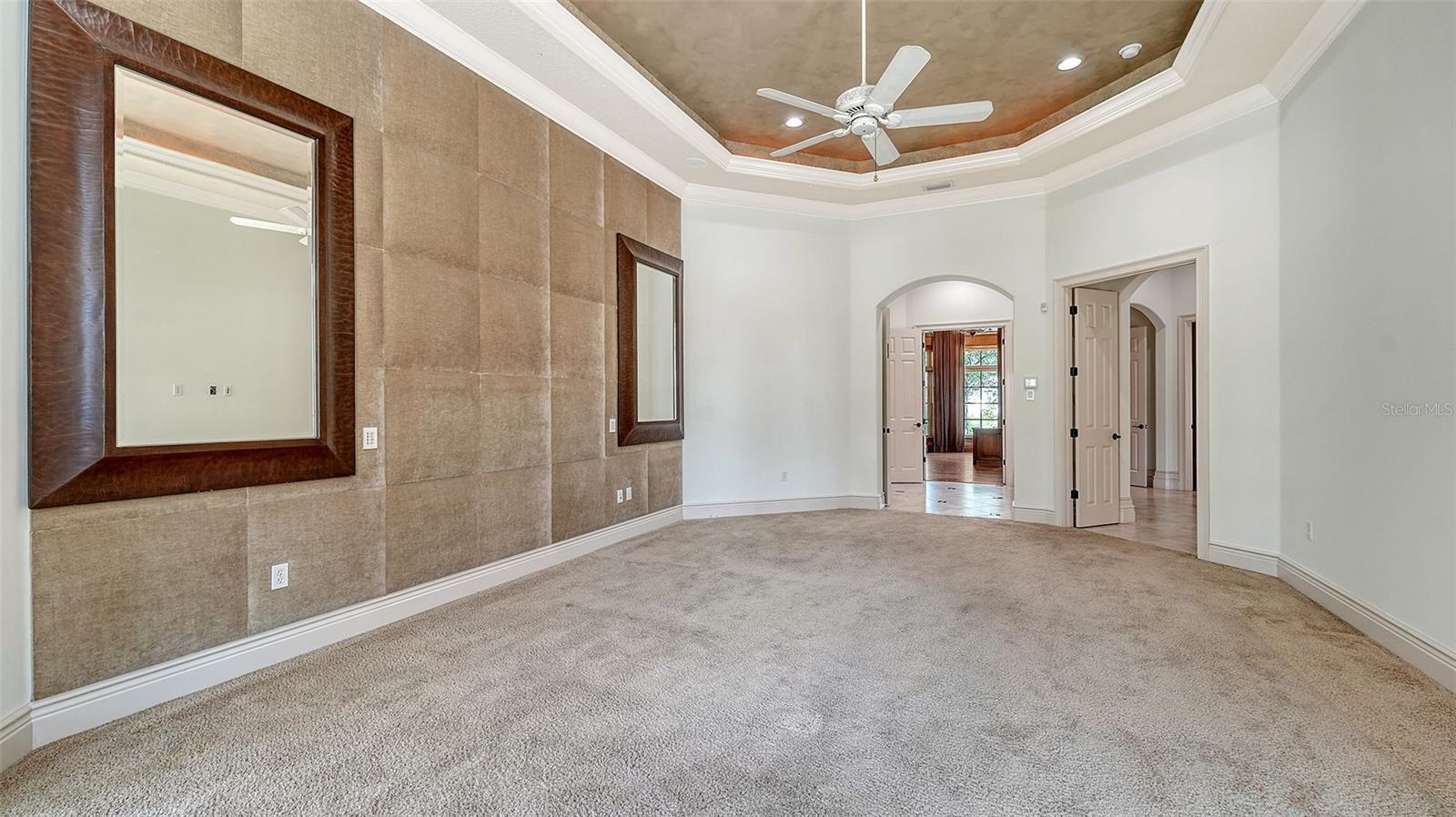 - Cathedral Ceiling(s), Ceiling Fans(s), Coffered Ceiling(s), Crown Molding, Eat-in Kitchen, High Ceilings, In Wall Pest System, Kitchen/Family Room Combo, Open Floorplan, Primary Bedroom Main Floor, Solid Surface Counters, Solid Wood Cabinets, Thermostat, Tray Ceiling(s), Vaulted Ceiling(s), Walk-In Closet(s), Wet Bar, Window Treatments