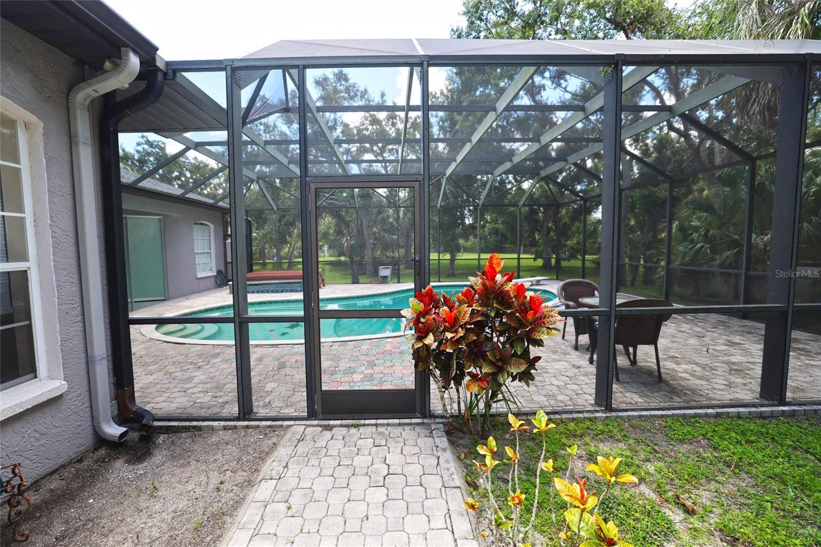Discover a truly unique opportunity with this private 1.9-acre property offering freedom with no deed restrictions, Horses allowed, no HOA, and no flood insurance required. Just minutes from the new Sarasota Memorial Hospital in Nokomis, Nokomis Beach, and historic downtown Venice, this home combines privacy with convenience. The residence features three bedrooms and three full bathrooms, including a potential mother-in-law suite with its own entrance including an office or possible fourth bedroom, family room, bathroom, and an oversized storage room with custom floor-to-ceiling cabinetry. Recent updates include a new roof and gutters in 2024, a three-zone A/C system under warranty, and fresh exterior paint in 2021. Inside, bamboo floors enhance the living and dining areas, while outside, the grounds are fully fenced with a privacy gate. Enjoy a 36x16 pool that is nine feet deep with paver decking, under a 54x36 screen enclosure, plus a detached two-car garage and a 20x20 outbuilding potential guest house, studio or workshop. Surrounded by serene views in every direction, this irreplaceable property offers the perfect blend of peace, space, and proximity to shopping, dining, medical facilities, and pristine Gulf beaches.