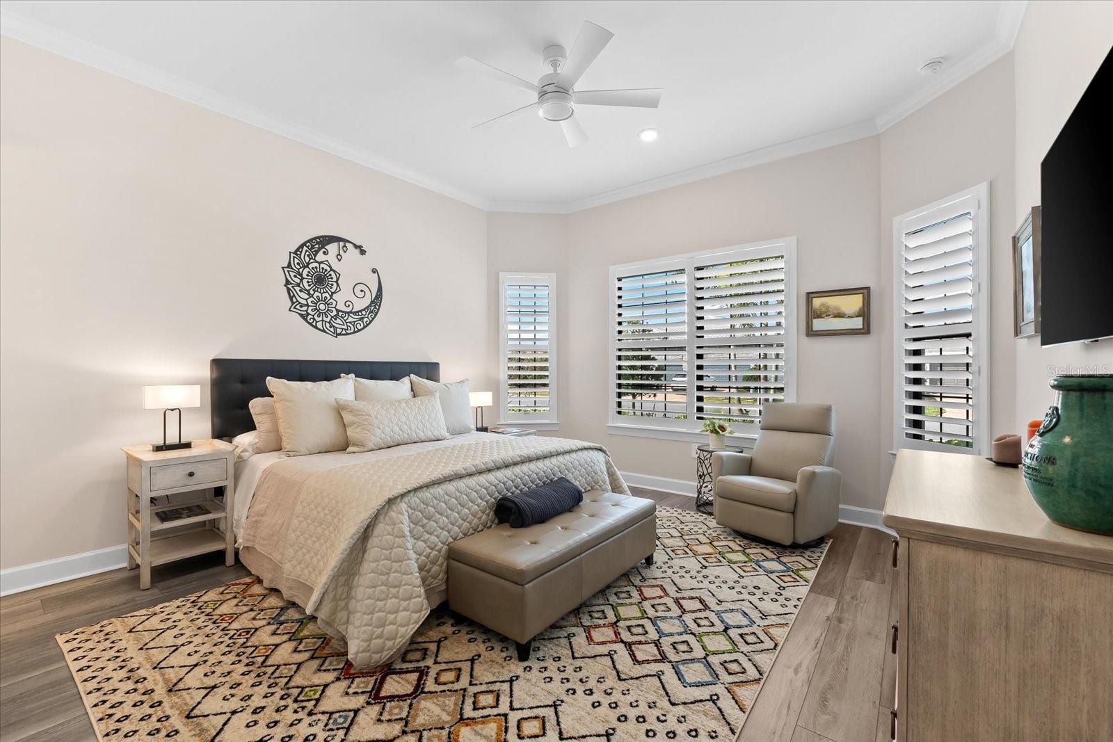 - Ceiling Fans(s), Crown Molding, Eat-in Kitchen, High Ceilings, Open Floorplan, Primary Bedroom Main Floor, Smart Home, Solid Wood Cabinets, Split Bedroom, Stone Counters, Thermostat, Tray Ceiling(s), Walk-In Closet(s), Window Treatments