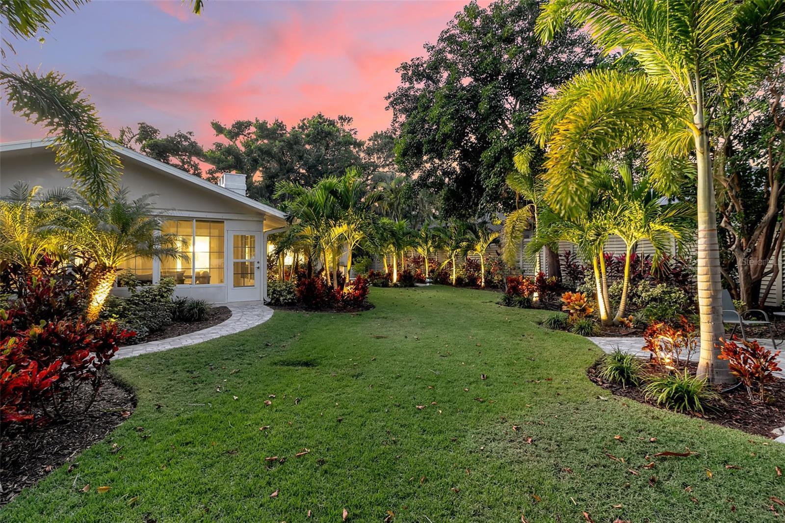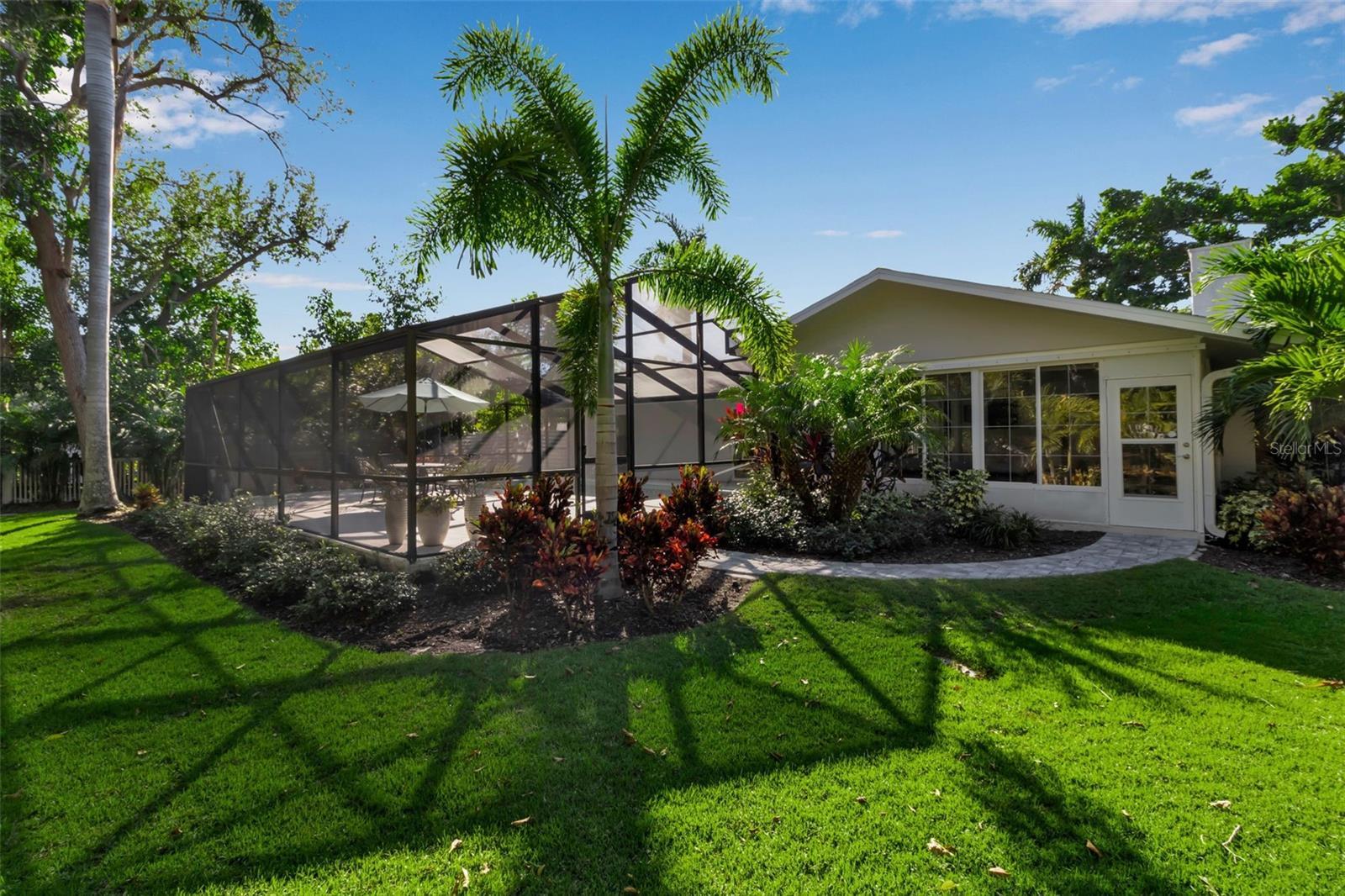 On a lush one-third-acre homesite in desired Pine Bay Estates, this single-story residence has been entirely rebuilt and elevated through a comprehensive, design-forward renovation exceeding $1.1 million. The result is a serene coastal haven where timeless craftsmanship meets modern luxury. A full interior transformation opened the home to light, flow and functionality. The newly relocated chef’s kitchen features bespoke cabinetry, premium finishes and a full suite of Thermador appliances, all thoughtfully positioned to overlook the tropical gardens. Wide-plank flooring carries through every room, complemented by exposed beams, curated lighting and refined architectural details. Every major system has been replaced or upgraded, including all-new HVAC, a tankless water heater, new plumbing and water lines, new insulation, and hurricane-rated windows, doors and sliders, ensuring enduring comfort and peace of mind. The home’s heart is its stunning sunroom, surrounded by glass and bathed in natural light, an ideal space for morning coffee, quiet reading or gathering with guests while taking in the lush, mature landscaping. Three beautifully redesigned baths, a gas fireplace, custom California Closets and a new laundry suite continue the theme of thoughtful luxury throughout. Outside, the home lives like a private botanical retreat. A full landscape redesign brought in layered tropical plantings, ambient lighting, new walkways and hardscape, all-new fencing and gates, and a pool with a replaced deck and rescreened cage. A new roof, fresh stucco exterior, carport enhancements and upgraded exterior lighting, complete the transformation. With its rare combination of single-level living, expansive grounds and meticulous top-to-bottom renovation, this Pine Bay Estates residence offers an inspired West of Trail lifestyle just moments from Southside Village, Siesta Key and Sarasota’s finest dining, beaches and marinas.