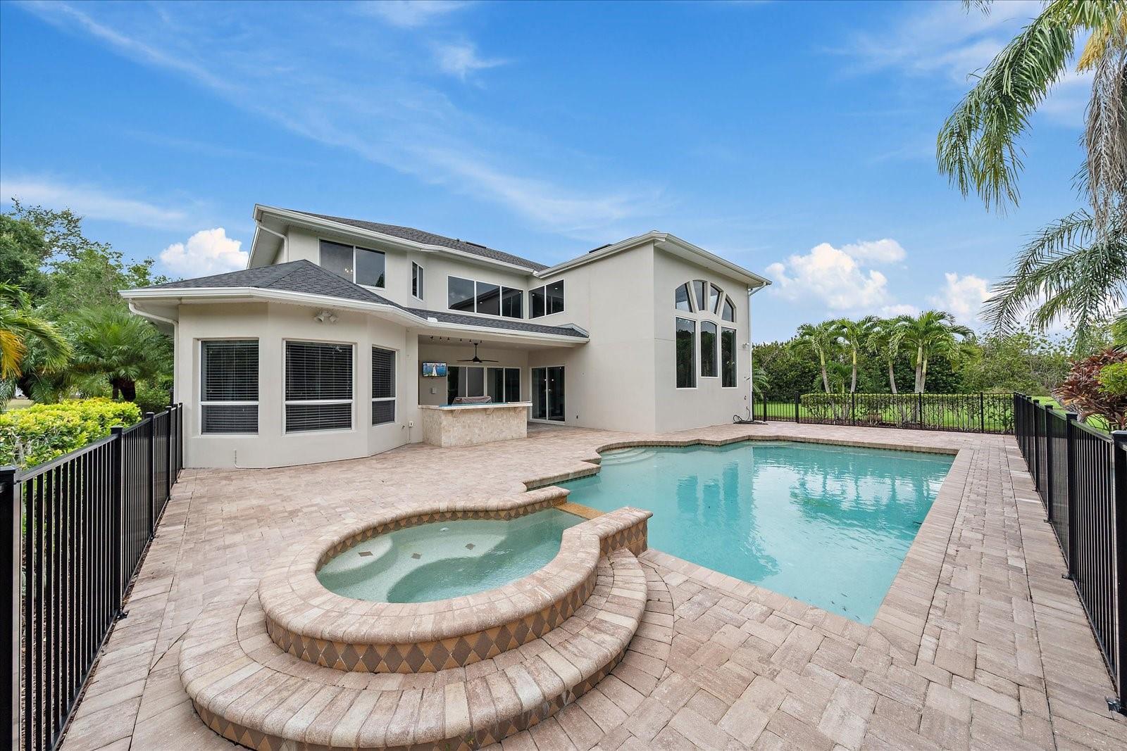 WOW—This One’s a Showstopper! SIMPLY STUNNING & FULL OF STYLE! This COMPLETELY REMODELED home sits on almost ¾ acre overlooking the 10th hole of the golf course in the Desirable River Club Community-where you’ll enjoy LOW HOA, NO CDD, and “A” Rated Schools! From the brand-new kitchen to the all-new bathrooms, plus a NEW ROOF (2022) and A/C (2020)-all the big stuff is DONE for you. Just move in, unpack, and start living your Florida dream! The first-floor master suite is your retreat, while upstairs you’ll find 4 more bedrooms (3 with their own en-suites and walk-in closets-no fighting over bathrooms here!). The gourmet kitchen flows right into a screened porch that’s perfect for morning coffee or a glass of wine in the evening. Step outside and fall in love with your outdoor oasis: your very own swimming pool and spa, outdoor kitchen, covered hangout areas, even an outdoor shower and pool bath. It’s like having your own private resort in the backyard! Other extras you’ll love: soaring ceilings with arches and custom millwork, a dramatic staircase, plantation shutters, crown molding, a HUGE 3-car garage with storage, and lush landscaping all around. And the location? You’re just minutes to I-75, UTC Mall, and over 180 restaurants within 3 miles, plus only 15 miles to the World-Famous Gulf Beaches. Truly-there’s something for everyone in this beautiful Florida town! This is more than just a home-it’s where style meets comfort, and where every day feels like a vacation!