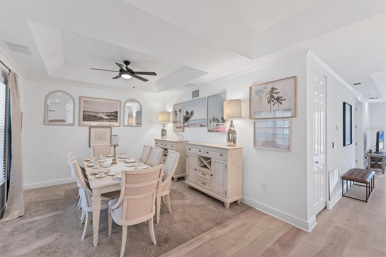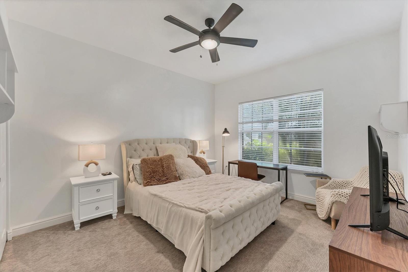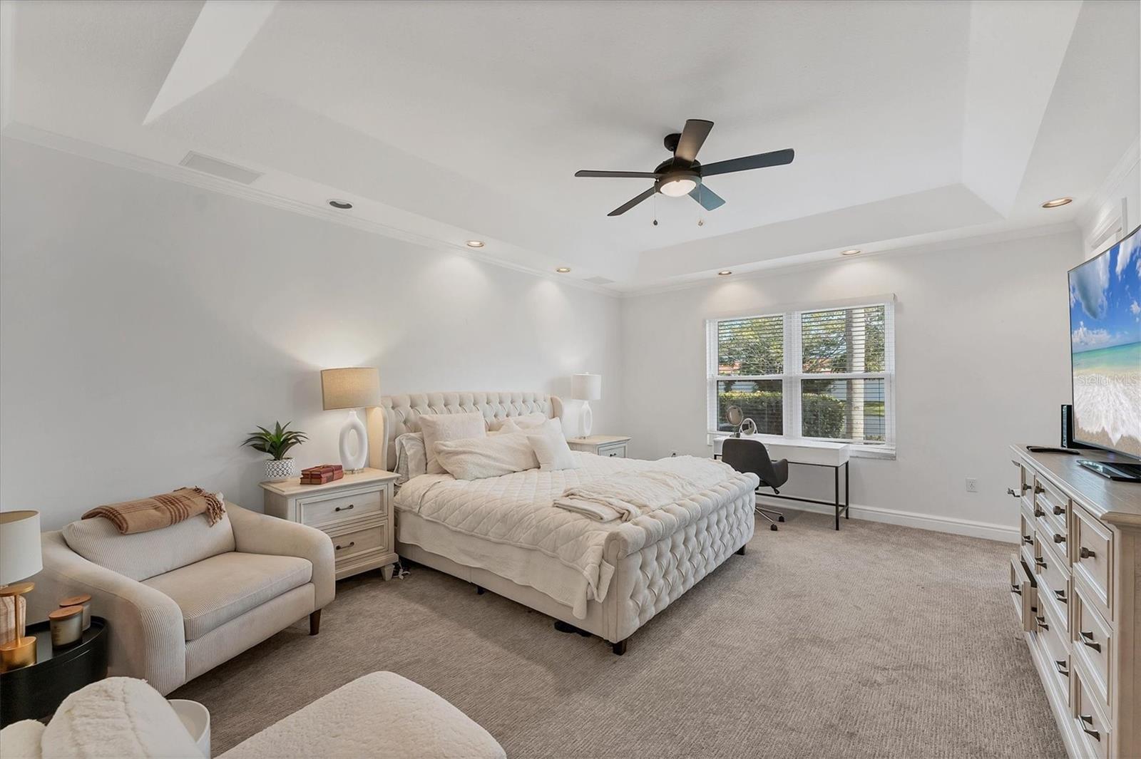 - Ceiling Fans(s), Primary Bedroom Main Floor, Solid Wood Cabinets, Split Bedroom, Tray Ceiling(s), Window Treatments
