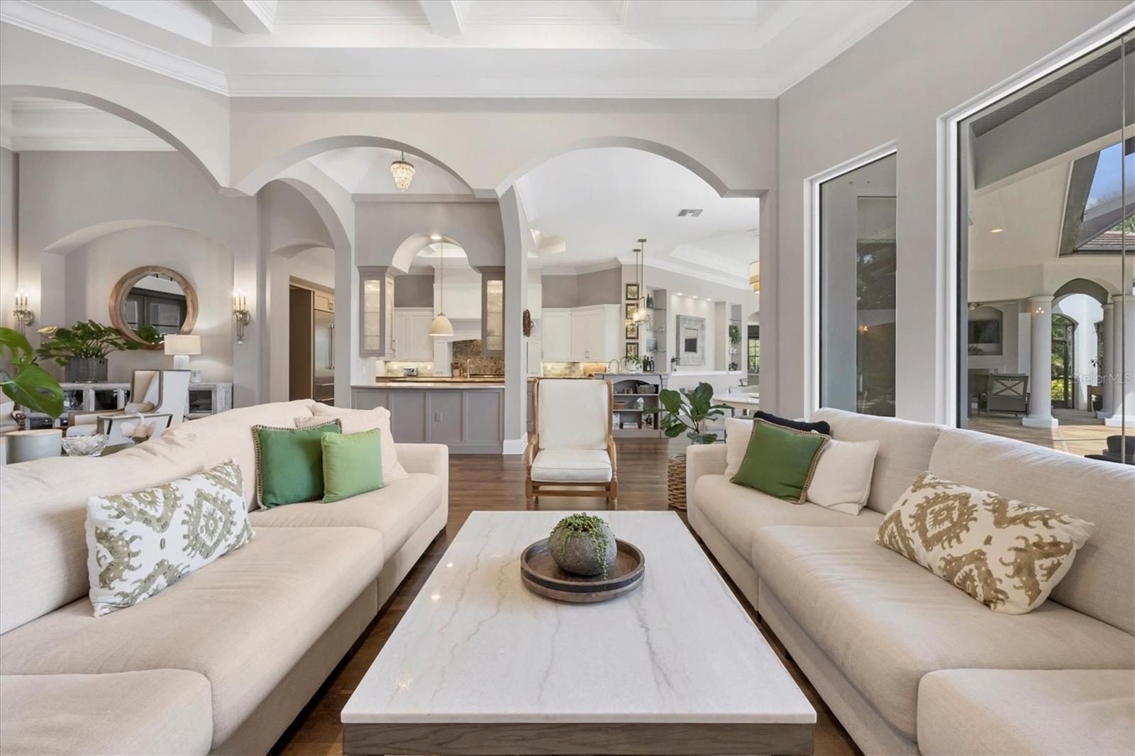 Welcome to 8009 Bounty Lane. A masterfully designed estate offering 4,484 square feet of refined living space, ideally positioned in one of Bradenton’s prestigious gated communities. This three-bedroom, 3.5-bath residence embodies a seamless blend of elegance, comfort and modern function, enhanced by a private pool, whole-house generator, and carefully selected upgrades throughout. From the moment you step through the grand entryway, soaring ceilings and expansive living areas set the tone for timeless sophistication. Architectural details and thoughtful finishes add warmth and character, while large windows bathe the home in natural light. The open floor plan encourages effortless flow, making it equally inviting for quiet relaxation or lively gatherings. At the heart of the home lies a chef’s kitchen designed to impress. Outfitted with premium appliances, custom cabinetry, a generous center island, and open sightlines to the main living and dining spaces, this kitchen is ideal for casual meals and upscale entertaining. The expansive primary suite serves as a private retreat, complete with a sitting area, spa-inspired bath, oversized walk-in shower, soaking tub, dual vanities, and a custom-designed walk-in closet. Two additional guest suites—each with its private bath—provide unmatched comfort and privacy for family and friends. Outdoor living is elevated to new heights with a spacious screened lanai, sparkling pool, and multiple lounging and dining areas. A fully fenced portion of the yard offers a secure haven for pets, while the whole-house generator ensures uninterrupted comfort year-round. Life at 8009 Bounty Lane extends well beyond the walls of the home. Residents of this sought-after community enjoy resort-style amenities including a beautifully appointed clubhouse, full fitness center, sauna, on-site restaurant, scenic parks, a basketball court, dog park, and a stunning resort-style pool, all within a secure, gated setting. Ideally just minutes from Lakewood Ranch, world-class golf courses, fine dining, boutique shopping, and the sugar-sand beaches of Florida’s Gulf Coast, this residence combines luxury living with everyday convenience. 8009 Bounty Lane is more than a home—it’s a lifestyle. A rare opportunity to own a residence where elegance, privacy and location converge in harmony.