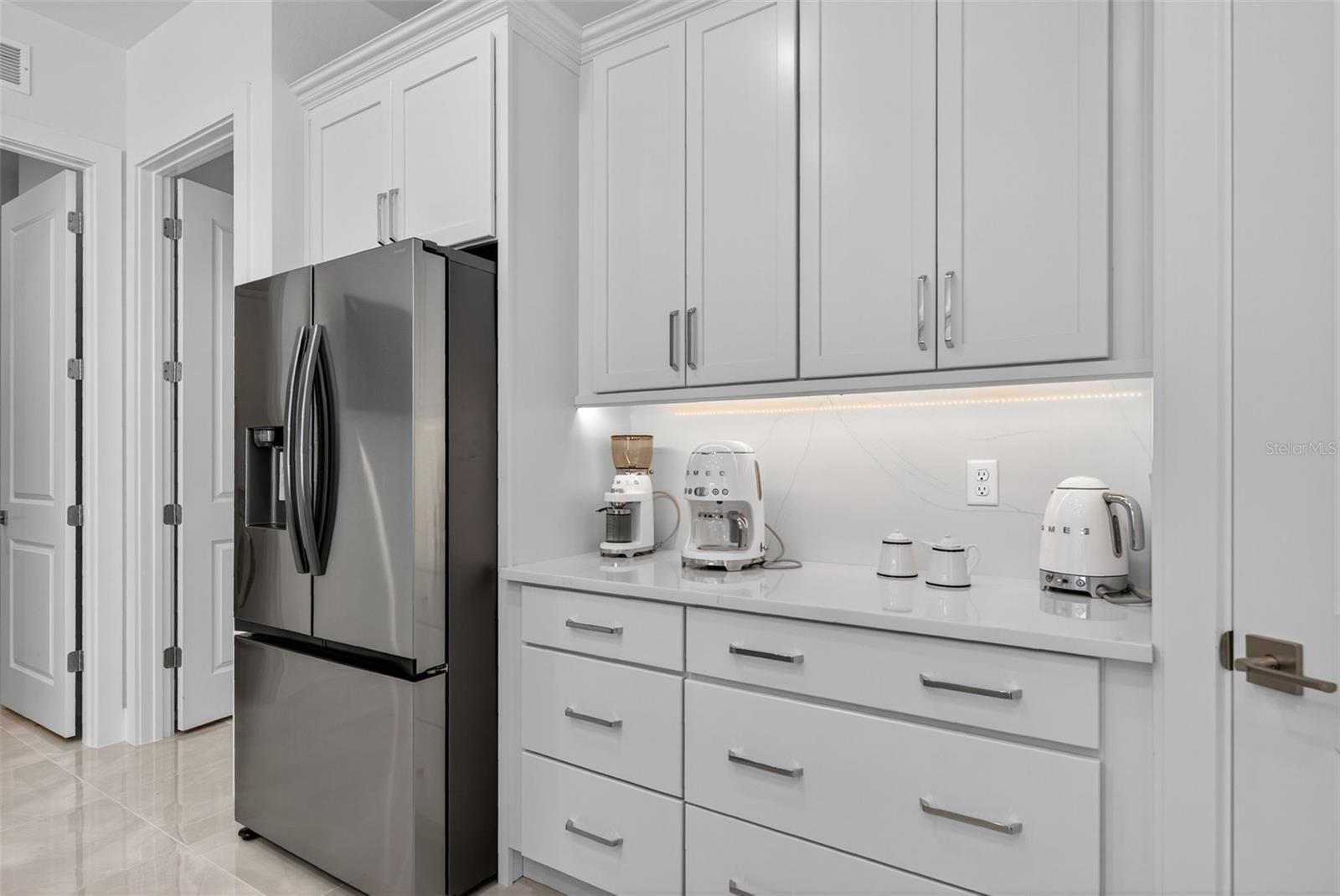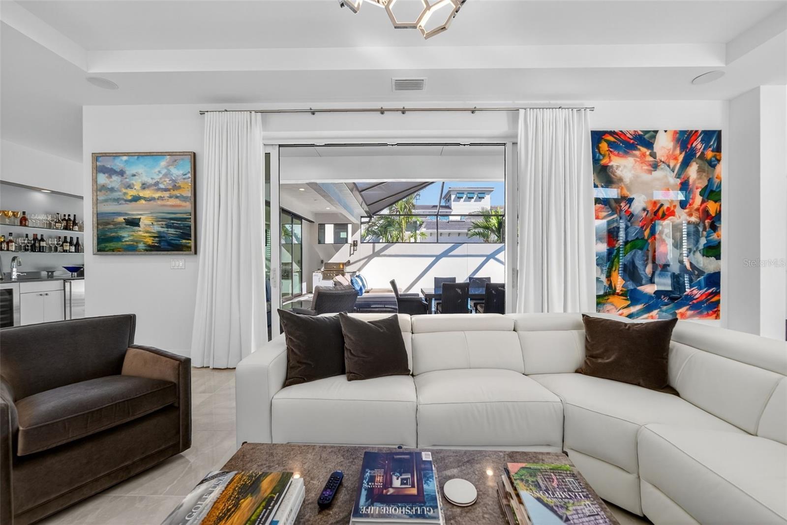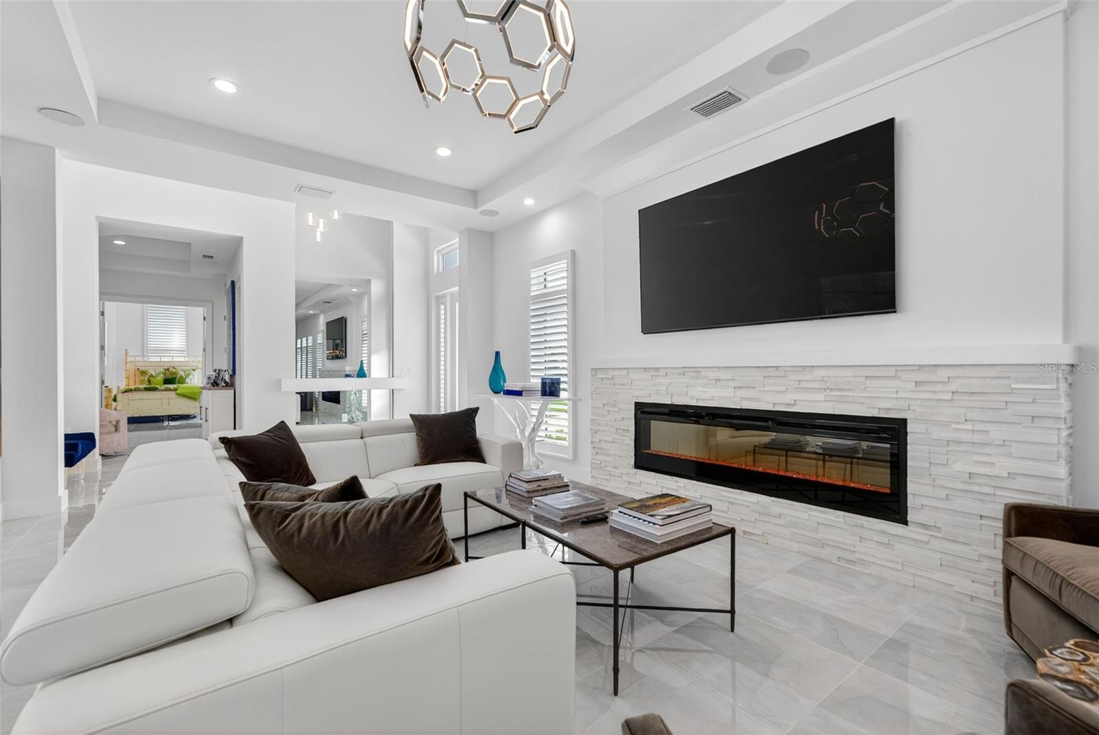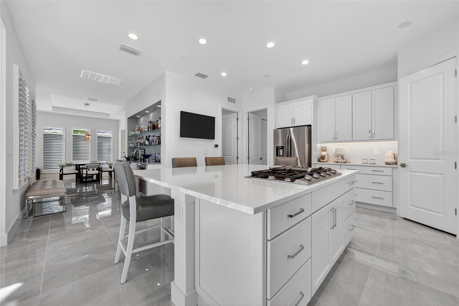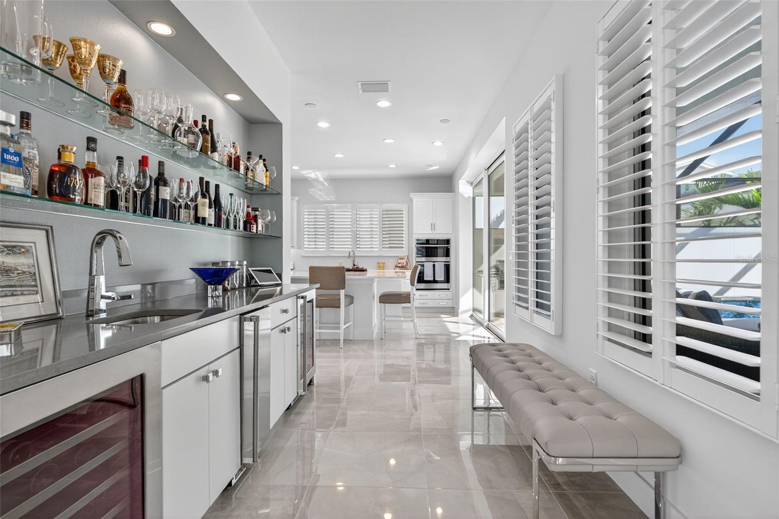 Under contract-accepting backup offers. OWNER RELOCATING! Step behind the gates of Aqua Lagoon, Bradenton’s premier waterfront community celebrated by the Parade of Homes and home to a 4-acre crystalline lagoon and private beach. This extremely popular, beautifully built, one-story Cat Claw model (which is no longer available in new phases) offers a rare opportunity to own a thoughtfully designed home that blends modern coastal elegance with relaxed Florida living. With 3 bedrooms, 3 bathrooms, and 2,700 sq. ft. of living space, the single-level layout is both spacious and effortless, perfect for everyday comfort and entertaining. Set on a premium lot, the home features an oversized caged pool, spa, and courtyard that create a private outdoor oasis not found in newer phases of the development with smaller lots. Inside, soaring ceilings, wide sliding doors, marble floors, designer lighting, and plantation shutters fill the home with light and airiness. The open floor plan includes formal living and dining areas, plus a stylish wet bar with beverage fridge and custom shelving. The chef’s kitchen is appointed with high-end stainless appliances, built-in oven and microwave, gas cooktop, walk-in pantry, and a generous island. The primary suite offers a serene retreat with wood accents, patio access, a spa-inspired bath with dual vanities, walk-in shower, soaking tub, and custom closet. Two additional bedrooms, including a flexible office/den option, provide comfort and versatility. The 2-car garage with alley access adds built-in cabinetry and overhead storage. At Aqua Lagoon, the sparkling 4-acre lagoon pool and private beach are the centerpiece of community life, providing a resort-style atmosphere just minutes from Anna Maria Island, IMG Academy, SRQ Airport, UTC, and St. Armand’s Circle. Skip the wait for new construction — your move-in ready, one-story Florida paradise is here.