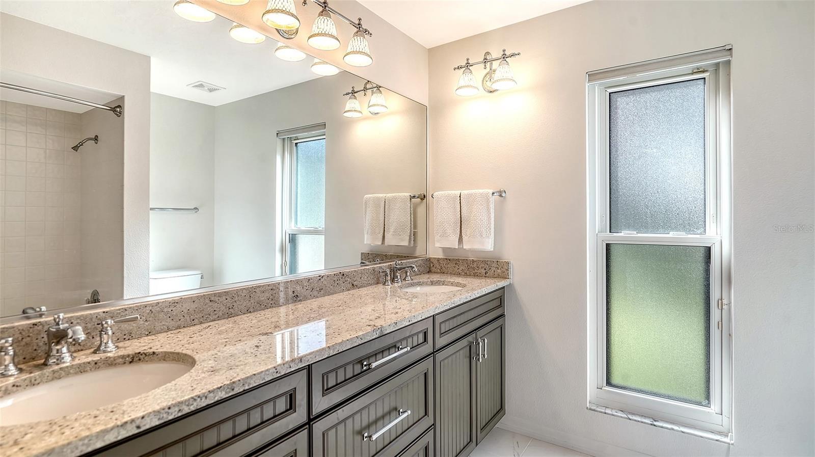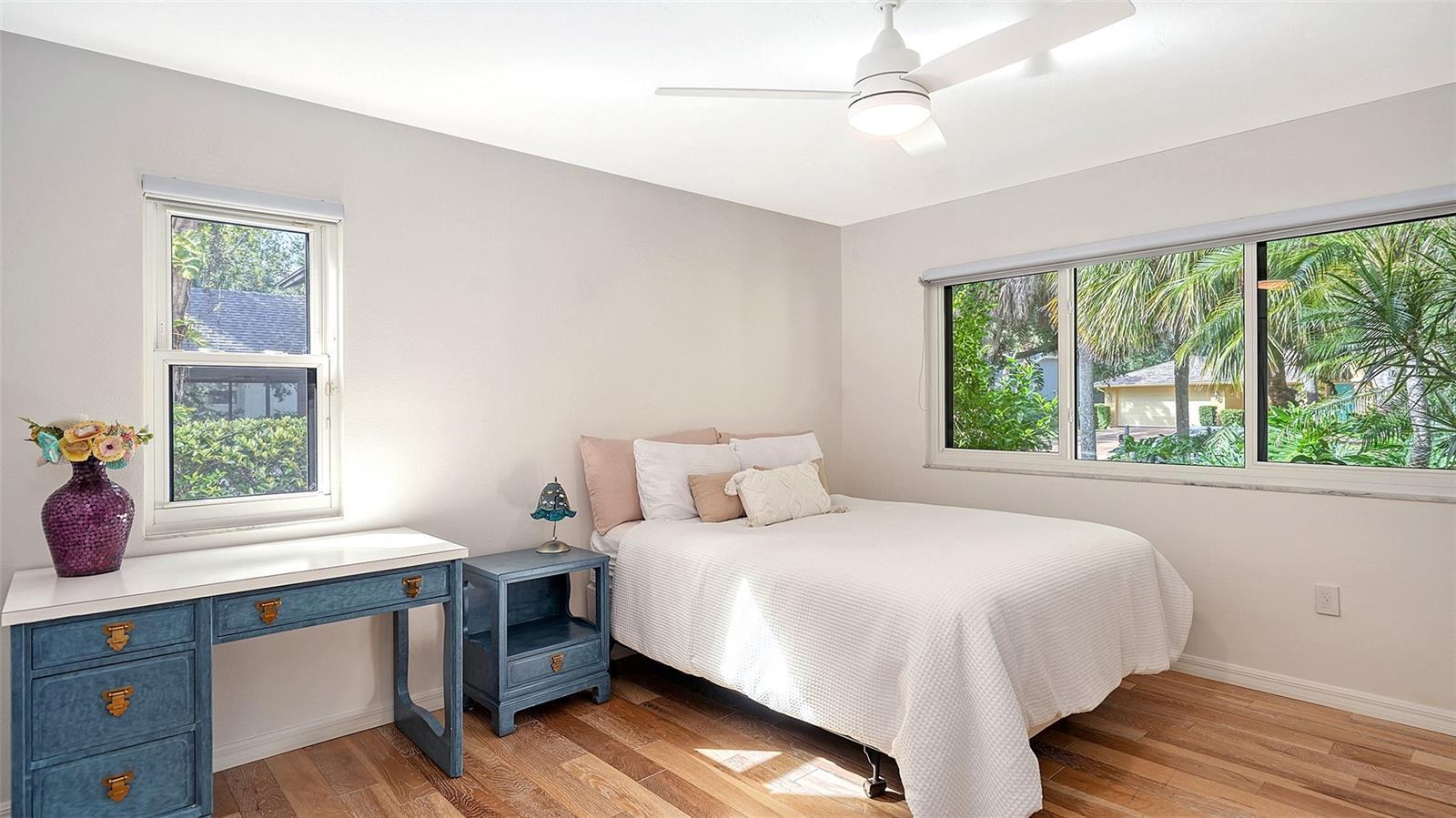 Under contract-accepting backup offers. Set on an elevated and oversized lot gracefully shaded by mature oak trees, this inviting 5-bedroom plus office, 3.5-bath pool home exudes warmth, timeless appeal, and evident pride of ownership, with every detail reflecting thoughtful care and attention. Offering nearly 3,000 square feet of comfortable living space, this impeccably maintained residence welcomes you with a charming double-door entry that opens to bright, airy interiors filled with natural light and a sense of openness enhanced by soaring ceilings and a smart, split-bedroom floor plan. The home’s interior design balances comfort and practicality, featuring engineered hardwood floors in all bedrooms, fresh interior paint, and custom built-ins that add both character and function. The spacious living area with Eurotech custom built-in provides plenty of room for gatherings, while the large kitchen offers stone countertops, Eurotech high gloss enamel cabinetry, a breakfast nook overlooking the pool and easy flow to the dining room and main living spaces—ideal for family life or entertaining. An office with handsome built-in offers a quiet place to work or study. The primary suite serves as a peaceful retreat with 2023 engineered hardwood floors, spacious walk-in closet and a beautifully renovated 2023 primary bath featuring a glass-enclosed shower, freestanding soaking tub, quartzite-topped double vanity, skylight and designer porcelain tile—bright, fresh, and spa-like. The guest bedrooms are all generously sized, with large closets and excellent natural light. One of the full baths conveniently doubles as a pool bath for easy access from the outdoor areas. Practical features add peace of mind and long-term value, including 2 HVAC systems, Ring doorbell camera, whole house water softener, kitchen reverse osmosis system, 2023 exterior paint, and a full-floor garage attic for exceptional storage. The laundry room is both functional and attractive with ample cabinetry and a utility sink. Outdoors, the private pool area is surrounded by lush tropical landscaping, creating a peaceful backdrop for relaxing, exercising, or dining al fresco. Multiple screened-in areas provide flexible space for outdoor enjoyment year-round including a greenhouse or separate play/exercise area. Located in the sought-after community of The Lakes Estates, residents enjoy two heated pools and spas, Har-Tru tennis courts, a playground, half-court basketball, fitness center, scenic walking paths, and a lakeside fishing pier. Just minutes from excellent schools, shopping, dining, and Sarasota’s world-famous beaches, this home offers the perfect blend of space, comfort, and everyday ease in a beautiful, established neighborhood.