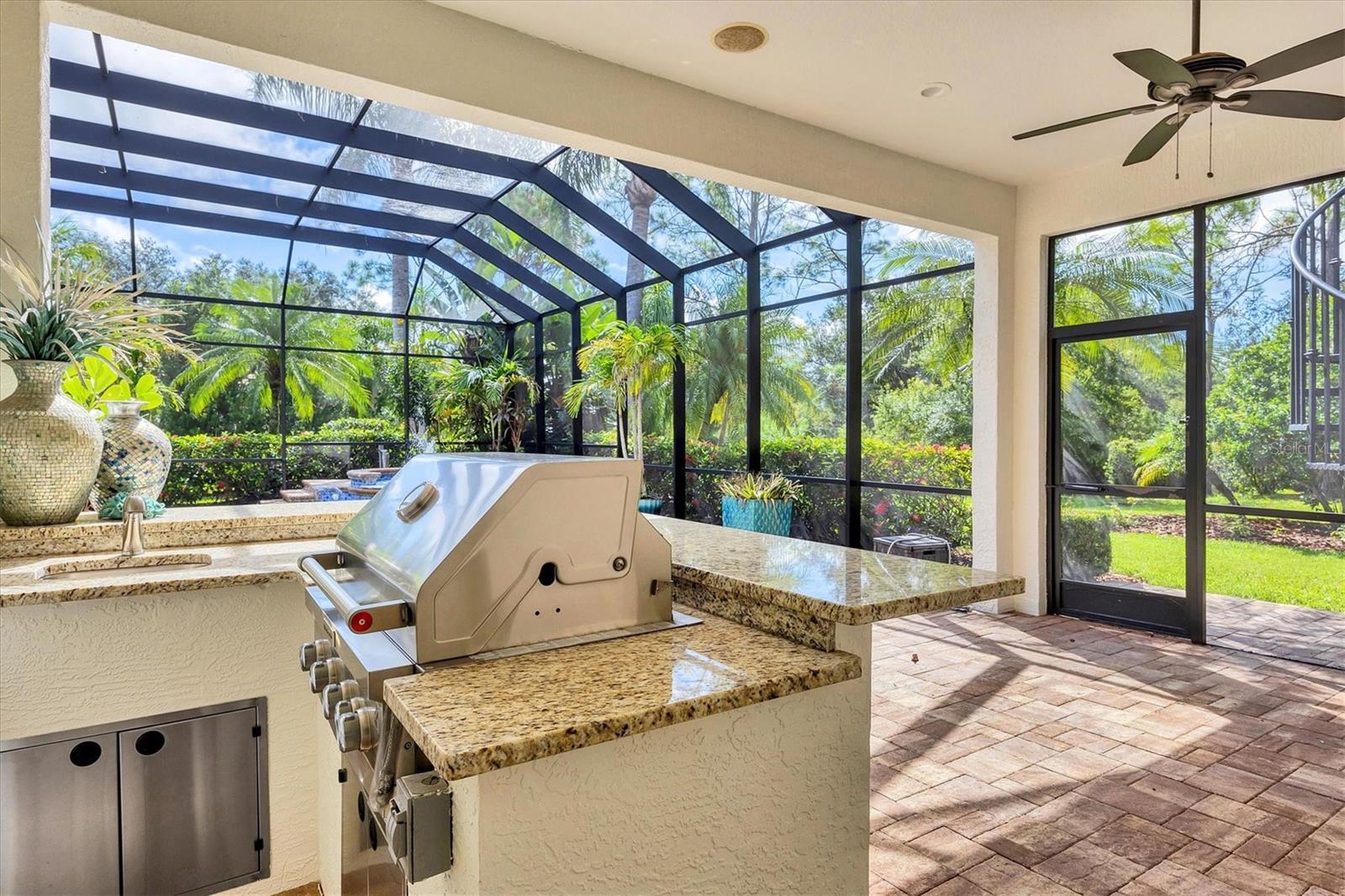 - Balcony, French Doors, Lighting, Outdoor Grill, Outdoor Kitchen, Outdoor Shower, Rain Gutters, Storage