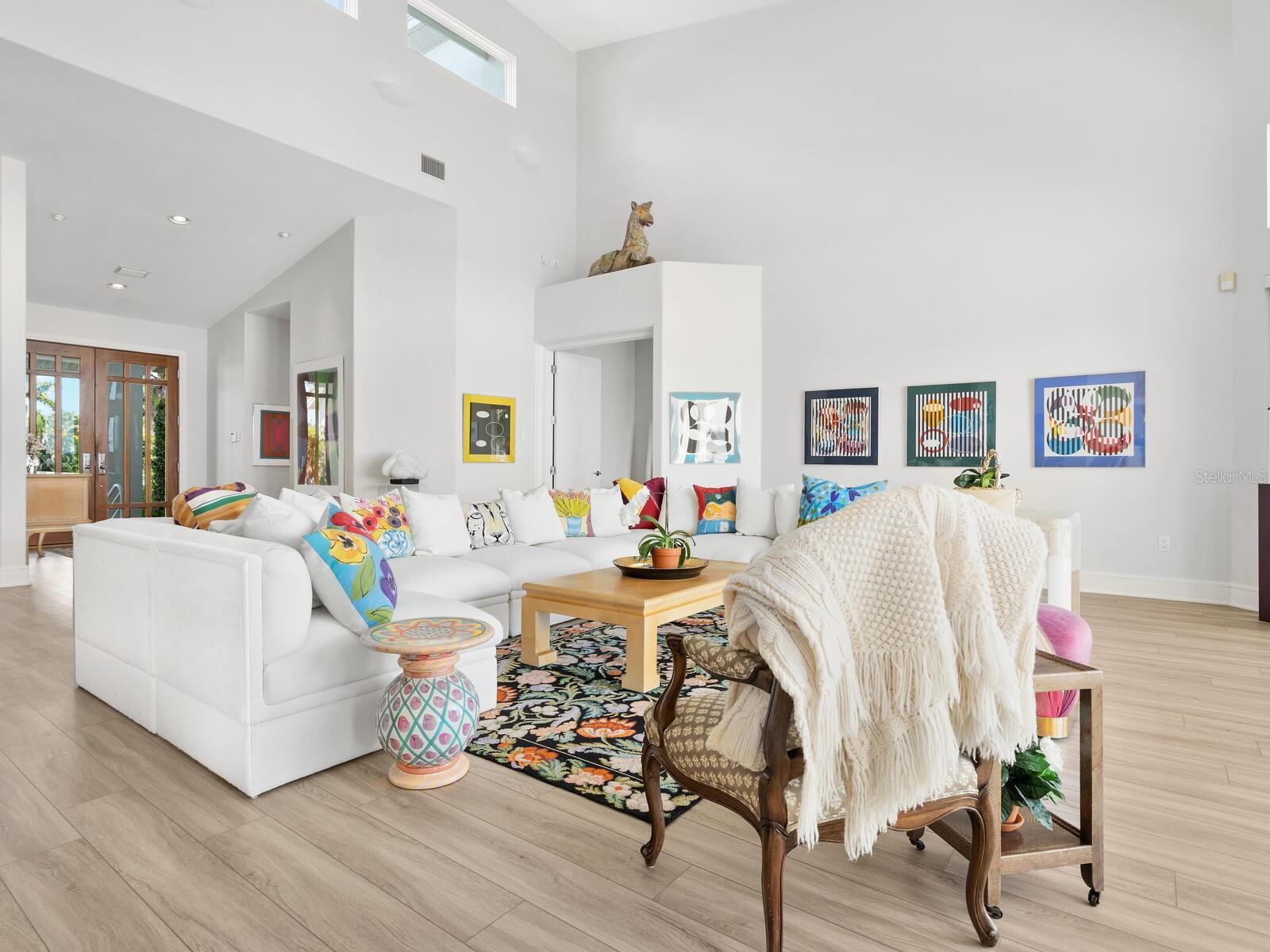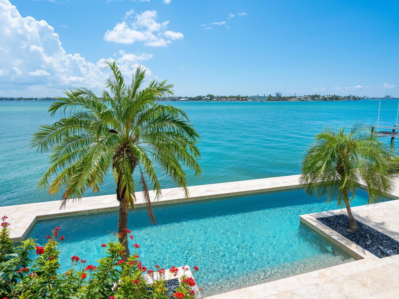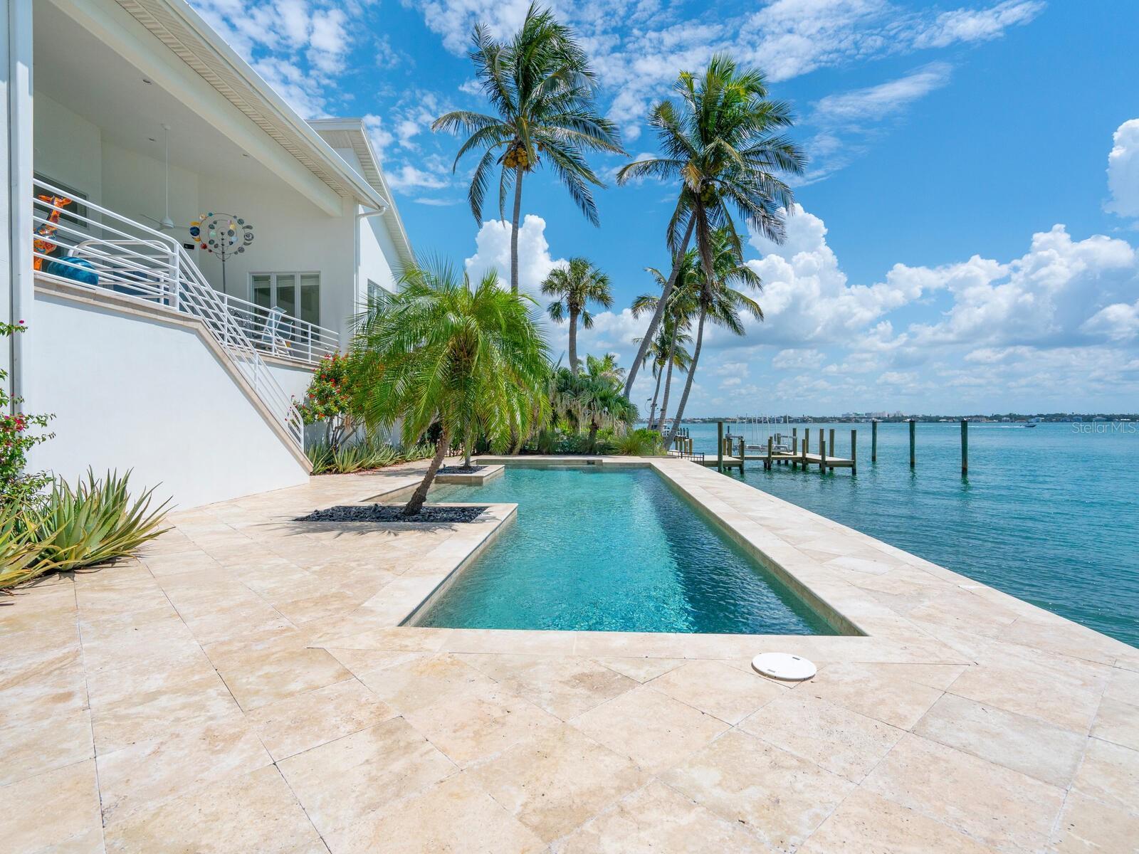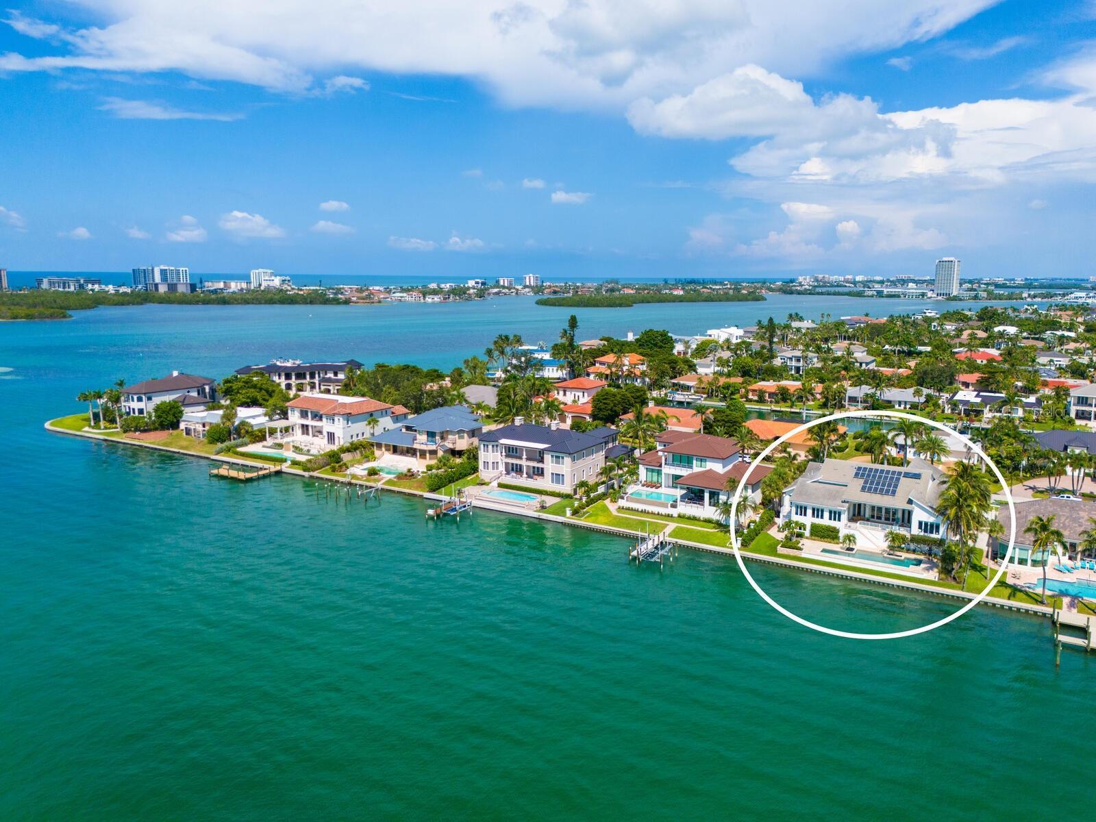 Under contract-accepting backup offers. Set on the exclusive southern tip of Bird Key, this exceptional waterfront estate offers breathtaking, unobstructed views of Sarasota Bay, unmatched privacy, and a level of craftsmanship rarely seen. Designed and built by the owners with longevity and quality in mind, the home stands as a testament to timeless architecture and enduring construction. Elevated above floodplain with a ground level at 9.5 feet and a main living level at 16.1 feet, this residence spans 4,618 square feet under air on the main level, with nearly 10,000 total square feet of secure space, including a nine-car garage with EV chargers, an elevator, and an expansive ground-floor flex room that must be seen to be believed. Key features include four en-suite bedrooms, plus a bonus room with closet, ideal as a fifth bedroom or office. Soaring 22-foot ceilings and a light-filled open/split floor plan. Concrete block construction on 71 pilings driven 37 feet into bedrock. Impact-rated windows and doors, concrete tile roof and whole-house generator. Chef’s kitchen with water views, Thermador and Sub-Zero appliances, walk-in pantry, R/O system and water filtration throughout. Resort-style pool (recently renovated) overlooking Sarasota Bay, ready for your custom dock and boat lift. Striking entry with circular paver drive and beautiful tropical landscaping framing the property. With classic modern architecture, the interiors serve as a canvas for your personal design vision. Bird Key lifestyle where residents enjoy the option to join the Bird Key Yacht Club, offering boating, waterfront dining, tennis, fitness facilities, and a vibrant social calendar—from wine tastings and intellectual series to holiday celebrations and athletic events. Bird Key is positioned between the cultural energy of downtown Sarasota and the boutique shops and restaurants of St. Armands Circle, with Lido Beach just minutes away. If you're ready to have it all—privacy, luxury, location and waterfront living—schedule your private showing of this Bird Key gem today.