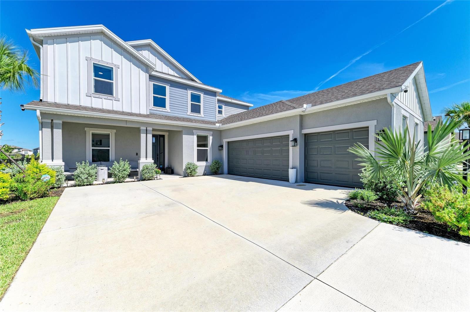 One or more photo(s) has been virtually staged. Welcome home to this ABSOLUTELY STUNNING dream home quietly nestled on a breathtaking lake view in the heart of Lakewood Ranch. One of the most sought after models in the area, this Sand Key offers some amazing features and upgrades!!! Step into luxury living in this spacious 5-bedroom, 4.5-bathroom home located in the desirable Park East at Azario, Lakewood Ranch. This stunning two-story residence features the primary bedroom conveniently situated on the ground floor, offering a private retreat. The home boasts elegant luxury vinyl flooring throughout, creating a seamless flow and modern aesthetic. This modern sleek home has been upgraded from head to toe. Featuring a gorgeous chefs gourmet kitchen with beautiful stone countertops and matte black appliances. Enjoy breathtaking views of the lake as you enjoy your morning coffee out in your extended lanai. No expense spared with this model home! Whole house water filtration provides you with some of the cleanest water on the planet!! A courtyard driveway is wrapped around an oversized 3-car garage and complete with a custom epoxy floor that's sure to make any car enthusiast want this one!!. Ceiling fans throughout, smart blinds and pre wired ethernet make this one of the smartest homes on the block!! As a resident of the Number 1 best-selling multigenerational community in the country, you will have access to a wealth of incredible amenities, including a refreshing pool & spa, sand volleyball court, basketball court, a spacious dog park, and a playground. Spend your weekends on the corn hole lawn or the sports field. Lakewood Ranch is perfectly situated near a variety of world-class shopping, dining, and entertainment options. You will be just moments away from Lakewood Main Street, University Town Center, and the vibrant downtown Sarasota. With easy access to I-75, beautiful Gulf Coast beaches, top-rated schools, and medical facilities, this home offers the perfect blend of luxury, convenience, and community. Don't miss the opportunity to own this exceptional residence that truly embodies the best of Florida living! One or more photos virtually staged for ideas.