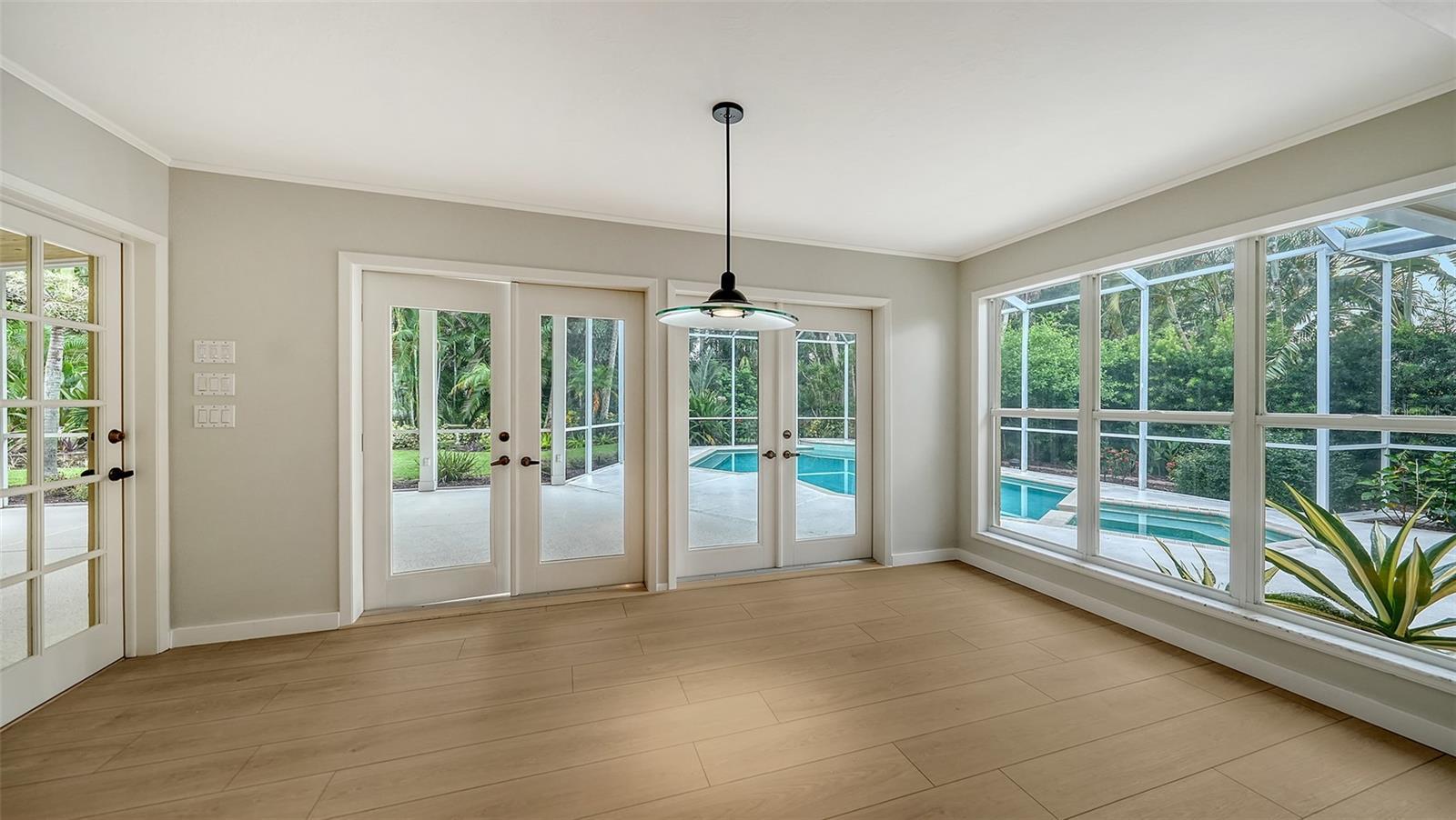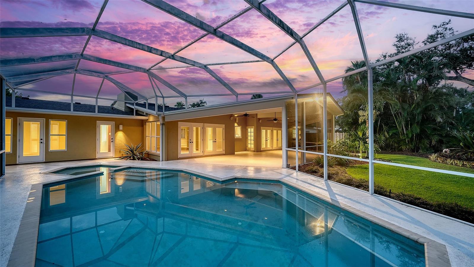Under contract-accepting backup offers. One or more photo(s) has been virtually staged. This expansive 3 bedroom, 3 bathroom home with a heated pool & spa is nestled on a quiet cul-de-sac off Bay Shore Rd in the neighborhood of Indian Beach - Sapphire Shores. This european-style home offers a lot of natural light, a wall of French doors to the stunning lanai with a vaulted tongue-and-groove ceiling, overlooking the beautiful backyard and the heated pool & spa area. A bonus room with its own bath allows multiple use options, family room, home office, gym or another bedroom. Even the garage has been enlarged and offers space for a workshop and/or up to 2-3 cars. The roof was just replaced in 2025, the flooring is brand new and the primary bath is updated as well. Overall a well maintained property with a great curb appeal. Enjoy the lifestyle of this area with easy access to downtown Sarasota, dining, shopping and waterfront activities. Just 1 mile south of the Ringling Museum.