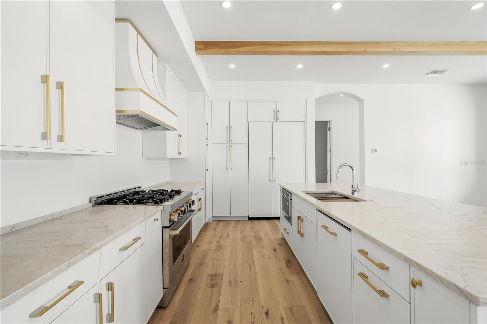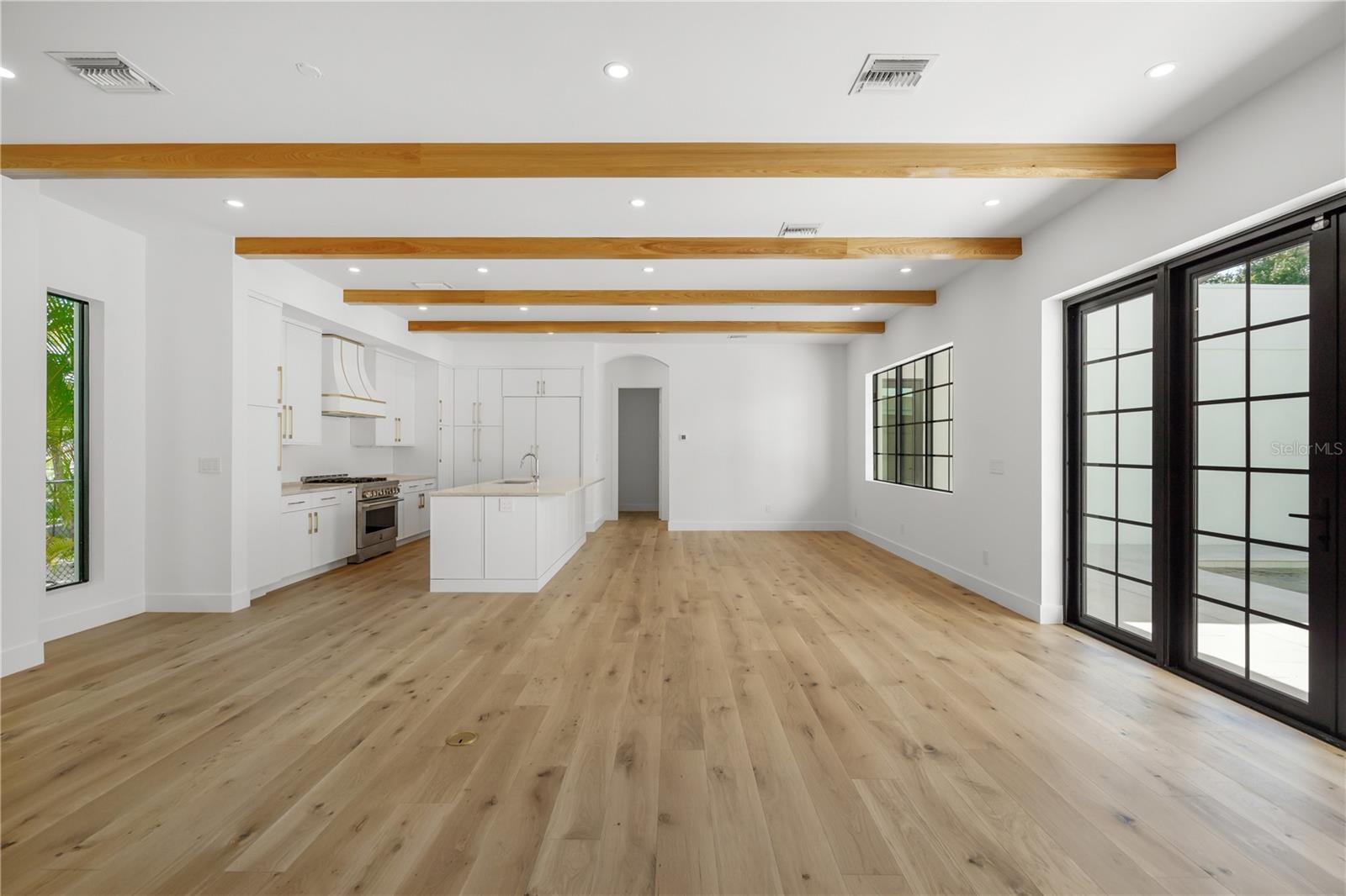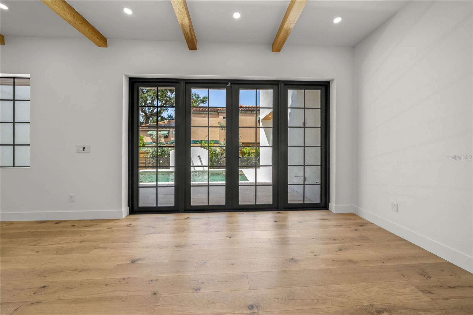 Welcome to Granada, a highly sought-after Sarasota neighborhood known for its mature tree-lined streets, character-rich architecture, and close proximity to the city’s best dining, shopping and beaches. This brand-new construction home is a stunning blend of Mediterranean and Moorish-inspired design, featuring bright white exteriors, graceful arches, and timeless curb appeal. Step inside to find warm wood floors, abundant natural light, and carefully curated designer finishes throughout. The gourmet kitchen boasts a built-in panel-front refrigerator, gas range, premium JennAir appliances, and Quartzite countertops—perfect for both everyday living and entertaining. The primary suite is conveniently located on the main level, complete with French doors opening to the stunning courtyard pool, creating a serene indoor-outdoor retreat. A versatile den or office is also located on the main floor. Upstairs, discover four spacious bedrooms and a generous bonus room that can serve as a media room, playroom, or family room. With 3,850 square feet of living space, five bedrooms, and four and a half baths, this all-block, two-story home was thoughtfully designed for modern comfort and flexibility—offering the ultimate Sarasota lifestyle.