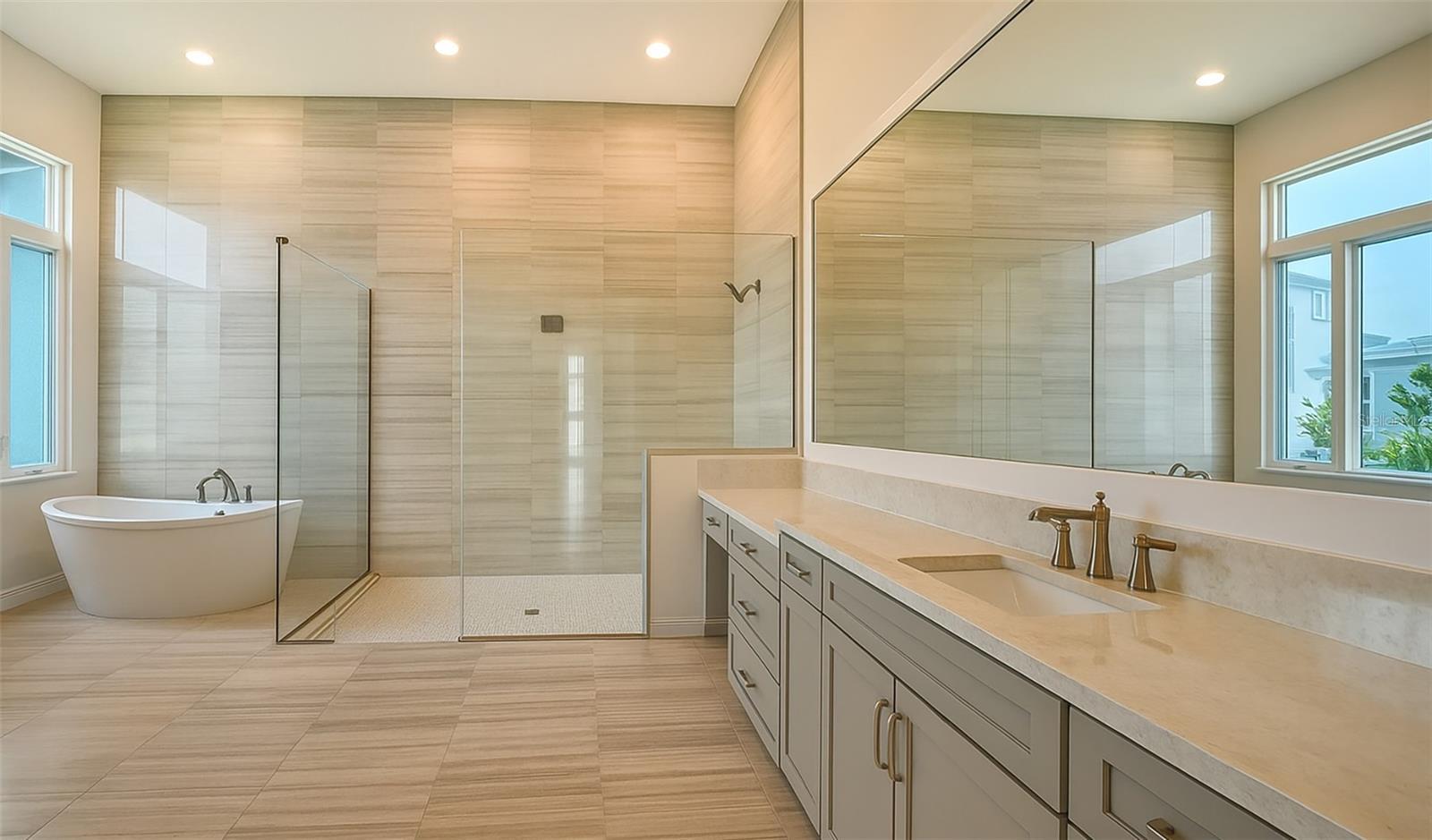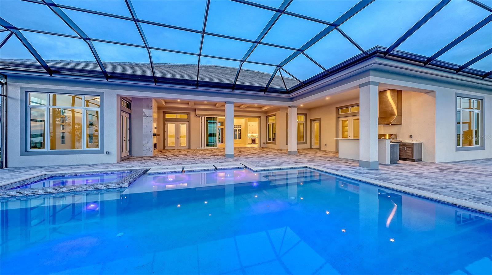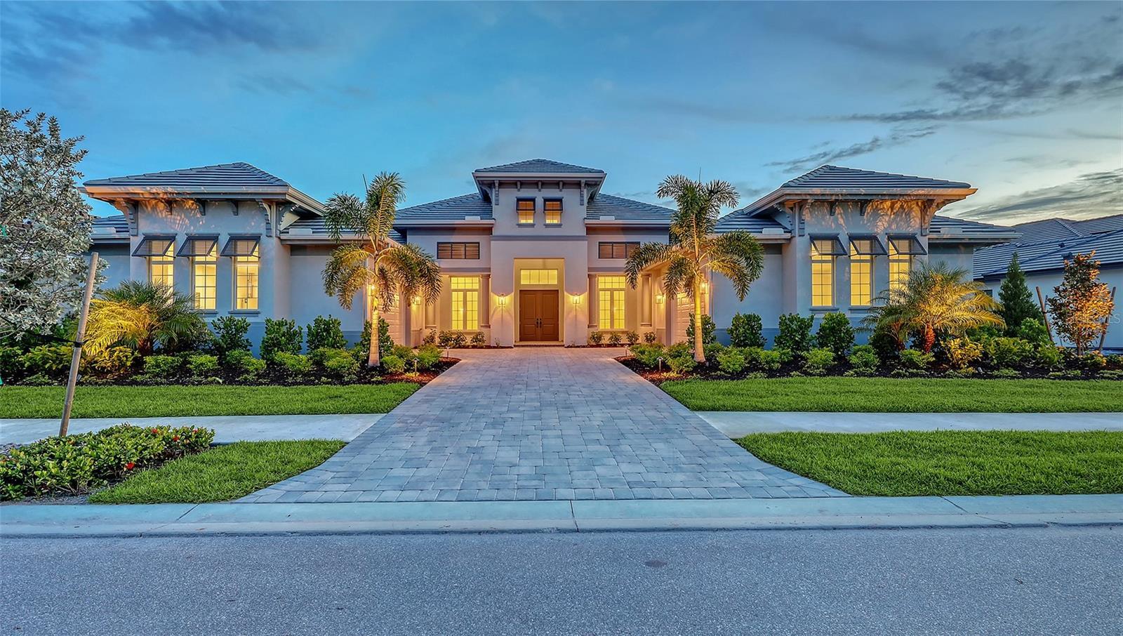 Under contract-accepting backup offers. Enjoy spectacular ‘Big Lake’ Views from this Brand-New Luxury Home in Wild Blue at Waterside. Step into refined elegance with this expansive, never-lived-in home—just one month new—boasting over 4,200 square feet of luxury living on a rarely available oversized homesite. Perfectly positioned to capture panoramic lake views, this 4-bedroom/4.5 Bath home includes a dedicated office and an exercise room, all designed around a wide-open floorplan that effortlessly blends indoor and outdoor living. From the moment you arrive, the home’s impressive curb appeal stands out, featuring a paver driveway, a split 4-car garage, and a grand foyer entry with hardwood flooring that opens to a soaring decorative recessed ceiling with a stunning lakeview. Inside, custom architectural details abound, including a spectacular floor-to-ceiling ledgestone wall with a linear fireplace and custom built-in shelving and cabinets with underlighting that anchors the great room in modern sophistication. The gourmet kitchen is a chef’s dream, featuring a striking combination of stained and painted cabinetry, Skara Brae quartz countertops, a massive island, and top-of-the-line professional paneled appliances. Designed for both everyday comfort and sophisticated entertaining, the expansive great room opens directly to your private resort-style oasis with pocket sliding glass doors. The primary suite occupies its own private wing with two custom walk-in closets and a spa-like bathroom, with split vanities, and offering ultimate luxury and convenience. Step outside to your personal retreat—an entertainer’s paradise, complete with a luxurious pool and spa with sun shelf, a shaded covered lanai with a linear fireplace, and a fully outfitted summer kitchen ideal for alfresco dining and gatherings. Wild Blue delivers an unparalleled lifestyle in the heart of Lakewood Ranch, offering a rich array of world-class amenities. Outdoor enthusiasts will love the scenic walking trails, yoga lawn, and putting green, while sports lovers can take full advantage of the Midway Sports Complex—featuring eight pickleball courts, six tennis courts, and a professional-grade pro shop. The community also includes a dog park and playground, catering to every member of the family. The resort-style clubhouse is currently under construction and will feature concierge service, a private theater, state-of-the-art fitness studio, golf simulator, billiards room, and an expansive pool complex with not one but two resort-style pools. A full-service restaurant and patio bar are coming soon, elevating the social experience even further. Wild Blue is ideally located near The Mall at UTC, Lakewood Ranch Main Street, Waterside Place, and some of the area's top dining and shopping destinations, Wild Blue represents the pinnacle of luxury living in this Lakewood Ranch multi-generational community.