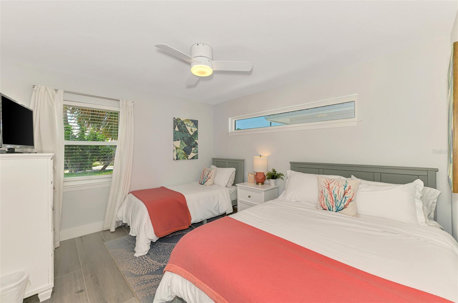 This is a short term rental. Listing reflects peak season rate. Available peak season months: January 2026, February 2026, April 2026. Welcome to The Blue Luna, a serene stand-alone villa nestled in the tropical paradise of Polynesian Gardens on Siesta Key. This two-bedroom, two-bathroom home has been thoughtfully decorated with a calming, coastal blue palette that reflects the soft light of the moon on the water. The spacious living area is bathed in natural light, inviting you to relax and unwind. The primary bedroom features a king-size bed and an elegant ensuite bathroom, offering a private haven for rest. The second bedroom, with its twin-size and double-size bed, is perfect for families or friends ready for a peaceful retreat. Start your day by watching dolphins play in the water as the sun rises, then take a refreshing dip in the nearby heated pool. For a more adventurous afternoon, cast a line from the community fishing pier for the catch of the day. As evening approaches, prepare to be enchanted by the breathtaking Siesta Key sunsets and the rhythmic sounds of the local drum circle celebration—a truly magical tradition. Located near vibrant restaurants, bars, and attractions, you'll find plenty to do without ever needing a car. At The Blue Luna, you can relish the stunning sunsets, lose yourself in the rhythmic beat of the drum circle, or simply enjoy a quiet moment by the pool. Book your stay today and claim your slice of paradise where the magic of the moon meets the tranquility of the sea.