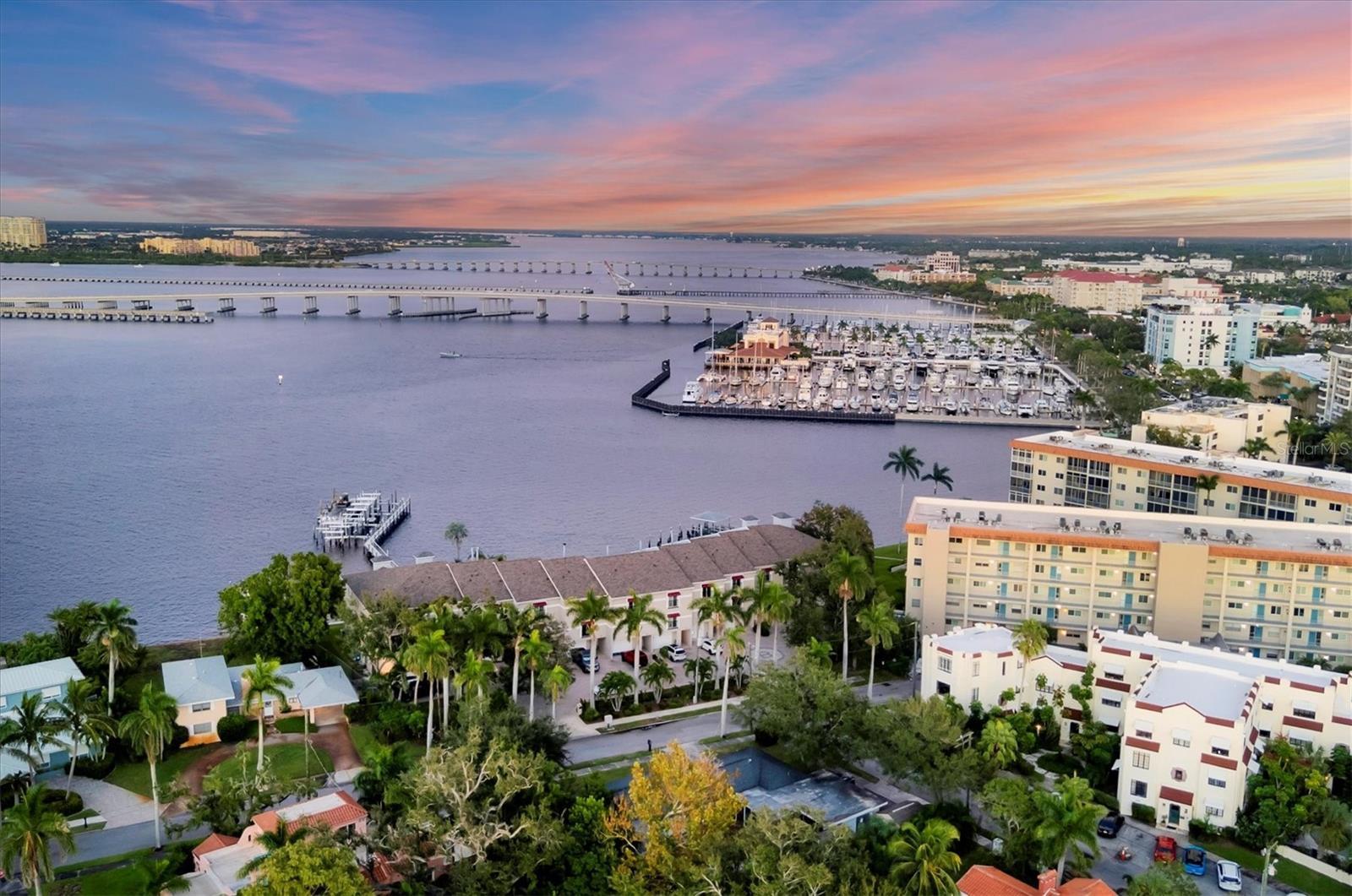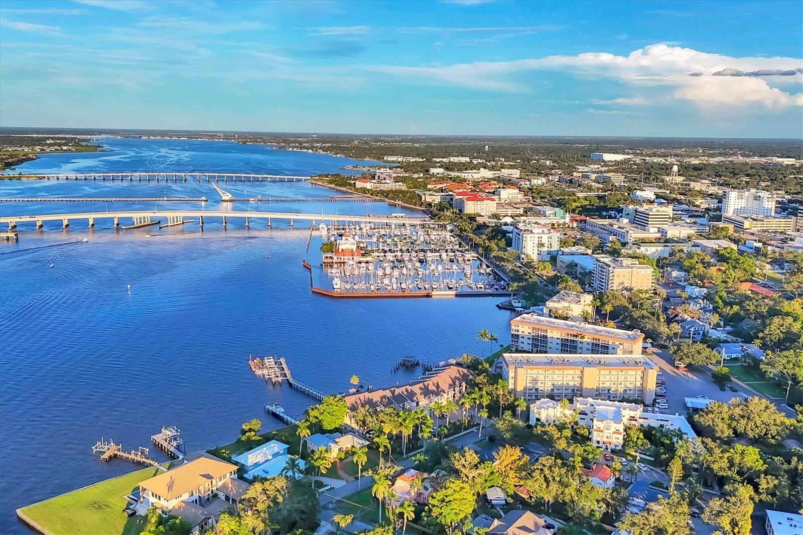 Breathtaking views from this stunning 3 bedroom, 3 bath end unit townhome that comes with your own deeded boat slip with lift that can accommodate up to 12,500 lbs. An exclusive opportunity to own in this rarely available community of 12 units in the downtown hideaway community of Point Pleasant, convenient to marina, restaurants, and Riverwalk. This home has been beautifully decorated with a unique sense of style, perfect for entertaining family and friends, and you are sure to enjoy the sunset from either of the two porches overlooking the spectacular Manatee River. The private elevator was replaced in June 2025 making it so easy to access the 3 levels, and the A/C was replaced in July 2025. There are plantation shutters throughout along with the majestic crown molding, surround sound system and more. Safety features include a fire sprinkler system throughout and electric hurricane shutters that operate at the touch of a switch. The 2-car tandem garage has pulleys for storing your kayaks. Once you see this beautiful condo, you will fall in love! Call today to see it for yourself.
