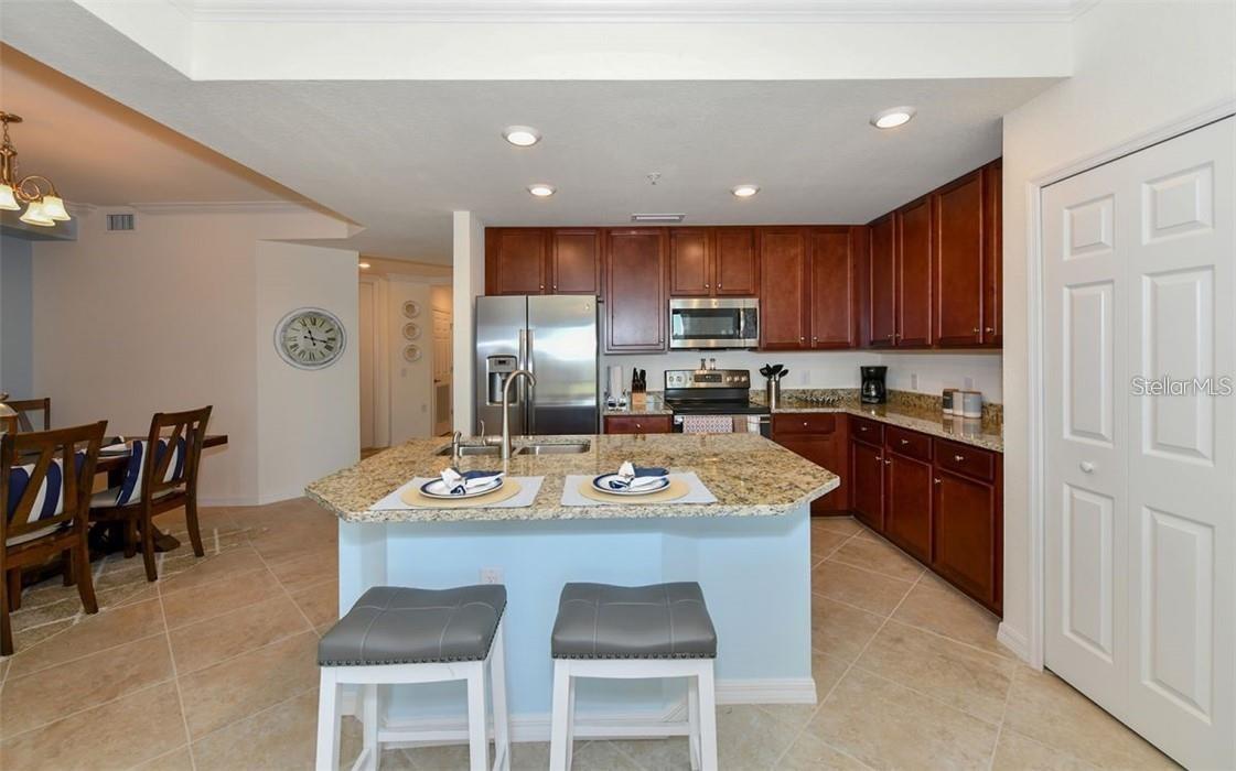 Stunning three-bedroom two-bathroom condo end unit, light, bright and professionally decorated with coastal chic furnishings on the second floor of the sought after golf community of Lakewood National. Enjoy gorgeous views of the golf course as you enter this lovely condo. Plenty of room for the whole family. King bed in master with ensuite bath, queen bed in second bedroom and twin beds in the third bedroom. Just steps to the satellite pool. Enjoy hours of entertainment as you enjoy meals, entertain guests and watch the golfers navigate the new Arnold Palmer designed 36-hole golf course! Enjoy resort style living and state-of-the-art amenities such as: CLUBHOUSE WITH RESTAURANT AND TIKI BAR, FITNESS CENTER, RESORT STYLE SWIMMING POOLS WITH OUTDOOR GRILLE AND POOLSIDE SERVICE, A FULL-SERVICE SPA , TENNIS, PICKLE BALL COURTS AND MORE! Golf Membership transfer available. $65.00 monthly min. expenditure is required at the on-site Tiki Bar/Restaurant (Alcohol Excluded). Easy access to I-75, local shopping and dining, University Parkway, Sarasota Airport and all that Lakewood Ranch has to offer. ALL UTILITIES INCLUDED WITH MONTHLY CAP!