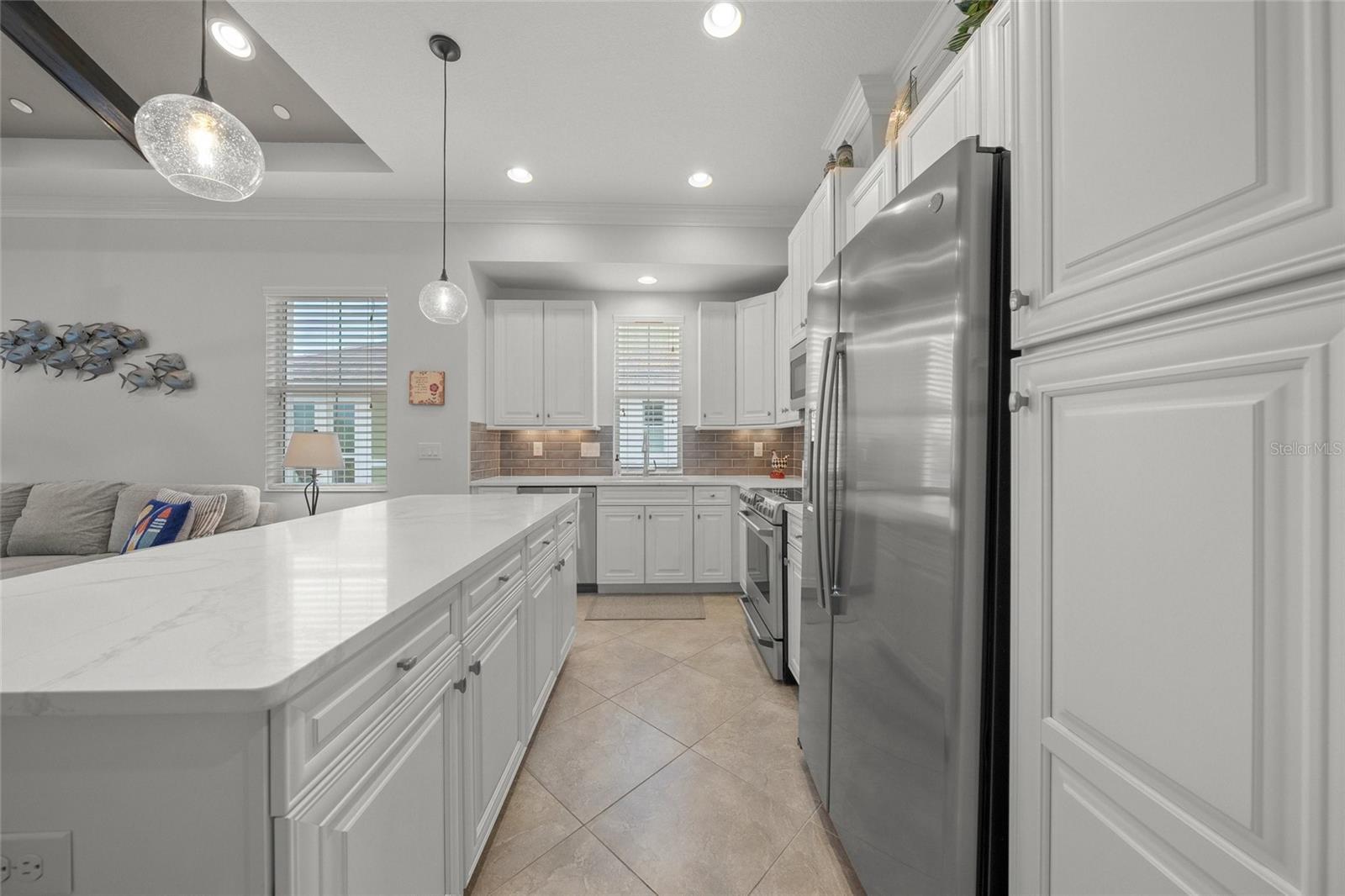Welcome to coastal living at its best on Sapphire Lake Drive in Harbour Isle! This bright, updated home offers full sunset views over Anna Maria Sound and the relaxed vibe of a luxury island retreat. Inside, nearly every surface has been refreshed: new quartz countertops in all bathrooms and the kitchen, new sinks, painted cabinets, fresh accent paint, crown molding throughout, and shiplap ceilings in the master. The kitchen shines with quartz counters, backsplash, new pendant lighting, and newer appliances—including refrigerator (2023) and dishwasher (2024). The guest room features new carpet, while the office was upgraded with a closet and Murphy bed. The dumbwaiter was converted to a private elevator in 2021 for easy access. Enjoy a whole-home Q audio system that can be operated independently in each room, perfect for entertaining or setting the mood throughout the day. Additional highlights include a custom wooden accent wall in the dining room, new lighting, a fully painted interior, and a Tesla-ready garage with built-in storage solutions. Beyond your door, Harbour Isle offers resort-style amenities: four pools, fitness center, kayak launch, trails, hammocks, fire pits, and the Beach Club with panoramic Sound-to-Bay views. Just outside the gates: marina, dining, and Anna Maria Island’s sugar-sand beaches. Live the island lifestyle you’ve been dreaming of—sunrise to sunset.