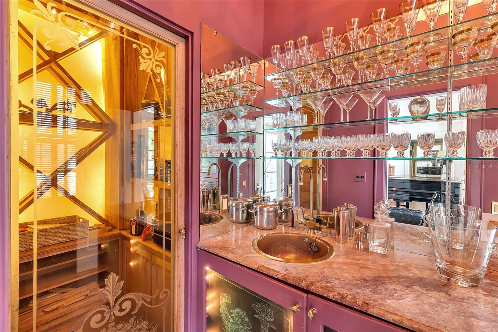 - Built-in Features, Ceiling Fans(s), Chair Rail, Crown Molding, Eat-in Kitchen, High Ceilings, Primary Bedroom Main Floor, Solid Surface Counters, Stone Counters, Thermostat, Walk-In Closet(s), Wet Bar, Window Treatments