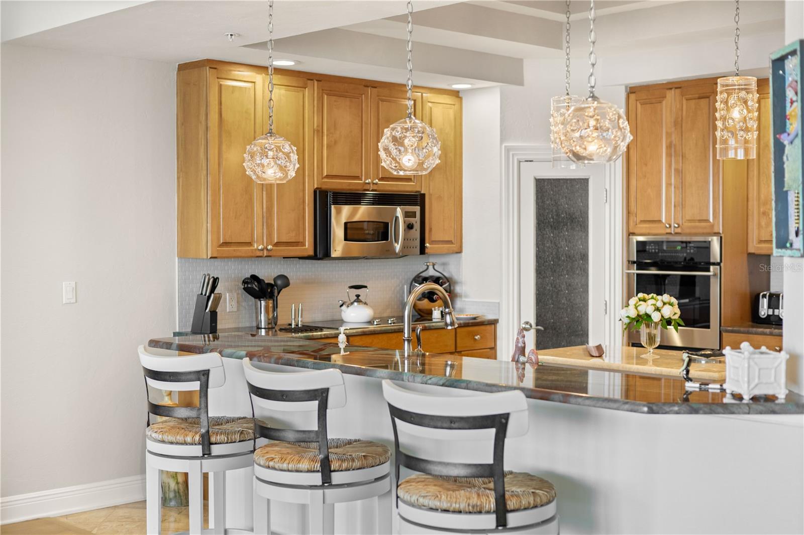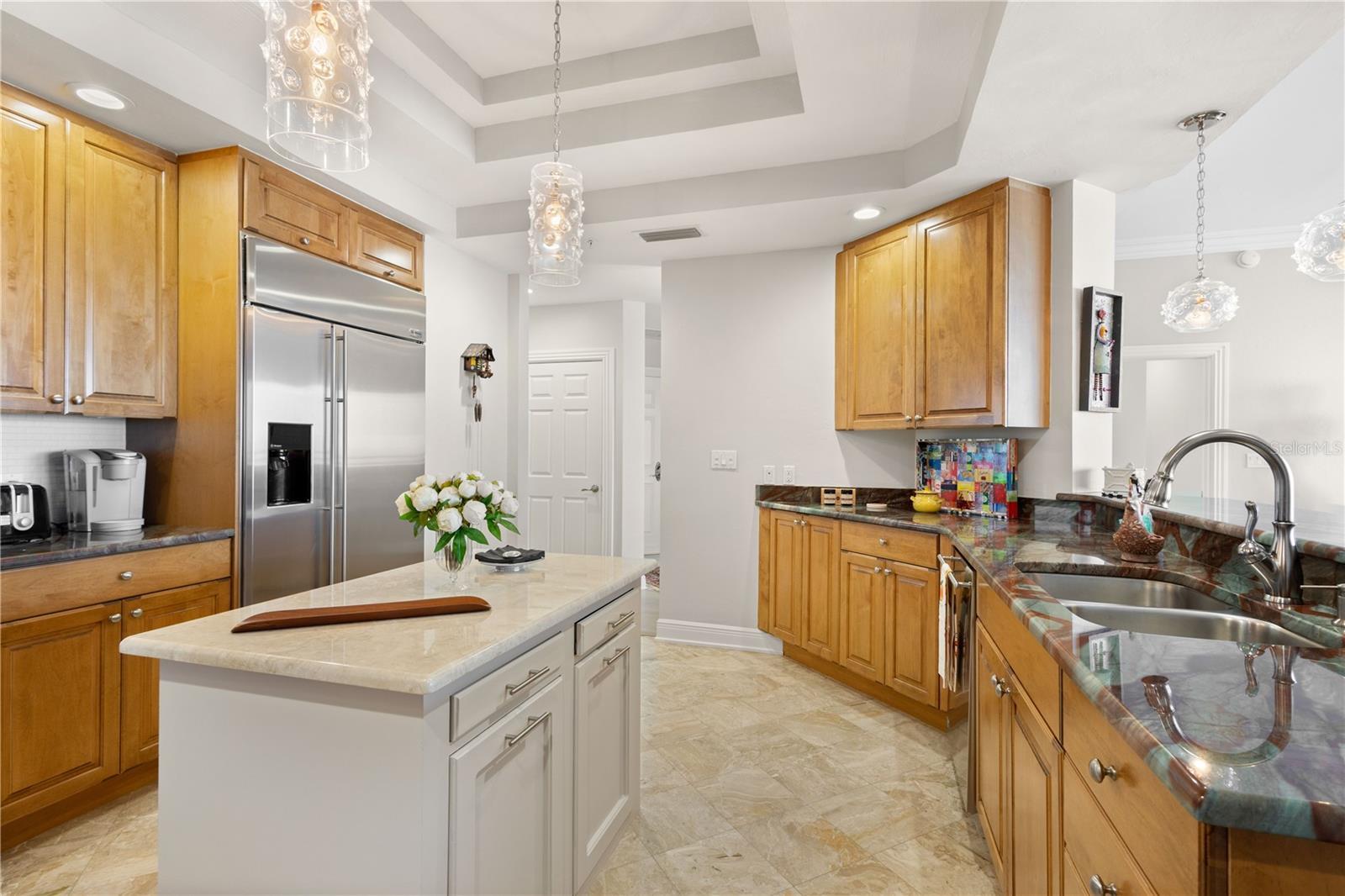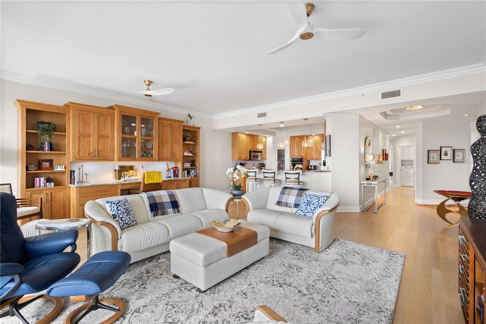 - Built-in Features, Ceiling Fans(s), Crown Molding, Elevator, High Ceilings, Living Room/Dining Room Combo, Open Floorplan, Solid Wood Cabinets, Split Bedroom, Stone Counters, Tray Ceiling(s), Walk-In Closet(s)