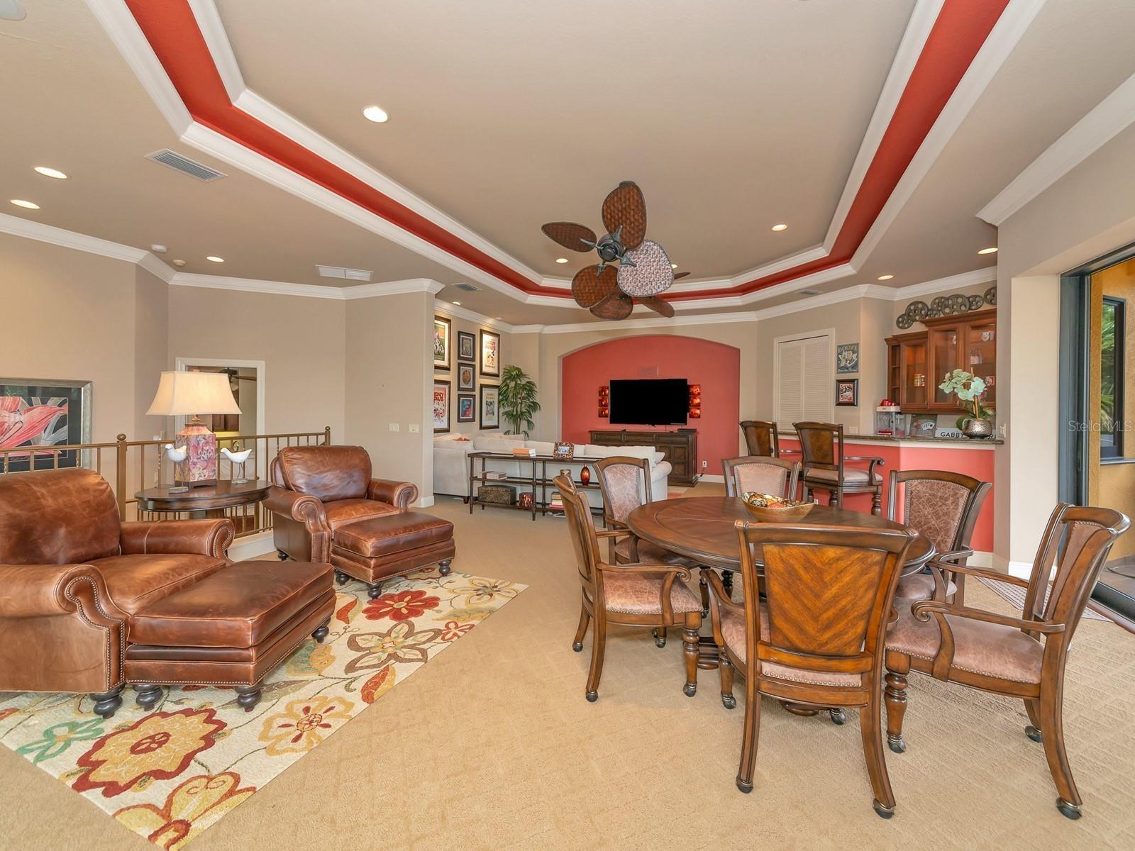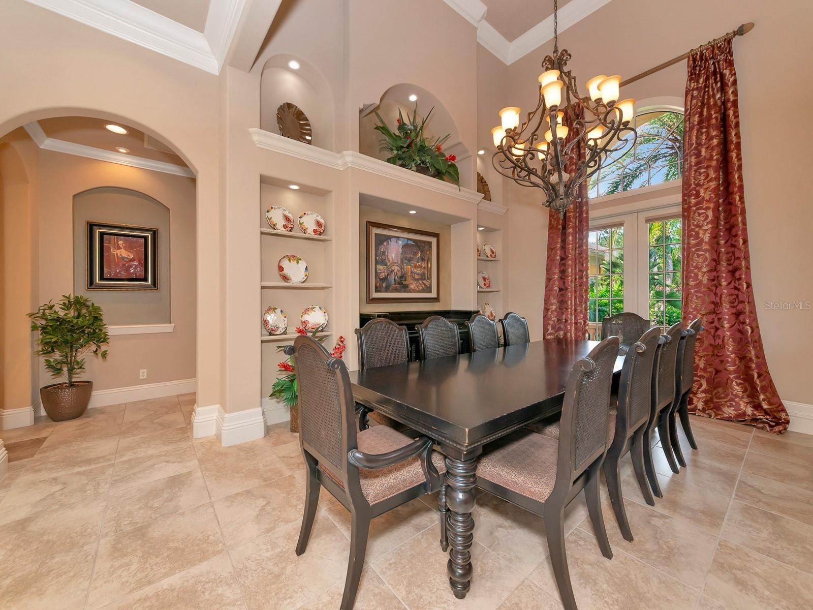 - Built-in Features, Cathedral Ceiling(s), Ceiling Fans(s), Central Vaccum, Coffered Ceiling(s), Crown Molding, Eat-in Kitchen, High Ceilings, Kitchen/Family Room Combo, Open Floorplan, Primary Bedroom Main Floor, Solid Surface Counters, Solid Wood Cabinets, Split Bedroom, Stone Counters, Thermostat, Tray Ceiling(s), Walk-In Closet(s), Wet Bar, Window Treatments