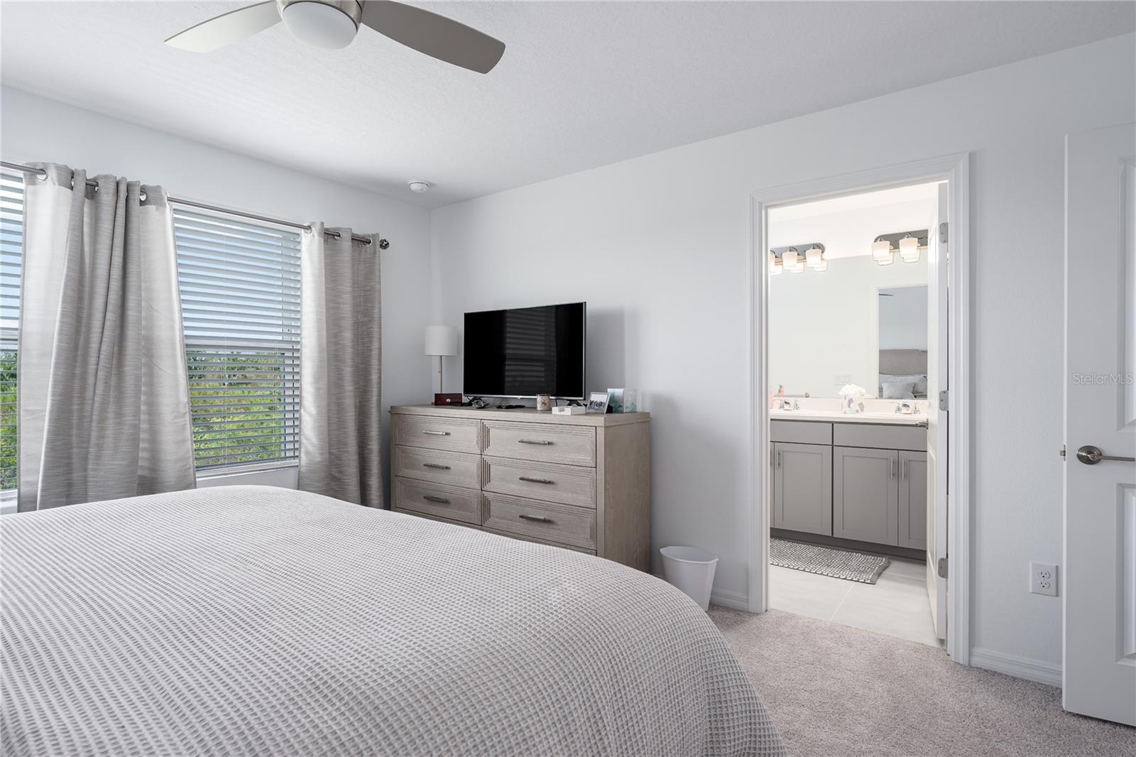 - Ceiling Fans(s), Living Room/Dining Room Combo, PrimaryBedroom Upstairs, Solid Surface Counters, Split Bedroom, Stone Counters, Thermostat, Walk-In Closet(s), Window Treatments