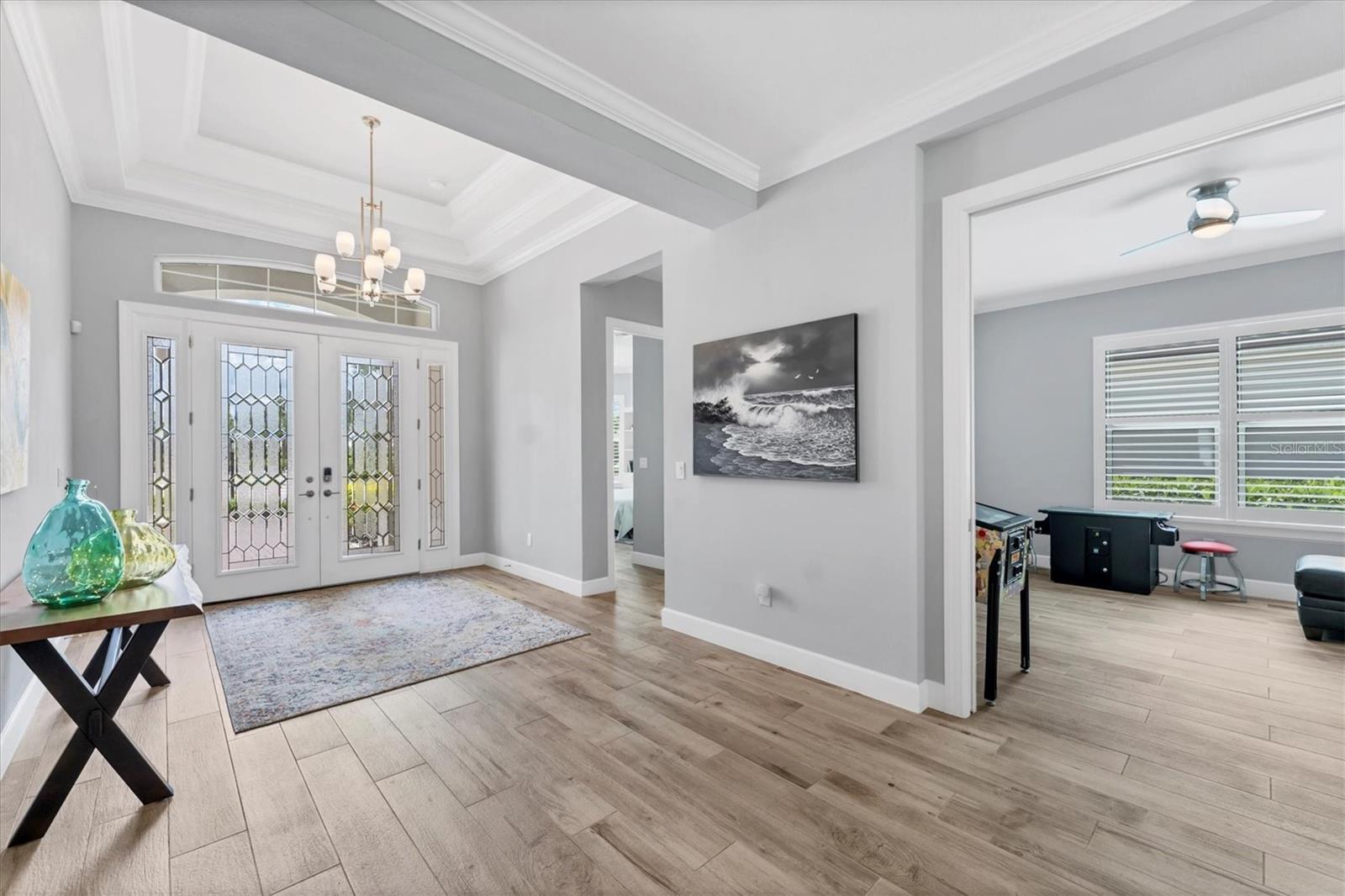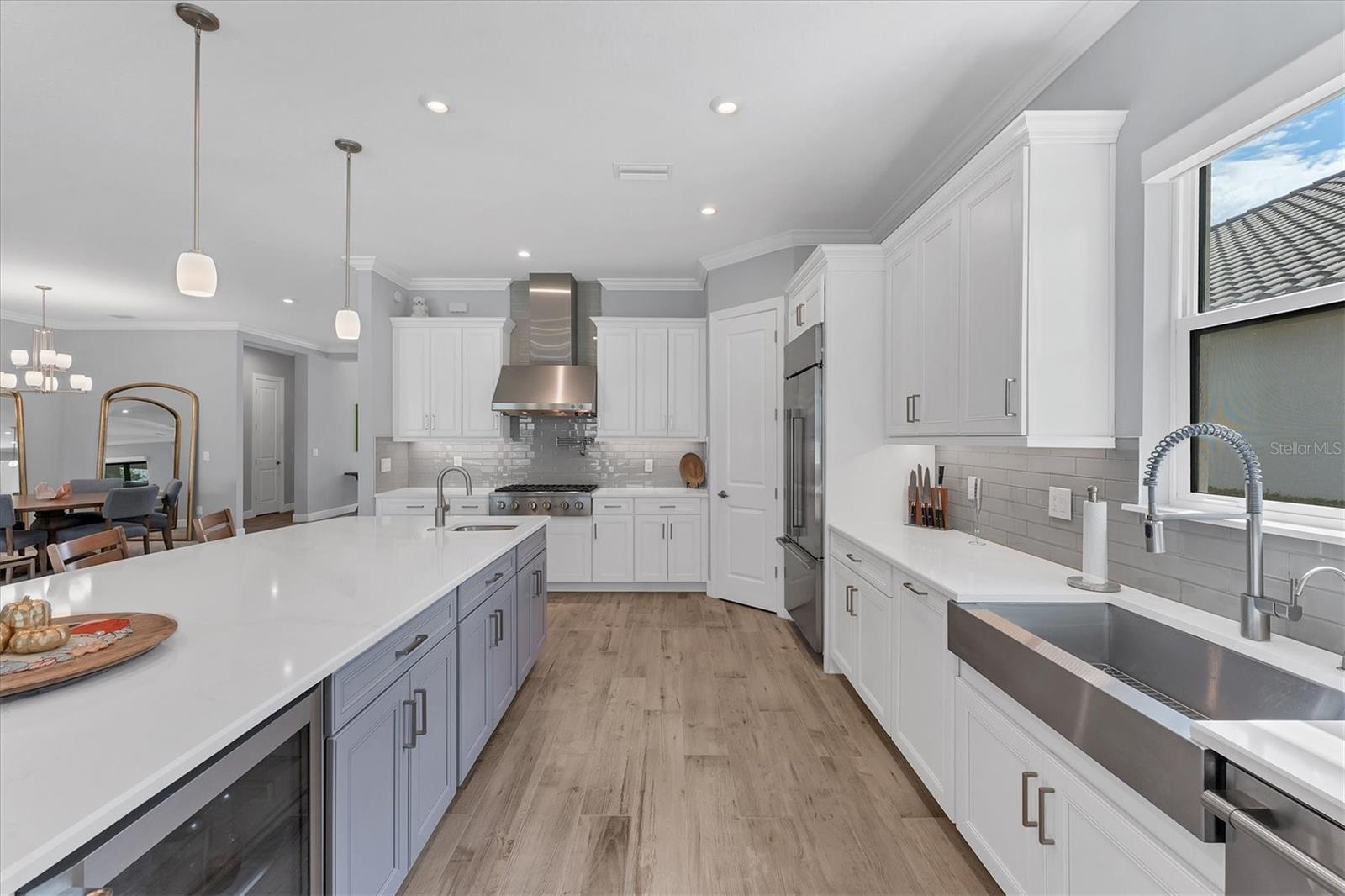 Under contract-accepting backup offers. Under contract. Taking Back-up Contracts. EXQUISITELY DESIGNED POOL HOME IN THE PREMIERE GOLF COMMUNITY OF ESPLANADE AT AZARIO, OFFERING STUNNING GOLF COURSE and WATER VIEWS AND GOLF CLUB MEMBERSHIP IS INCLUDED! The SELLER IS MOTIVATED, making this an EXCEPTIONAL OPPORTUNITY for A HOME THAT TRULY HAS IT ALL. This beautifully appointed residence showcases a unique blend of luxury and design, featuring a spacious Great Room with picturesque golf course and water vistas that seamlessly transition to extraordinary outdoor living space thoughtfully designed for contemporary living. Inviting Covered Gathering Areas feature an OUTDOOR KITCHEN and BAR ideal for dining alfresco complemented by the cozy ambiance of a GAS FIREPLACE, SPARKLING SALTWATER HEATED POOL AND SPA with Pebbletec finish to refresh and relax, complete with Travertine Shellstone, Panoramic Clear Vue Screen and wonderful views truly embracing the Florida lifestyle. Elegant interior finishes include PORCELAIN TILE FLOORS, TRAY CEILINGS, CROWN MOLDING, QUARTZ COUNTERTOPS, 8 FOOT DOORS, and IMPACT WINDOWS AND DOORS throughout along with plantation shutters and motorized shades in great room and kitchen. This area integrates a dining space and a gourmet-style kitchen, perfect for both entertaining and relaxation. The chef's kitchen is equipped with wood cabinetry, tile backsplash, a generous island with a breakfast bar for casual dining, additional prep sink, GE MONOGRAM APPLIANCES including a built-in refrigerator and oven, 6 burner gas cooktop with pot filler, professional series range hood with warming lamps, R.O. water filtration, walk-in pantry, and a beverage center. Retreat to the private owner's suite with bay window providing serene outdoor views and a lavish bath featuring a dual bowl vanity with dedicated makeup area, an expansive walk-in shower with multiple shower heads and a generous built-in closet. Desirable split bedroom and bath plan ensures privacy for family and guests, with an ensuite bedroom and bath and front bedroom with a king-size Murphy bed adjacent to the hall bath. The versatile study is ideal for a home office, game room, or your favorite hobbies. A separate laundry room includes a convenient drop-in sink, upper and lower cabinets, and front-load washer and dryer. The three-car tandem garage, complete with an epoxy finish floor, offers ample space for a golf cart. Complemented by a paver drive and walkway, outdoor lighting, gutters, barrel tile roof, whole house KOHLER GENERATOR and TANKLESS GAS WATER HEATER with RECIRCULATING PUMP, this exceptional home is conveniently situated across the street from a satellite pool, community garden and dog park. The highly amenitized community boasts a socially active resident CLUBHOUSE, state-of-the-art FITNESS CENTER, Spa and SALON, TENNIS and PICKLEBALL courts, RESORT STYLE POOL with BAHAMA BAR, CULINARY CENTER, BARREL HOUSE BISTRO and an 18-HOLE CHAMPIONSHIP GOLF COURSE, PRO-SHOP and AQUA DRIVING RANGE. Experience life in Lakewood Ranch, the nation's #1 multi-generational community, where you are minutes to dining, shopping and events at Lakewood Ranch Main Street and Waterside Place. The location offers close proximity to the UTC Shopping Mall, Benderson Rowing Park, New Mote Marine Aquarium, and I-75 for convenient travel north and south, and you are approximately 30 minutes from downtown Sarasota's vibrant cultural venues, diverse dining options, and our stunning Gulf Coast Beaches!