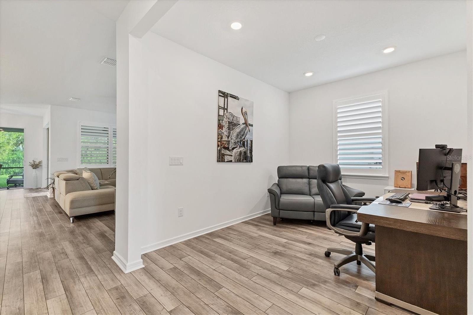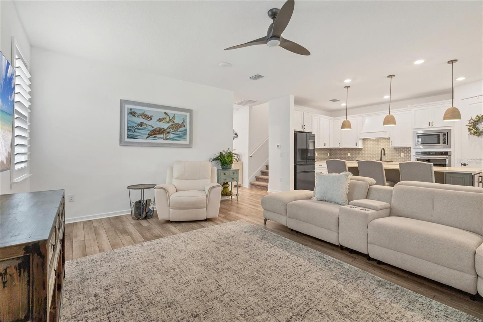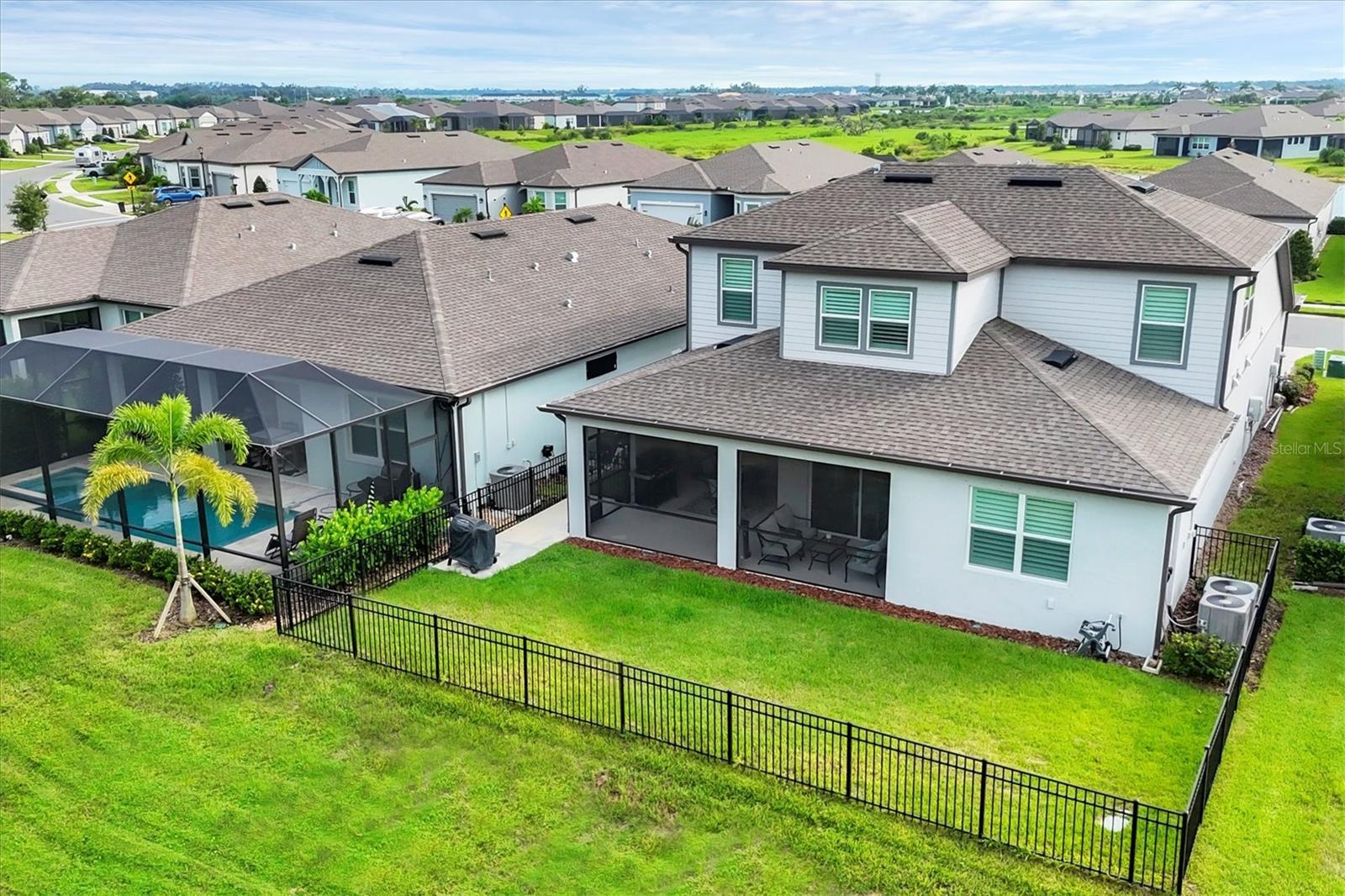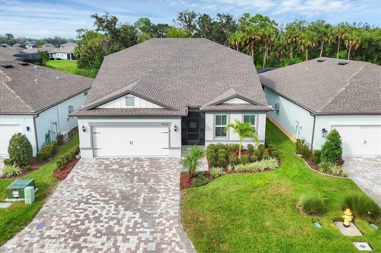 Welcome to your dream home in Del Webb, Parrish’s premier 55+ community! This stunning Mystique Grand model offers 3 bedrooms, 3 bathrooms, and 2,867 sq. ft. of beautifully designed living space. Lightly lived in and meticulously maintained, this home feels like new and is loaded with thoughtful upgrades. Step inside to find luxury vinyl plank flooring throughout the first floor, custom plantation shutters, and upgraded fans and lighting in every room. The open-concept layout flows seamlessly into the chef-ready gourmet kitchen and spacious living areas, perfect for both entertaining and everyday comfort. Enjoy the privacy of being the only fenced home in Del Webb, backing to a quiet, unbuildable preserve for serene views and no rear neighbors. Outdoor living is made easy with a concrete lanai pad and widened driveway, plus the home is pre-wired for a generator, outdoor kitchen, and pool — giving you endless options to customize your oasis. Home was built with an oversized 3-car tandem garage. Additional features include a whole-home water softener and overhead garage storage, maximizing convenience and comfort. Del Webb Parrish offers world-class amenities, including multiple resort-style pools, included a shaded pool, jacuzzi, fitness center, clubhouse, pickleball/bocce/ & tennis courts. The community's lively calendar of activities appeals to every interest.