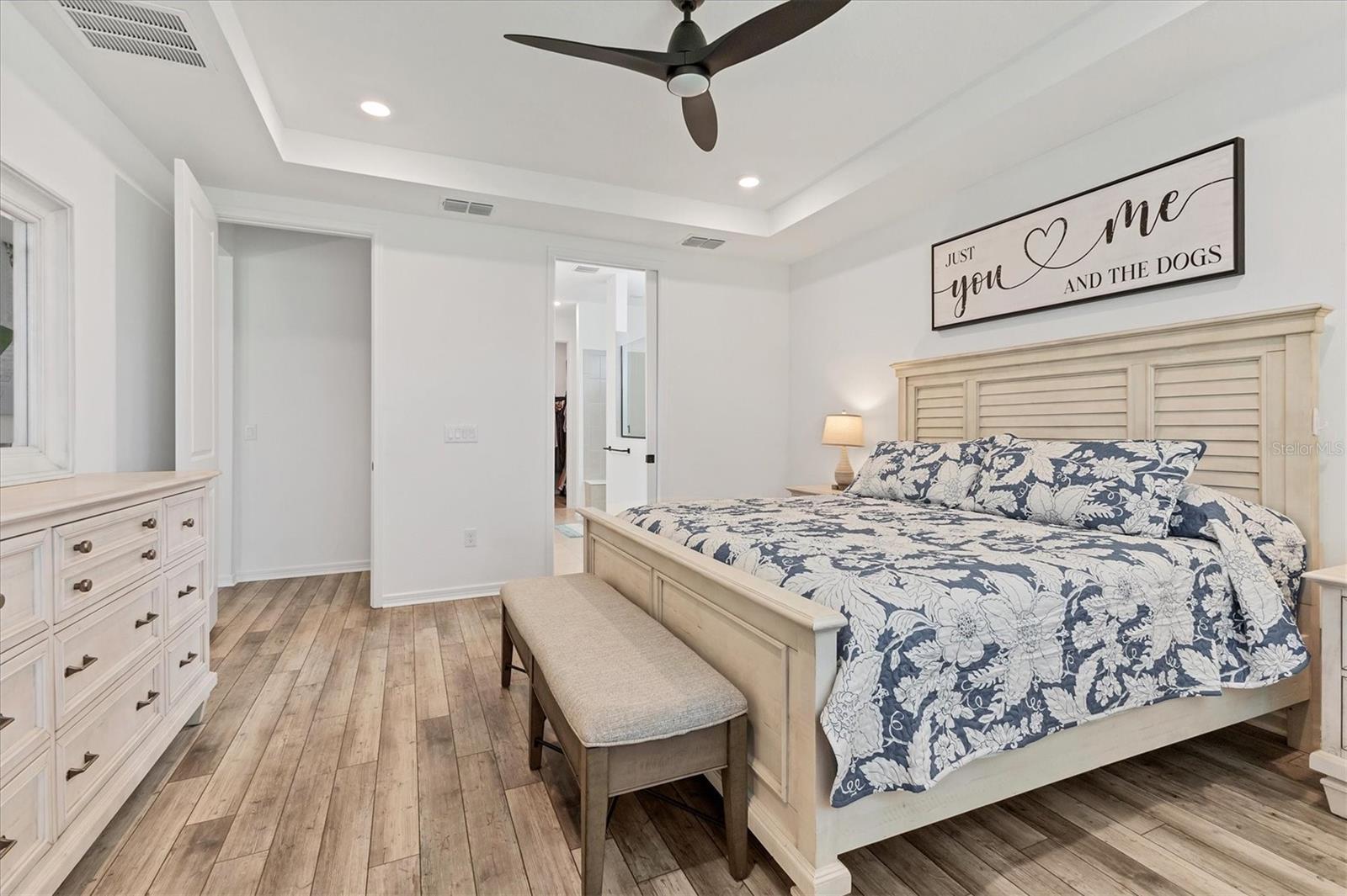 - Ceiling Fans(s), Open Floorplan, Primary Bedroom Main Floor, Smart Home, Solid Wood Cabinets, Stone Counters, Thermostat, Walk-In Closet(s)