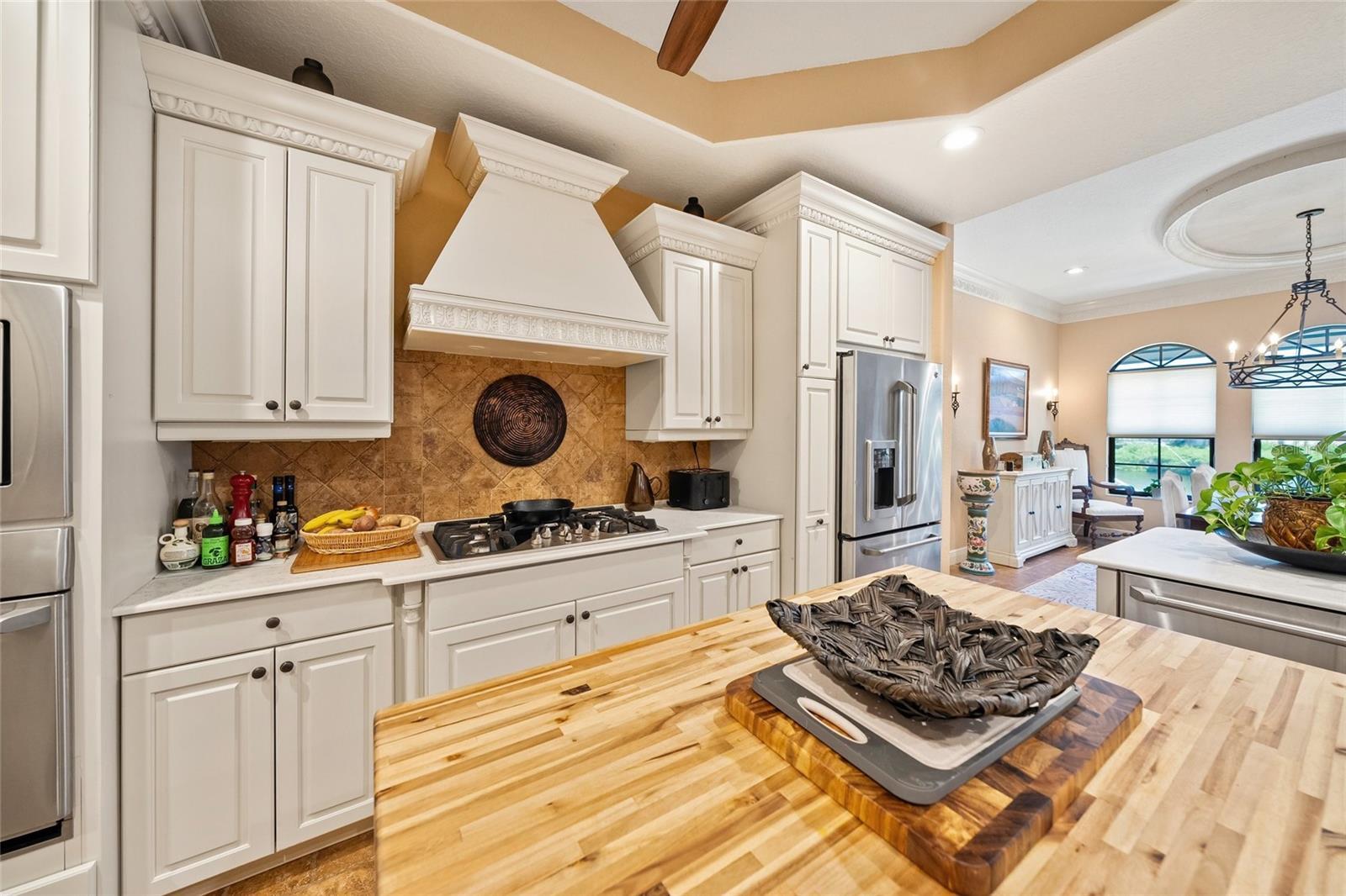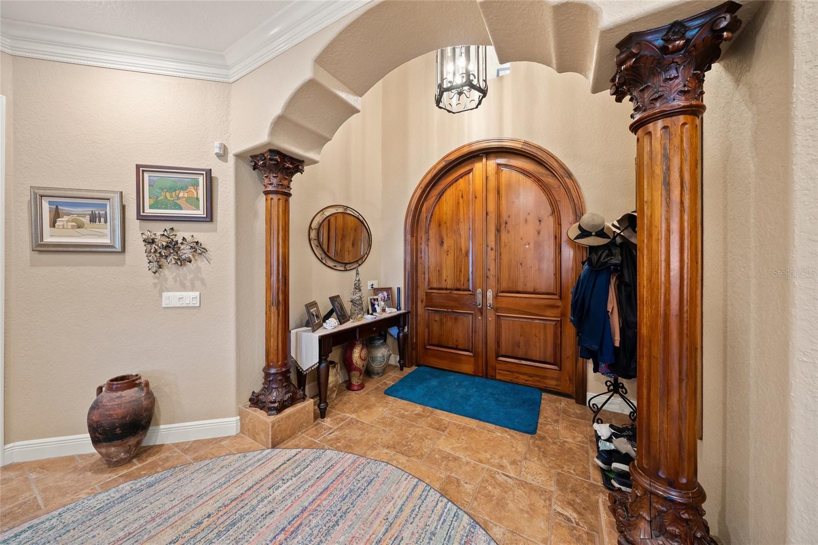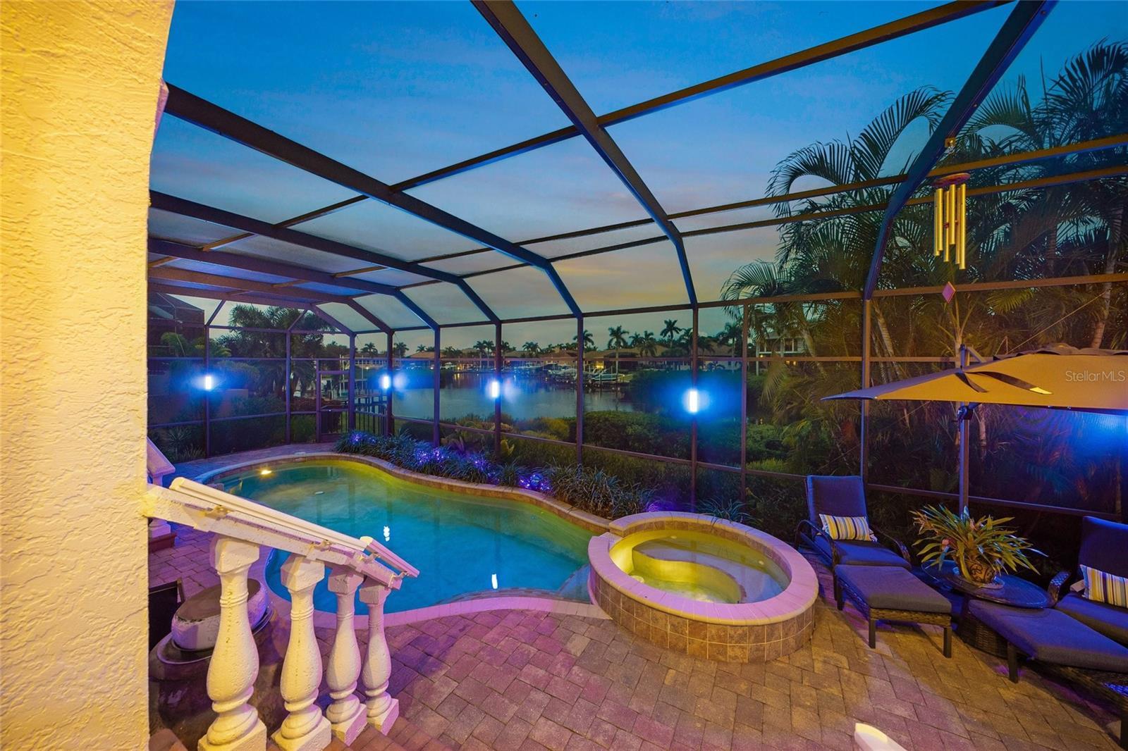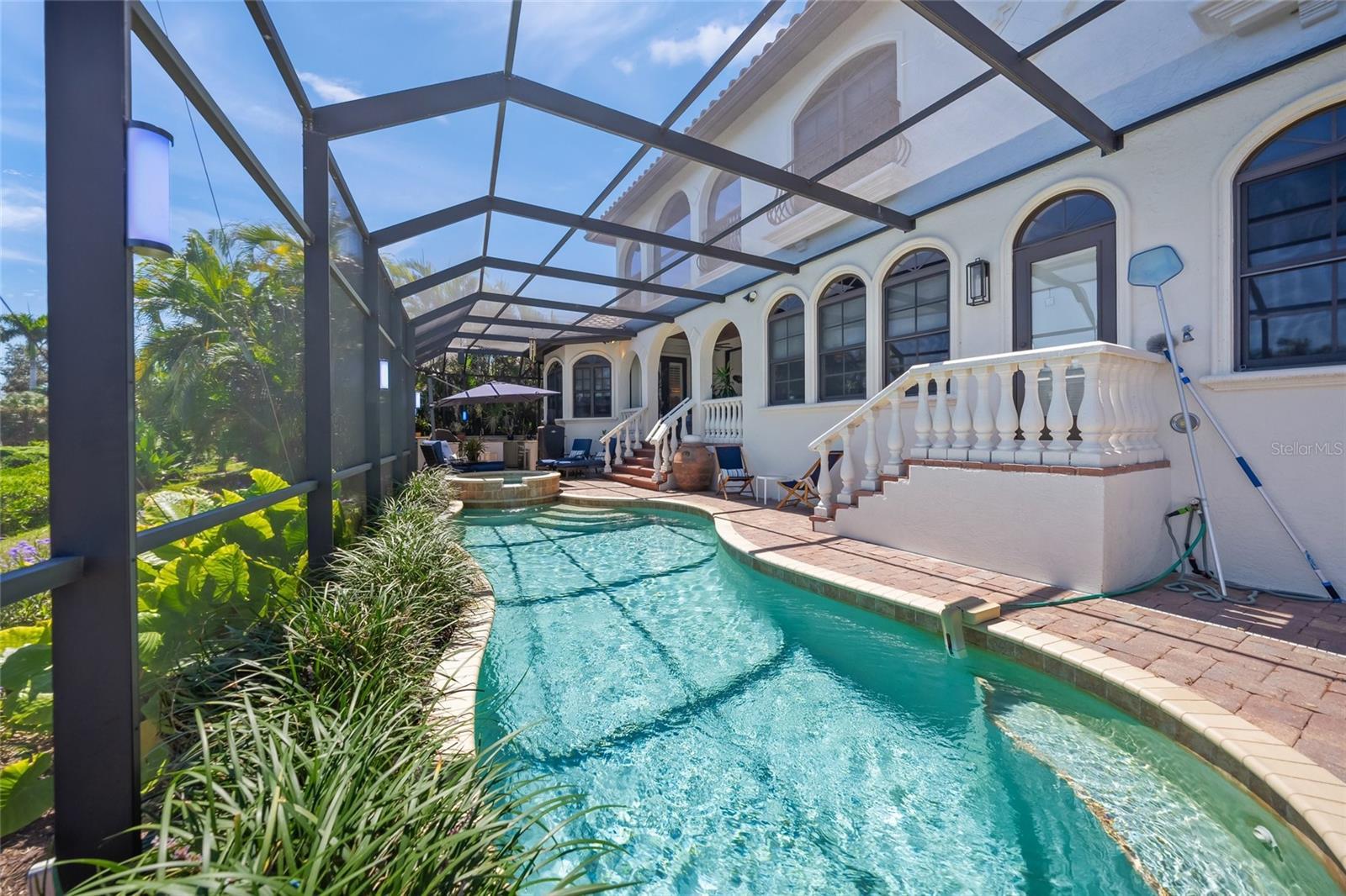 Waterfront Mediterranean Beauty in Harbour Landings Behind the gates of Harbour Landings, this 3 Bed / 3 Bath Mediterranean-style pool home pairs timeless coastal elegance with extensive modern upgrades. Step through arched double doors into a light-filled open floor plan showcasing imported Italian tile, custom ceilings, art niches with onyx and marble, a fireplace with new propane insert, and a gallery with rare Hawaiian KOA wood floors. The chef’s kitchen has been fully remodeled with Dekton counters, painted cabinetry, a new center island, and a built-in Miele coffee station. Additional highlights include a formal dining room with marina views, private office with custom built-ins, and a temperature-controlled 2,200-bottle wine room with arched glass doors and designer lighting. The first-floor owner’s suite offers French doors to the pool, a spa bath with dual vanities, jetted tub, walk-in shower, and new double glass-paneled entry doors. Upstairs, two guest suites and a bonus/media room capture sweeping water views. Upgrades include hardwood bedroom floors, cedar closet, new roof, gutters, soffits, landscaping, Roman white exterior paint, smart thermostats, Sonos speakers, new lighting throughout, and a fully modernized electrical panel with surge protection. Outdoor living shines with a refurbished screened lanai, heated pool and spa, mood lighting, outdoor kitchen, new Minka fans, and new shades. A deeded dock with 10,000 lb lift and new kayak ladder offers deep sailboat water and no-bridge Gulf access. Peace of mind comes with hurricane-rated construction, impact windows, insulated garage doors, blown-in attic insulation, dual-zone HVAC (with new AC on the main level), and a whole-home generator. Community amenities include gated security, clubhouse, tennis/pickleball, lawn and dock care, and mangrove maintenance. Just minutes from shops, dining, and Gulf beaches—this is coastal living at its finest.