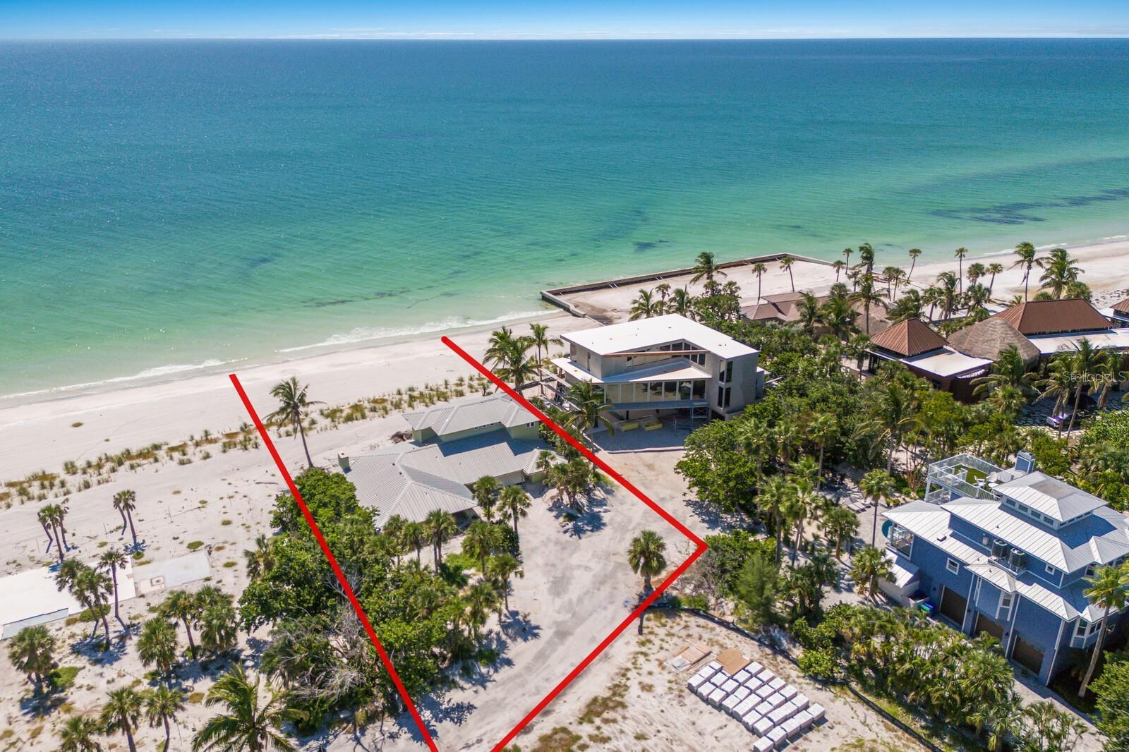 Discover a truly rare opportunity to own two parcels in a new, beachfront enclave being developed with private entry gates directly on the pristine sugar sand and turquoise waters of the Gulf of Mexico. The offering includes: Parcel One - Property ID: 7847710154 - 20,000 sq. ft. homesite with 100 ft. of direct Gulf frontage. Parcel Two - Property ID: 7847700007 - A 9,757 sq. ft. privately owned, secluded cul-de-sac providing private access for just two Gulf-front estates, ensuring unmatched exclusivity. Nestled at the end of North Gulfside Road. This serene setting offers endless views, peaceful surroundings, and an unparalleled level of privacy. The existing residence sustained significant damage during hurricane Helene and can be transformed into a modern coastal retreat or removed to create a brand-new luxury tropical estate. Enjoy the very best of Gulf-front living—quiet, private, and breathtakingly beautiful. This is an active construction site with restricted access.