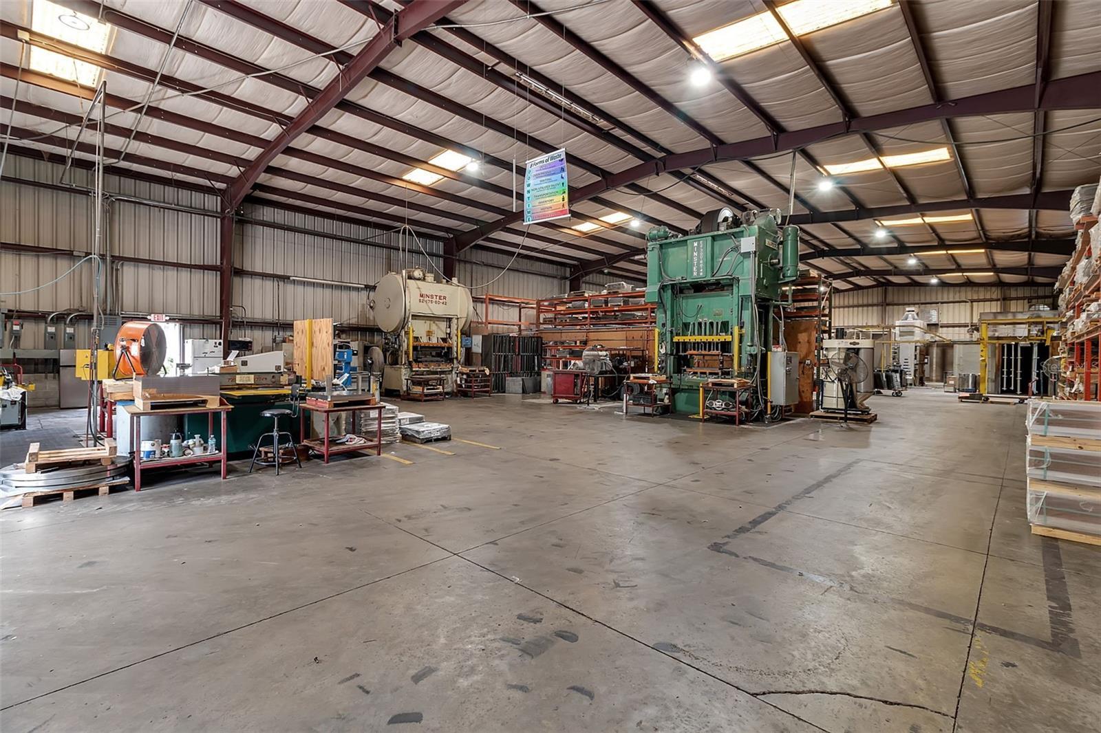 Move your business here. Almost 10000 sq ft, wide open, '22 high ceilings at the peak. All in, over 175000 cubic feet of usable space. Front rollup is 18', extra high clearance should you need it. 2 other access doors are 14' roll ups, for smaller vehicles and Last-Mile stuff. Dual 480 power, bring any machinery you have. 10 parking spaces out front, all tucked into a safe and secure park with low fees. Current tenant out Q1 '26, rental options available as well at $12/ft NNN