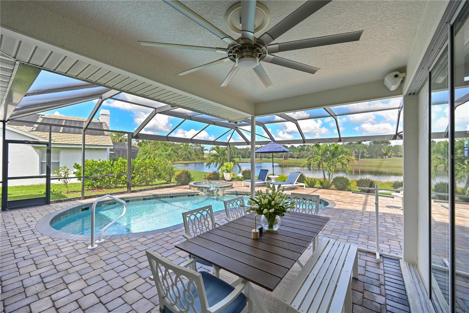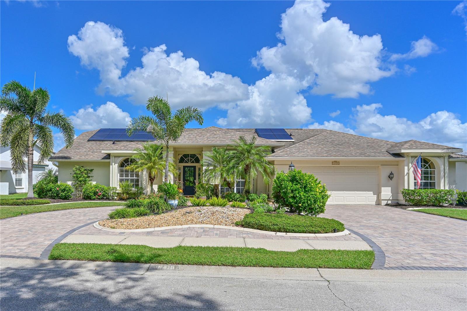 Love where you live...Charm, Elegance, Sophistication and Comfort are some of the words that come to mind in this beautifully updated three-bedroom, three full bath home with spacious office/bonus room. Positioned perfectly on one of Tara's largest lots, lake views out back and lush Florida landscaping out front, offering privacy, space and awesome views of the signature 16th hole of our championship golf course. Welcome to Tara Golf and Country Club, one of Southwest Florida's premier private golf communities- where resort-style living meets modern luxury. This home features open concept with elegant tile flooring throughout the living area. Gourmet eat-in kitchen featuring quartz countertops, custom cabinetry and KitchenAid stainless steel appliances. Two sinks for all your cooking and prep needs. Large island and lots of storage with roll out shelving.Updated in 2024. Family Room has triple pocket sliders to the lanai, an electric fireplace and decorative shiplap framing the room. Living room and dining room are showcased with crown molding, oversized windows and triple sliders that pocket open. Luxurious primary suite with vaulted ceiling, sliders to the lanai, 2 walk-in closets, updated ensuite bath with walk-in shower, double sinks and private water closet. Split floor plan with two guest bedrooms, one having its own en suite bath with walk-in shower. Custom closets. Plantation shutters in all bedrooms, automatic shades in living and dining room. Back bath has door to the pool area for the convience for your swimmers. Bonus room off the garage is presently being used as a home office/ sewing room. Would be great for an exercise room or hobby space as well. Expansive picture screen lanai with heated salt water pool and spa. Pool and spa resurfaced in 2024 with Pebble-Tec. New salt cell 2025. Full outdoor kitchen with gas cooktop, sink, refrigerator and Fire Chef gas grill. 80 gallon propane gas tank, in ground, for outdoor kitchen and pool/spa heater. Large under cover area for your dining and entertaining during any type of weather. Extended area with double door entry for golf cart parking. Tesla solar panels provide up to 85% of the homes electricity, offering incredible energy effciency. Owner owned. Whole home water filtration system for clean, high-quality water throughout. Solar panels for the pool.2024 Hurricane shutters across the front of the house 2025.(Storm Smart) AC 2025! Pool Pump and Heater 2026. Solar guard tinting on all the windows for sun protection and energy efficiency. Newer fans throughout the home. Electric panel replaced 2019, Fast charge electric car plug installed 2024 in garage. New garage door Smart garage door opener 2025. Epoxy garage floor and new garage door 2020. Roof 2014. Roof Max treatment 2025 extending the life of the shingles guaranteed 5 years. Paver circular driveway. Comes with a Class A membership to TGCC. 18 hole championship golf course which was renovated in 2023. Brand new Pickle Ball Facility with 5 courts 2025. Bocce, Tennis, Full Fitness Center and Exercise Classes, Community Pool, and fantastic clubhouse with active grill room/bar, dining and loads of events to fill your calendar all year long.The best bang for your buck for all you golfers looking for the best golf course for the best price! No CDDs. Welcome to Taradise.