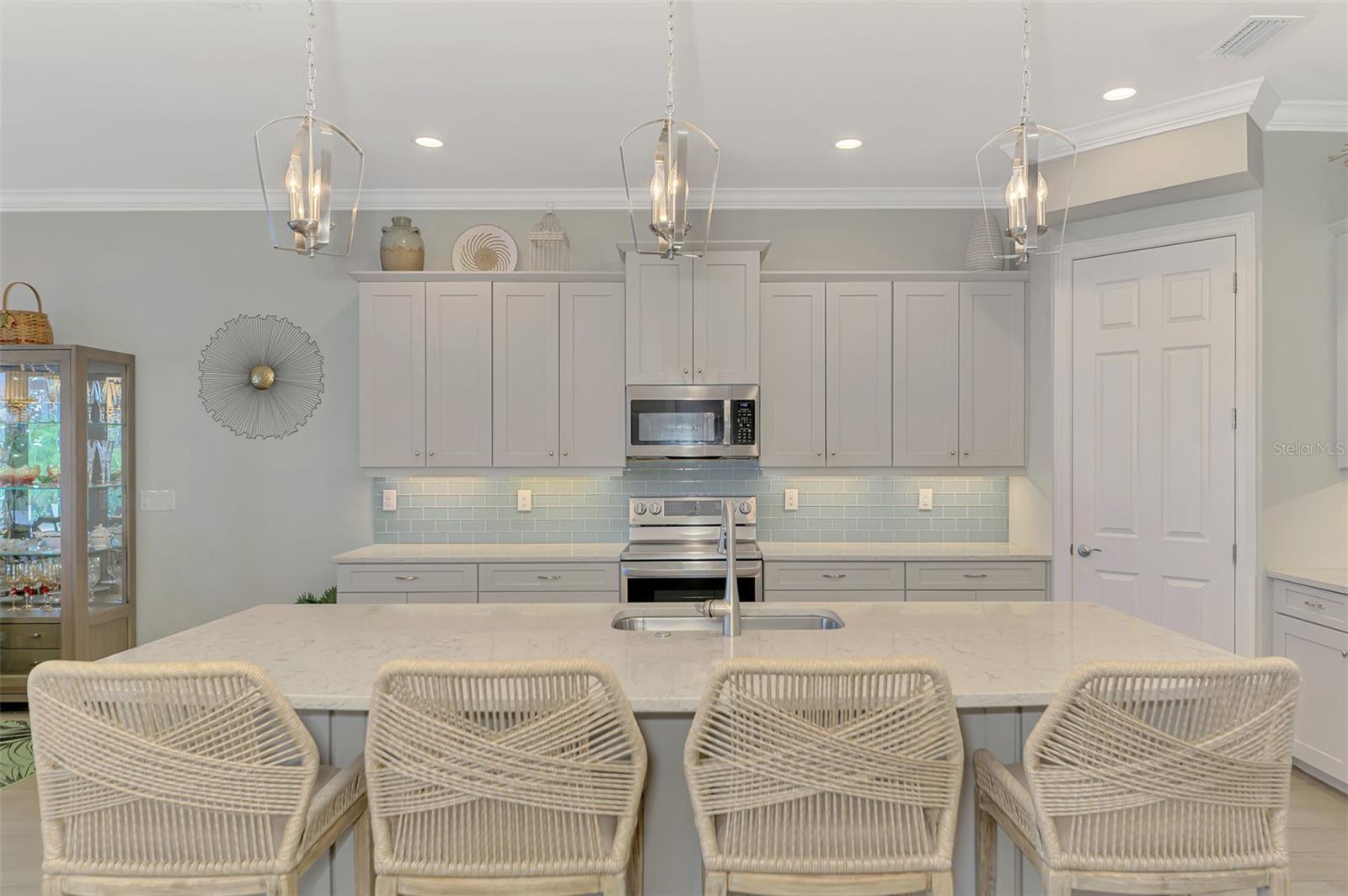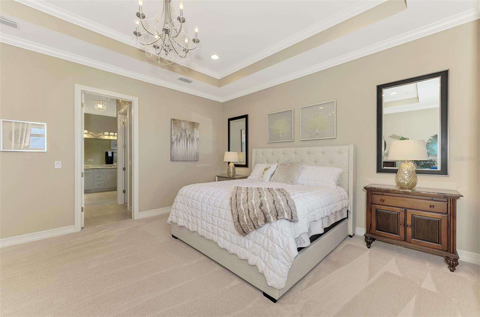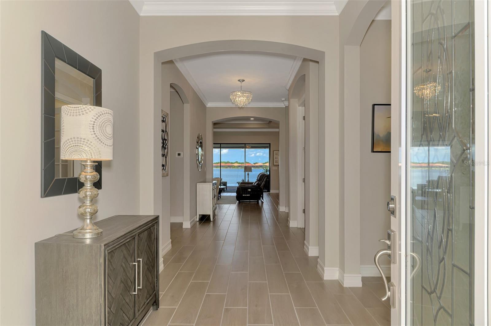 Owner financing considered (short term) with sufficient down payment. Toscana Isles with immediate occupancy & move in ready. This beautifully appointed 3-bedroom, 6-bath home in the gated community of Toscana Isles offers rare waterfront living with spectacular lake views and unforgettable sunsets. Situated on a 65-acre naturally sprung lake, residents can enjoy fishing, kayaking, canoeing, and electric boating directly from their private dock. The heated saltwater infinity pool with spa overlooks the lake, creating the ultimate backdrop for outdoor living. The expansive lanai with wide-screen enclosure, outdoor kitchen, and a rare poolside half bath provides the perfect setting for entertaining. Inside, the home is designed with elegance and function in mind. The gourmet kitchen features a large quartz island, abundant cabinetry, newer stainless-steel appliances, and opens to a dining room with an aquarium-style window framing the lake and pool. Upgrades include tray ceilings, crown molding, 8-ft doors, crystal chandeliers, architectural archways, a new impact front door, auto pool fill, and an electric fireplace. The owner’s suite offers a spacious retreat with a luxurious bath and dual custom walk-in closets. Additional features include a separate office, well-equipped laundry room with sink and cabinets, and a 3-car garage. The second level is an entertainer’s dream—complete with a 9-seat movie theater (with light-up cup holders), game room, kitchenette, and full bath. Toscana Isles delivers a resort lifestyle with world-class amenities, including tennis, pickleball, bocce, fitness center, clubhouse, resort pool, fire pit, and golf-cart friendly living. This home is simply one of a kind—an impressive and unique waterfront property offering luxury, lifestyle, and unforgettable sunsets. Quick access to the beach, commerce, Legacy Bike Trail, parks and the new Sarasota Memorial Hospital. You have it all!