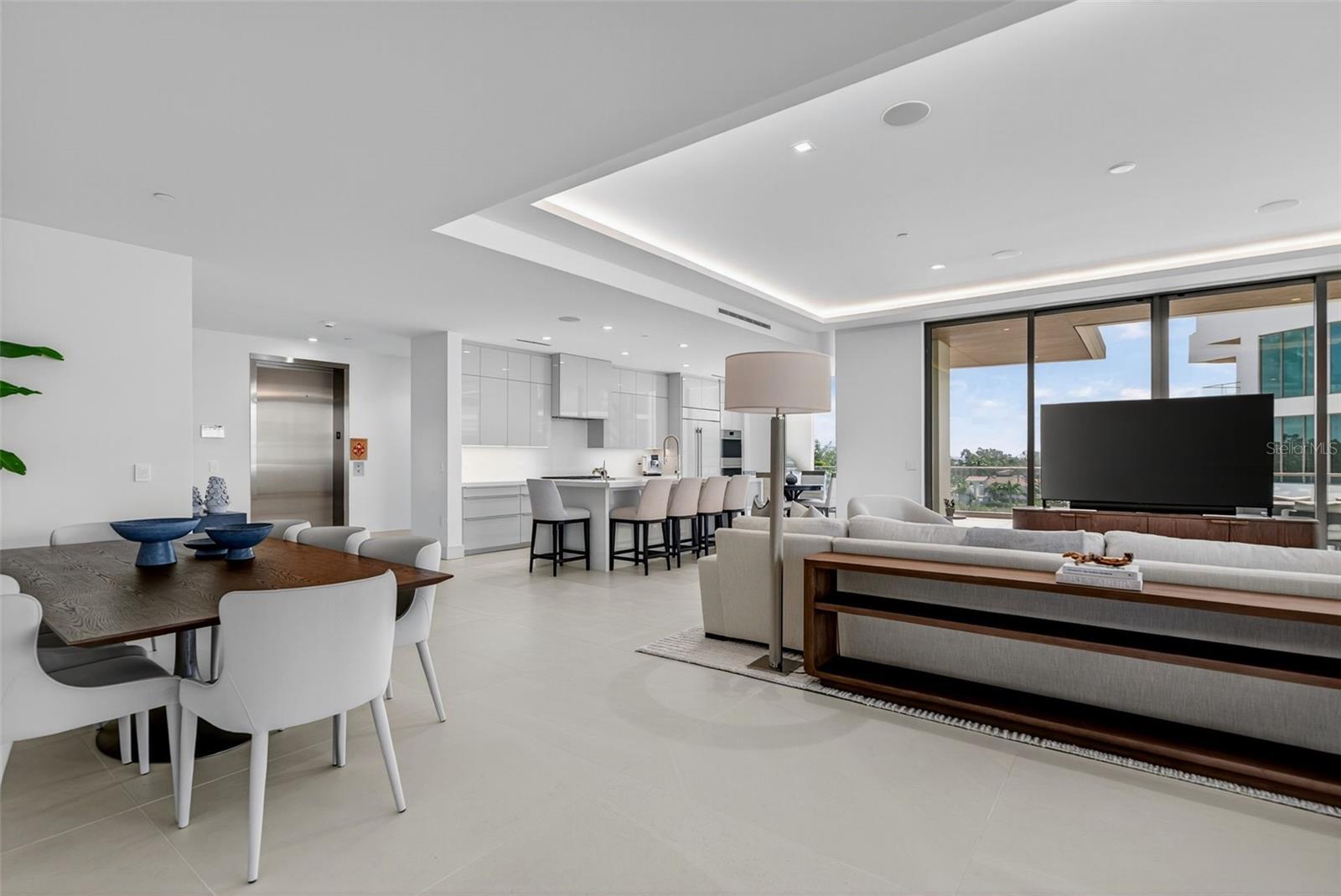 - Elevator, High Ceilings, Kitchen/Family Room Combo, Open Floorplan, Smart Home, Solid Surface Counters, Stone Counters, Thermostat, Walk-In Closet(s), Wet Bar, Window Treatments