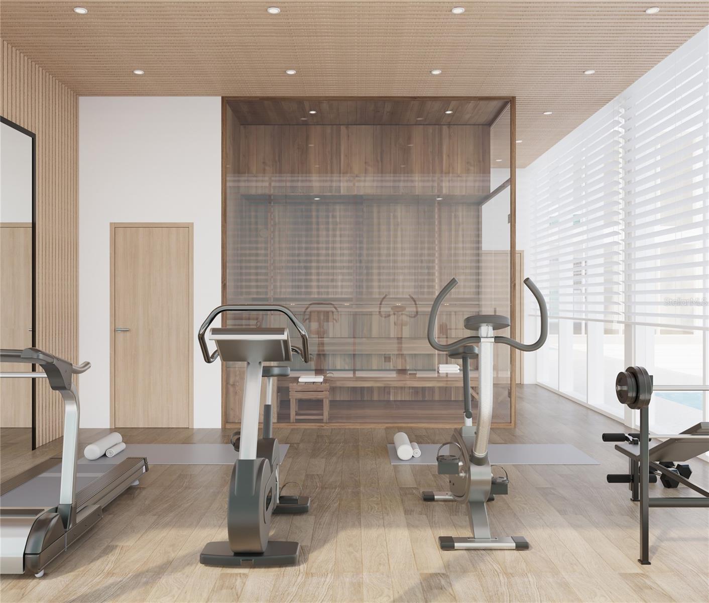 - Eat-in Kitchen, Elevator, High Ceilings, Sauna, Thermostat, Walk-In Closet(s), Wet Bar
