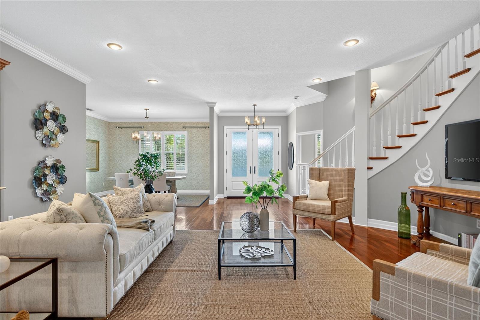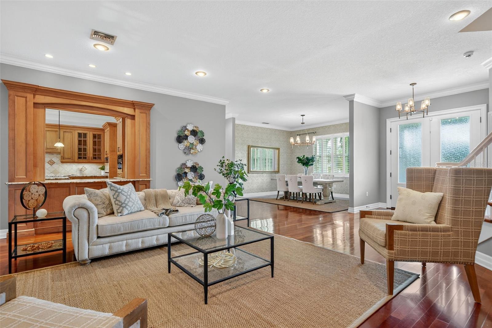 - Ceiling Fans(s), Crown Molding, Eat-in Kitchen, Elevator, High Ceilings, Open Floorplan, Primary Bedroom Main Floor, Solid Surface Counters, Solid Wood Cabinets, Stone Counters, Walk-In Closet(s), Window Treatments