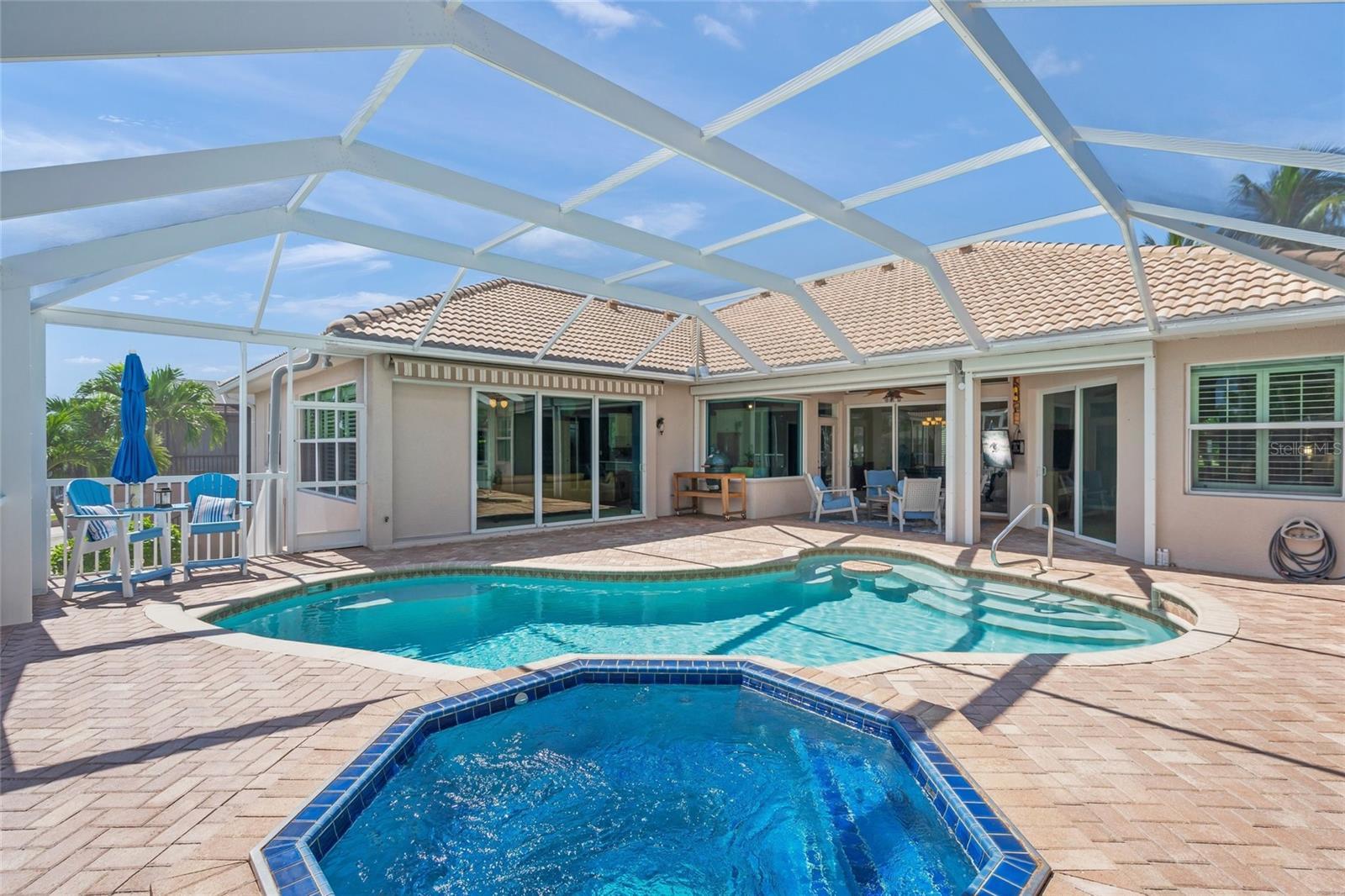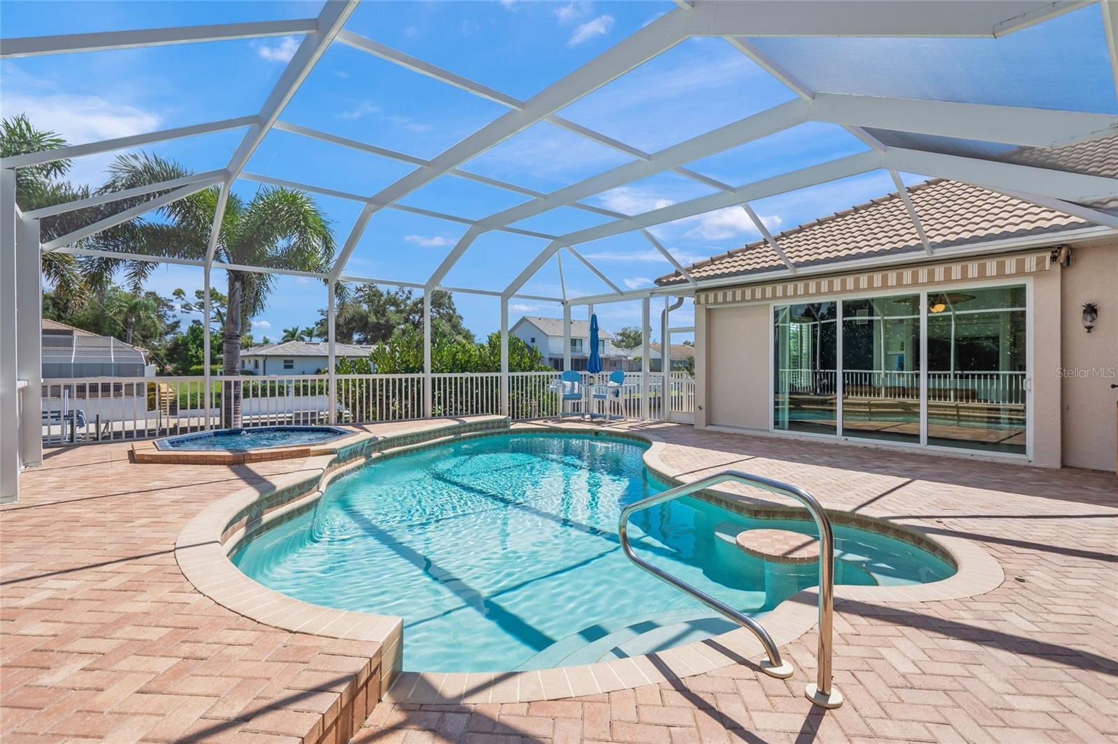 GULF ACCESS WATERFRONT ESTATE – PRIVATE DOCK & HEATED POOL Experience the ultimate coastal lifestyle in this impeccably maintained four-bedroom, three-bath pool home with spa, located in the highly desirable boating community of Englewood Isles. Nestled in North Englewood within Sarasota County, this residence offers direct Gulf access through the Intracoastal Waterway at Marker #38, making it a true boater’s dream. The property boasts ninety-two feet of concrete seawall and a private dock equipped with an 18,000-pound lift, floating jet ski dock, davits, water and electric connections, and custom dock lighting designed for nighttime fishing or entertaining. Whether you prefer kayaking at sunrise, cruising the canals, or taking your boat straight to the Gulf for sunset, this home delivers a waterfront lifestyle lacking nothing. Peace of mind comes built in with hurricane impact-resistant windows, an insulated garage door, automatic Kevlar roll-down shutters, and a KOHLER 10.4 kW whole-house generator with automatic transfer switch. A central vacuum system adds everyday convenience, while the oversized garage provides racks, a side entry door, workshop space, and a paved walkway that leads directly to the dock. The home’s curb appeal is undeniable, with lush landscaping, a paver driveway and walkways, and a welcoming double French door entry. The outdoor living spaces are equally impressive, featuring a heated pool and spa with an upgraded enclosure using stainless steel screws and fresh re-screening after Hurricane Ian. A retractable striped awning with wind sensor adds shade and comfort to the lanai, while the screened outdoor area showcases a tranquil waterfall surrounded by tropical landscaping, creating the perfect setting for private relaxation or entertaining. Inside, a thoughtfully designed split-floor plan highlights neutral ceramic tile floors and timeless finishes throughout. The gourmet kitchen is a chef’s delight with custom cabinetry, quartz countertops, stainless steel appliances including roll-out shelving, accent glass cabinets, and both under- and over-cabinet lighting. A large working island with oversized bar and a breakfast nook framed by an aquarium glass window complete this elegant space. The expansive primary suite offers dual walk-in closets and a spa-inspired bathroom with dual vanities, hidden electrical outlets, medicine cabinets, a jetted Jacuzzi tub framed by plantation shutters, and a walk-in shower equipped with handheld and overhead fixtures, bench seating, and grab bars. Location is yet another highlight. The home is only minutes from Englewood’s pristine beaches, golf courses, shopping, and dining. Residents can bike to historic Dearborn Street for boutique shops, restaurants, and the weekly farmer’s market, while the brand-new BayFit gym sits conveniently across the street from Englewood Isles. Built in 2007, this custom residence seamlessly blends luxury, comfort, and premier boating access—an exceptional opportunity to own your very own slice of waterfront paradise.
